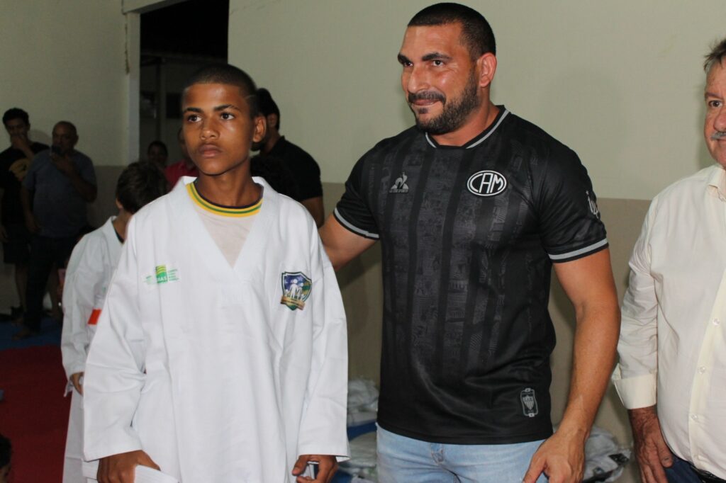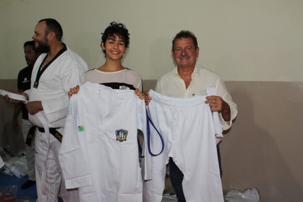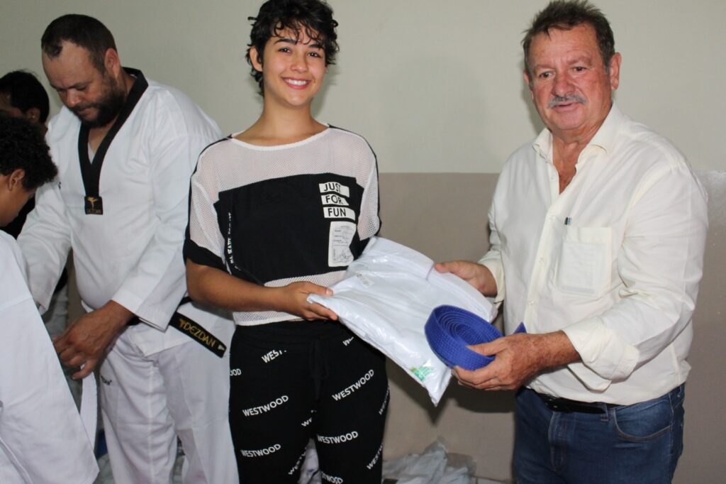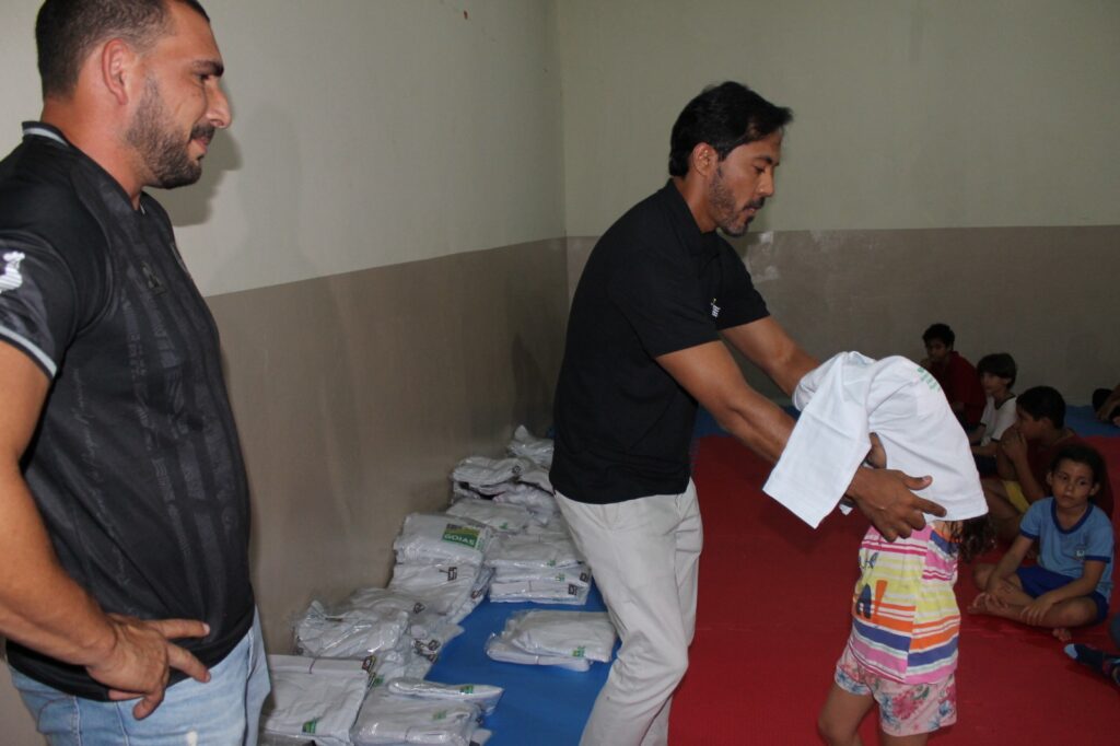 A entrega dos uniformes e novo tatame foi realizada nesta quinta-feira (4), pelo vice-prefeito Agenor Bezerra e o Secretário Municipal de Esportes, Éder Euripedes, no Colégio Municipal João Saraiva, em uma parceria da Prefeitura e Secretária Estadual de Esporte de Goiás.
