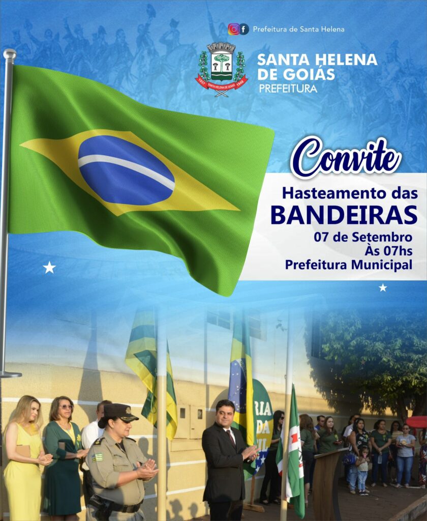 Convidamos toda população para participar do ato cívico de hasteamento das bandeiras, no dia 07 de setembro as 7:00 em frente à sede da Prefeitura Municipal de Santa Helena.