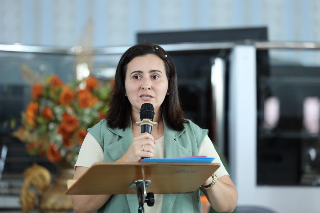 Durante a programação, os participantes também tiveram a oportunidade de acompanhar uma palestra ministrada pela promotora de Justiça, Dra. Heloísa, que abordou o tema Agosto Lilás, campanha nacional de enfrentamento à violência contra a mulher. A promotora destacou a importância da rede de apoio, dos serviços disponíveis e da denúncia como forma de proteção e garantia de direitos.