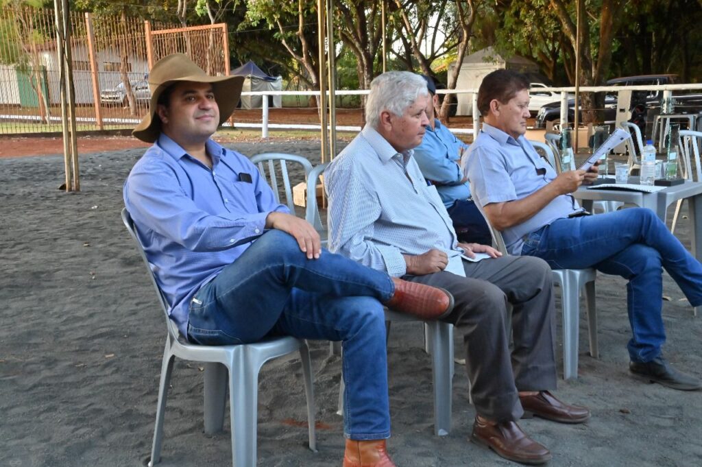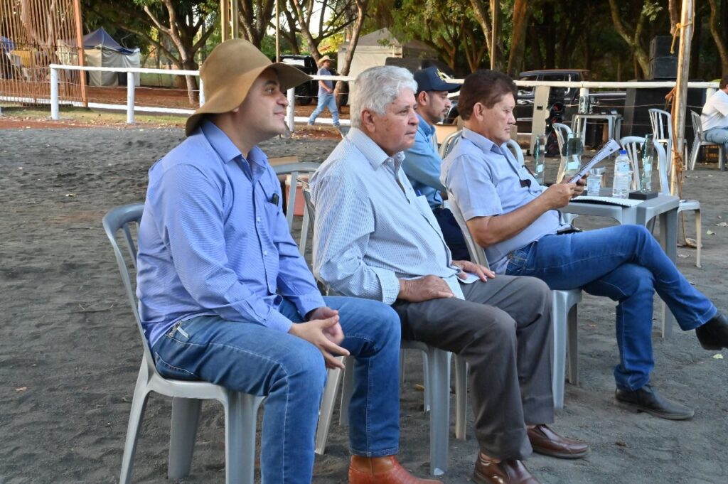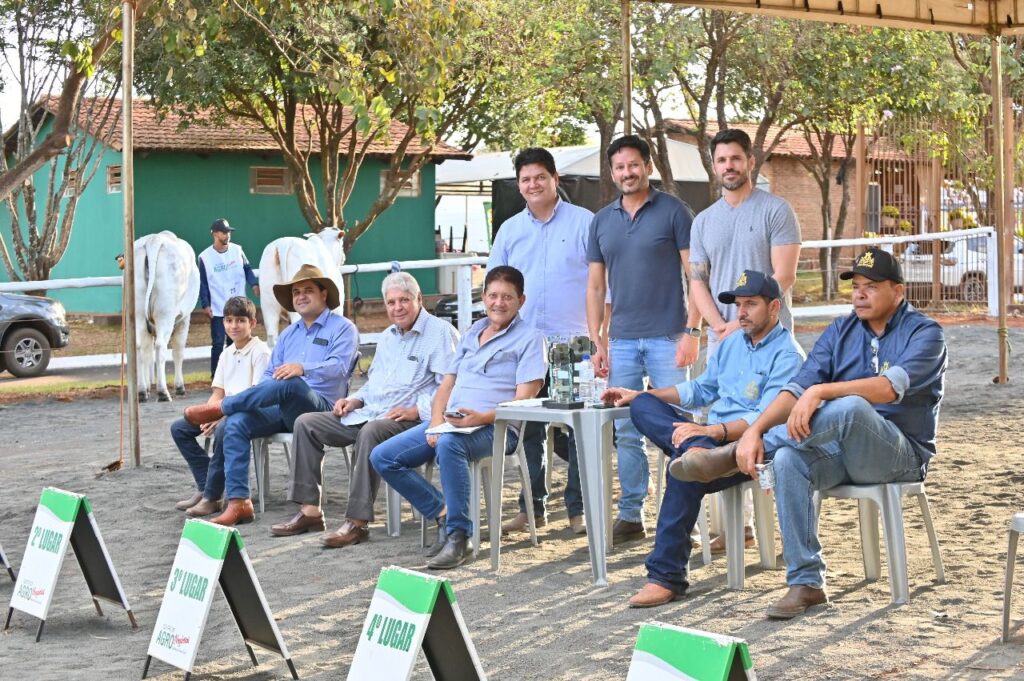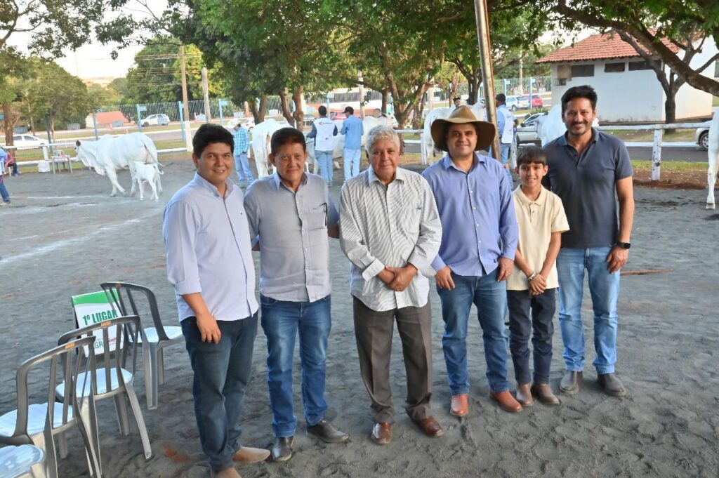 O Prefeito João Alberto, acompanhado de seu filho João Albertinho, do ex-governador Alcides Rodrigues e dos agropecuaristas Heuler Cruvinel, Sebastião Cruvinel e Bruno Abreu, Sérgio Caiado e Aldair Ribeiro, assistiram ao julgamento de pista e à classificação dos animais.