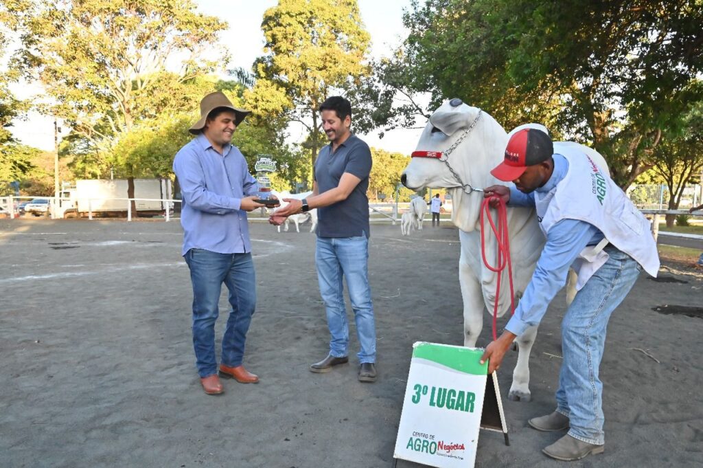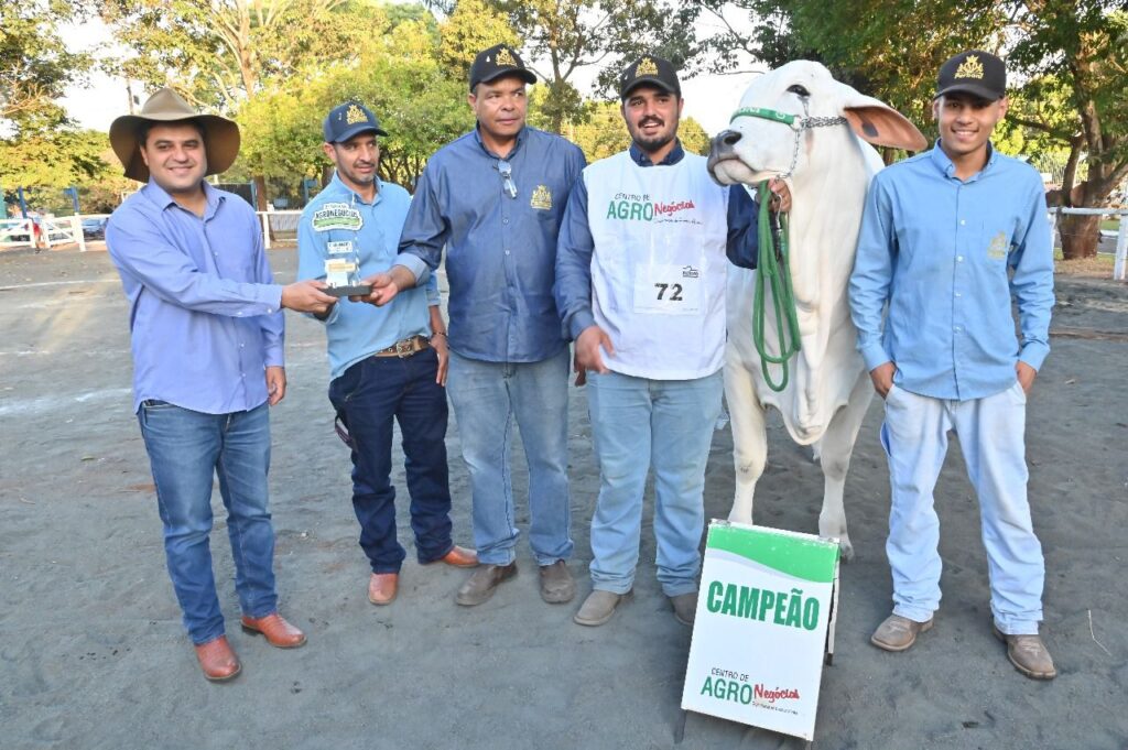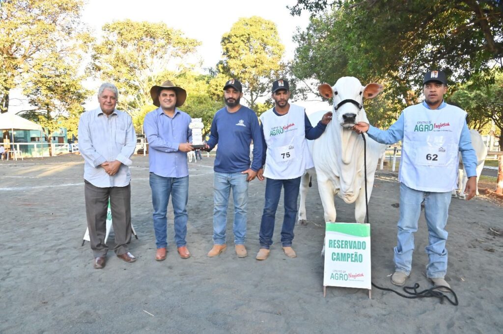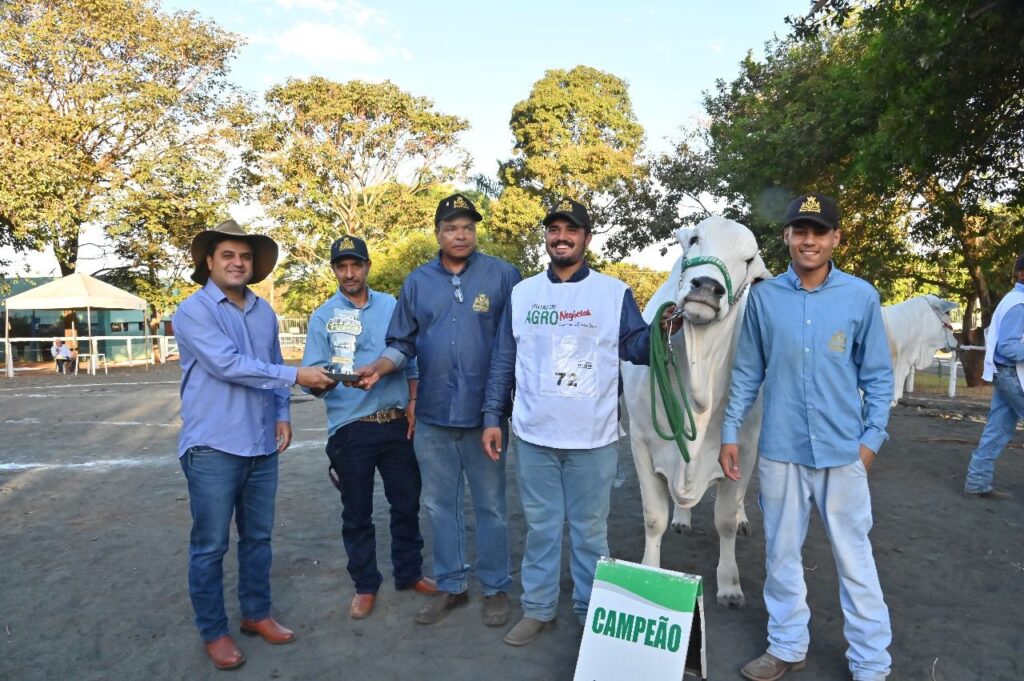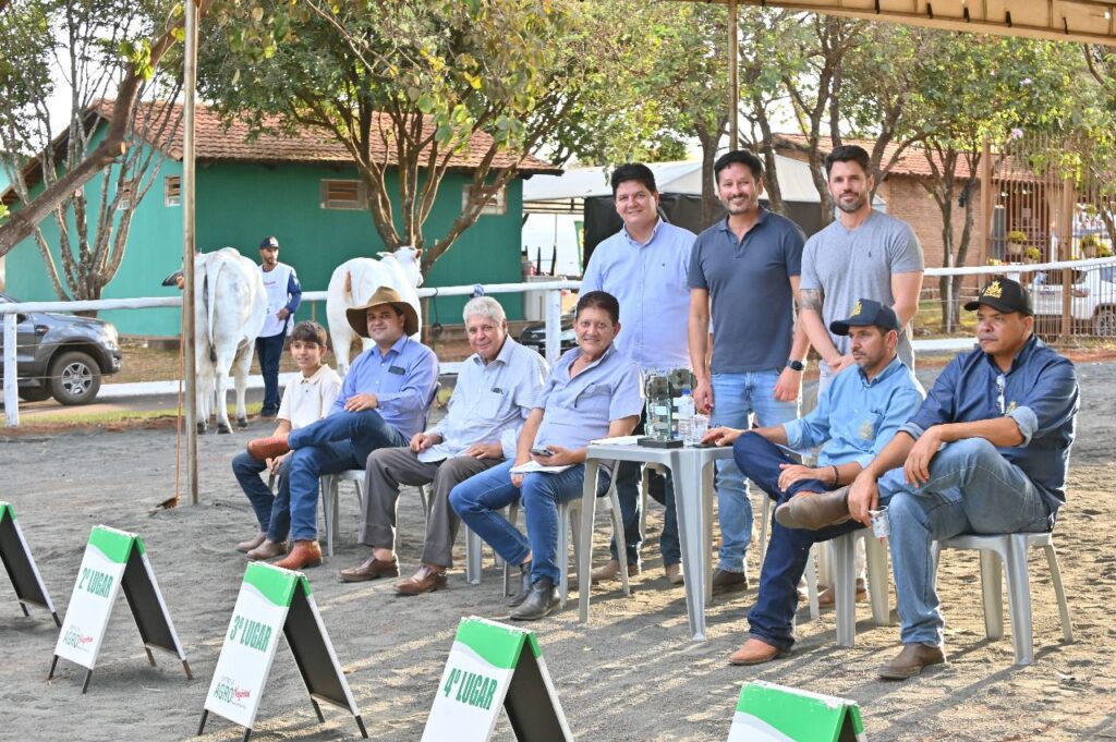 O Prefeito João Alberto, acompanhado de seu filho João Albertinho, do ex-governador Alcides Rodrigues e dos agropecuaristas Heuler Cruvinel, Sebastião Cruvinel e Bruno Abreu, Sérgio Caiado e Aldair Ribeiro, assistiram ao julgamento de pista e à classificação dos animais.