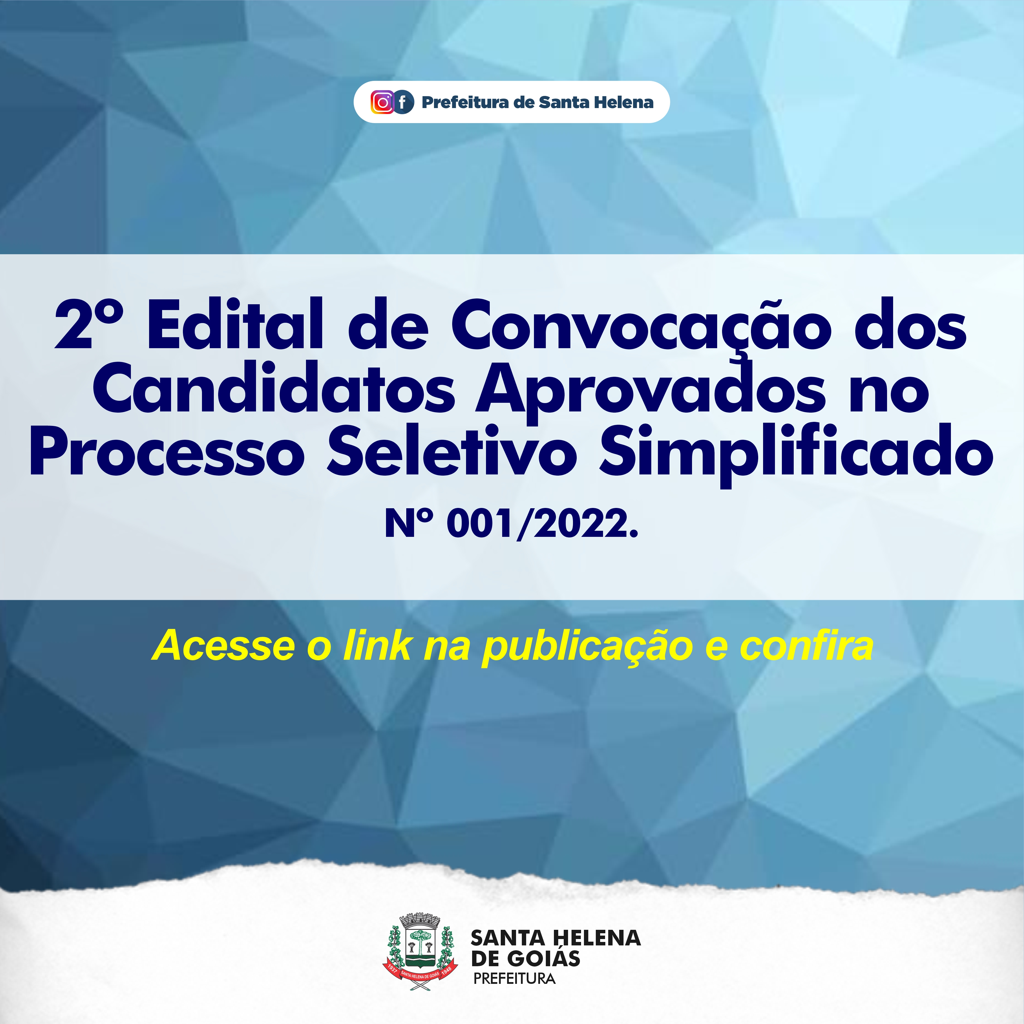 2º Edital de Convocação dos Candidatos Aprovados no Processo Seletivo Simplificado - Nº 001/2022, no link: https://acessoainformacao.santahelena.go.gov.br/cidadao/concursos_selecoes/selecao/id=21