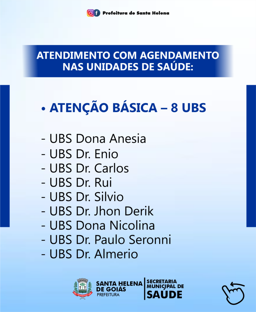 Aqui na Prefeitura de Santa Helena de Goiás, a saúde é um dos pilares da nossa gestão, sempre comprometidos em ampliar nossos atendimentos com alta cobertura, qualidade e de forma acessível para todos os nossos cidadãos.