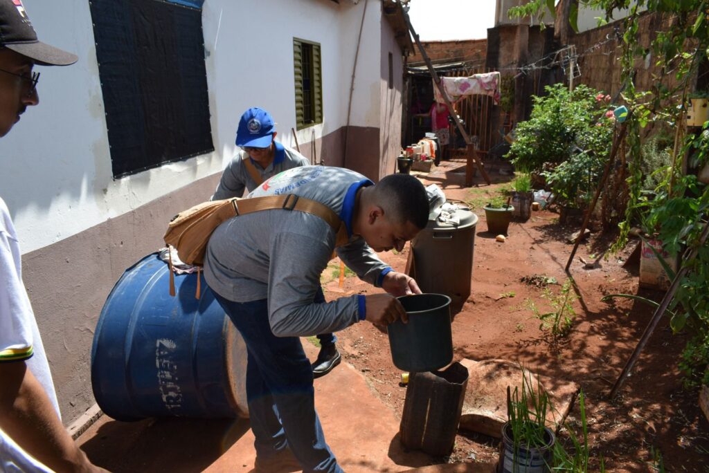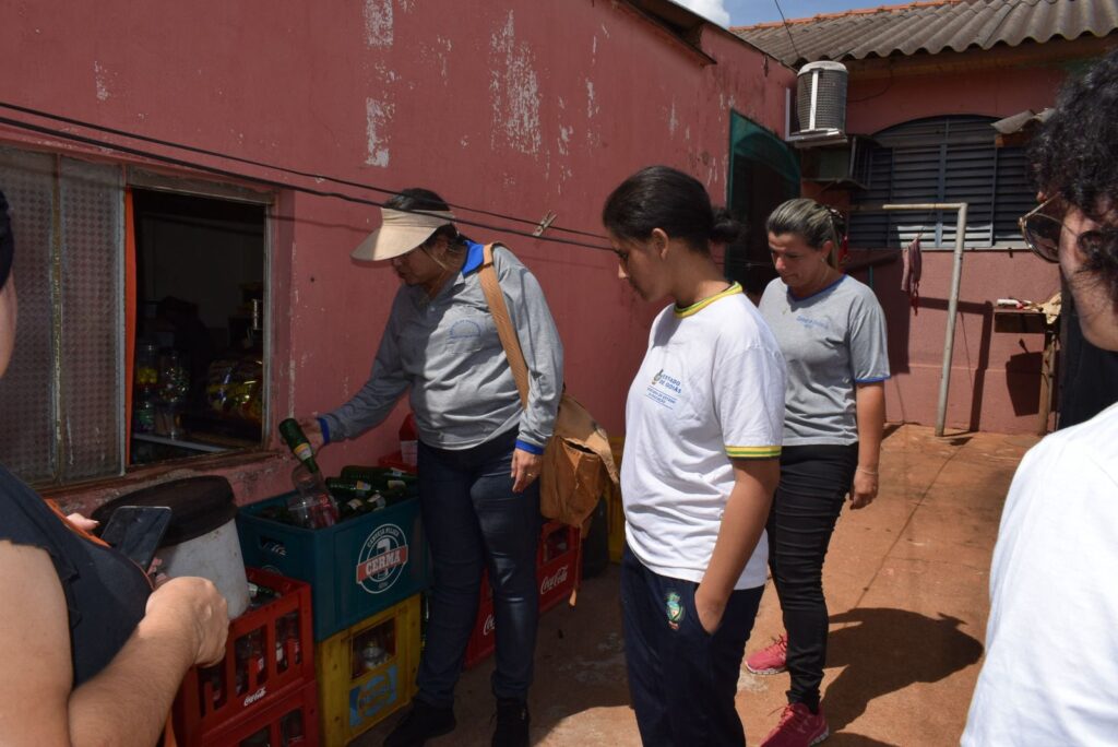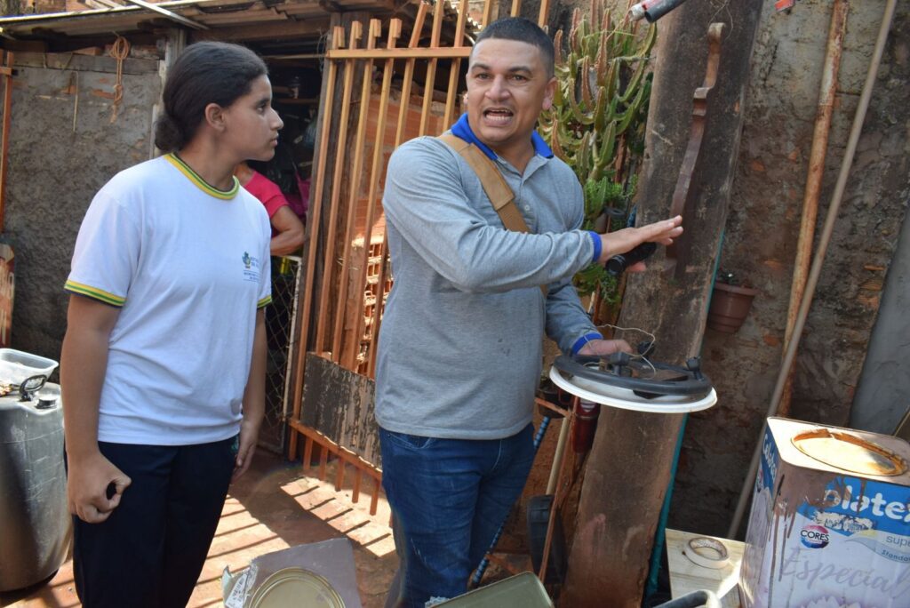 Além das informações sobre o combate ao mosquito da dengue, os alunos e agentes de endemias realizaram uma frente de ação, visitas domiciliares nos imóveis próximos à unidade de ensino, para divulgação e eliminação de criadouros.
