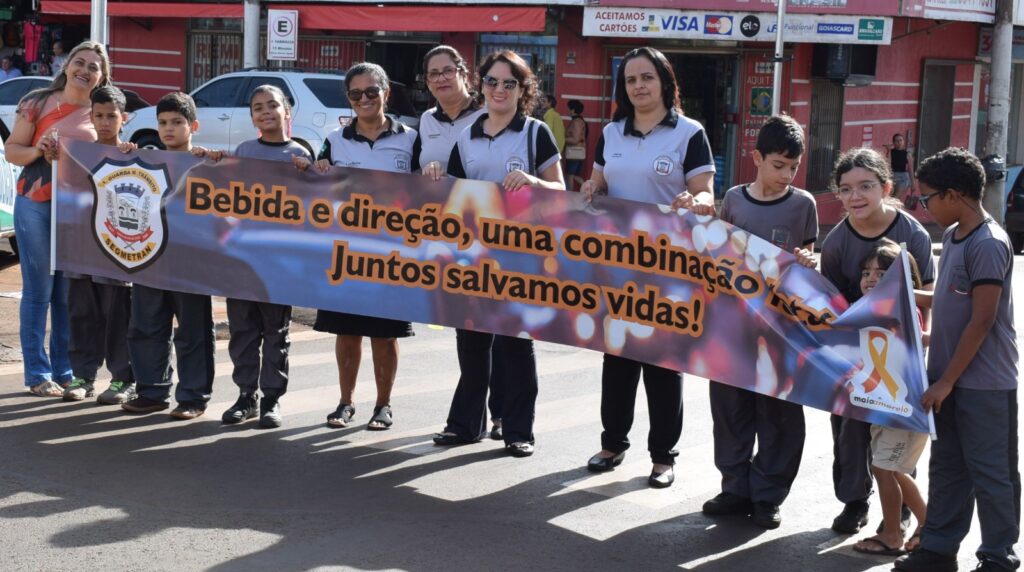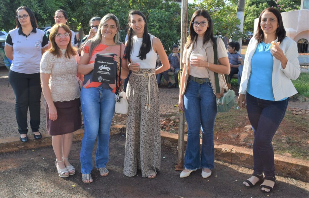 Todos juntos reforçando a mensagem de que a vida é o bem mais precioso, e que a precaução e o respeito às leis de trânsito são fundamentais para preservá-la.