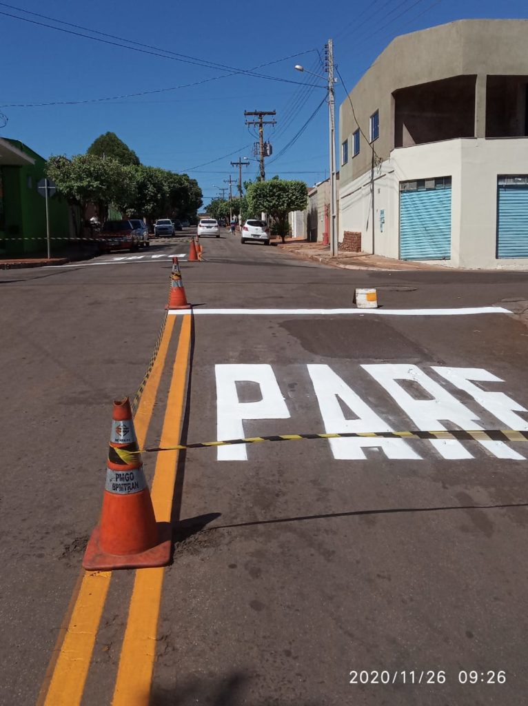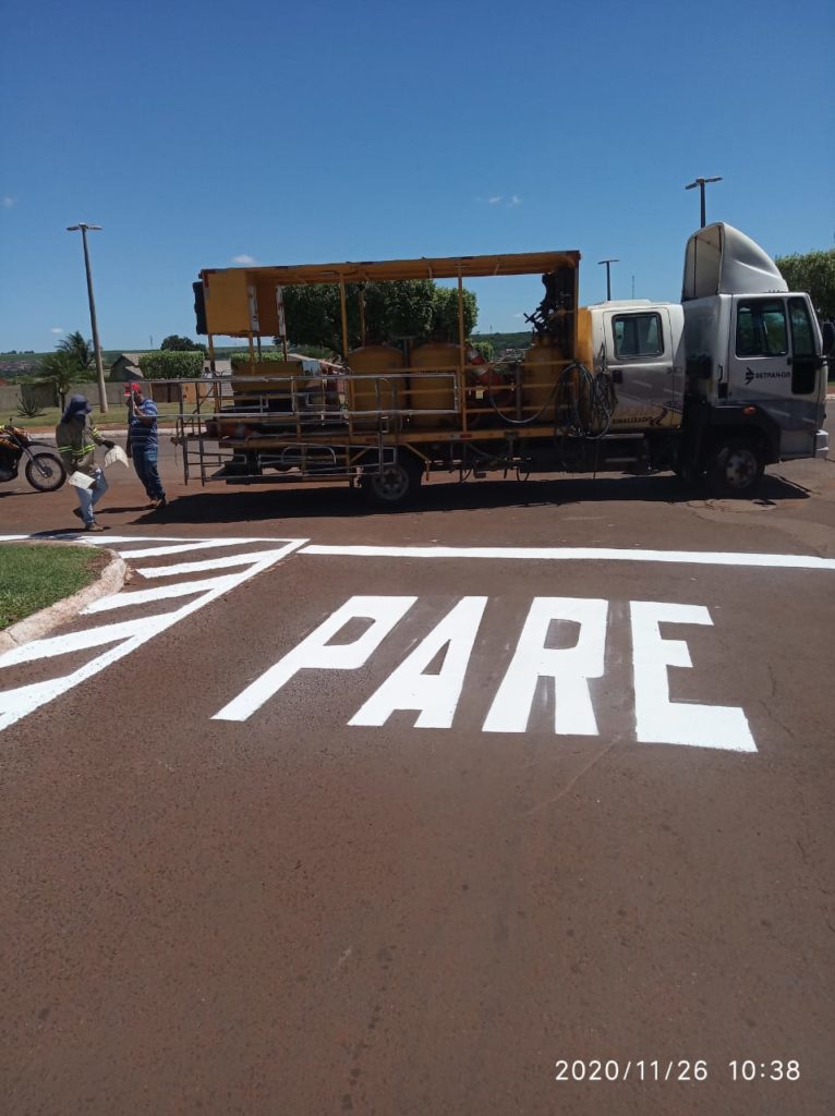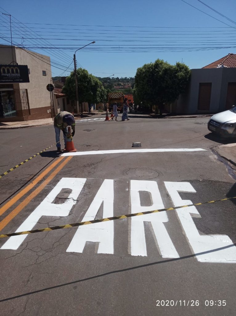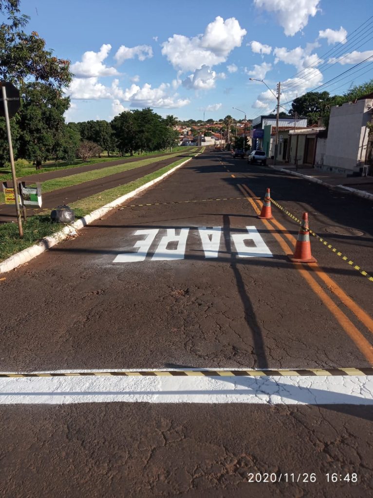 Homens estão trabalhando tanto na sinalização horizontal quanto na vertical. É necessário que os cidadãos santelenenses colaborem enquanto o serviço está sendo feito. Evite trafegar temporariamente pelas vias.
