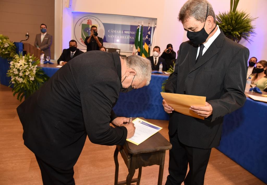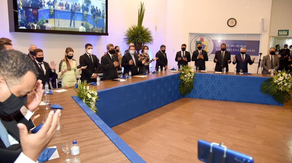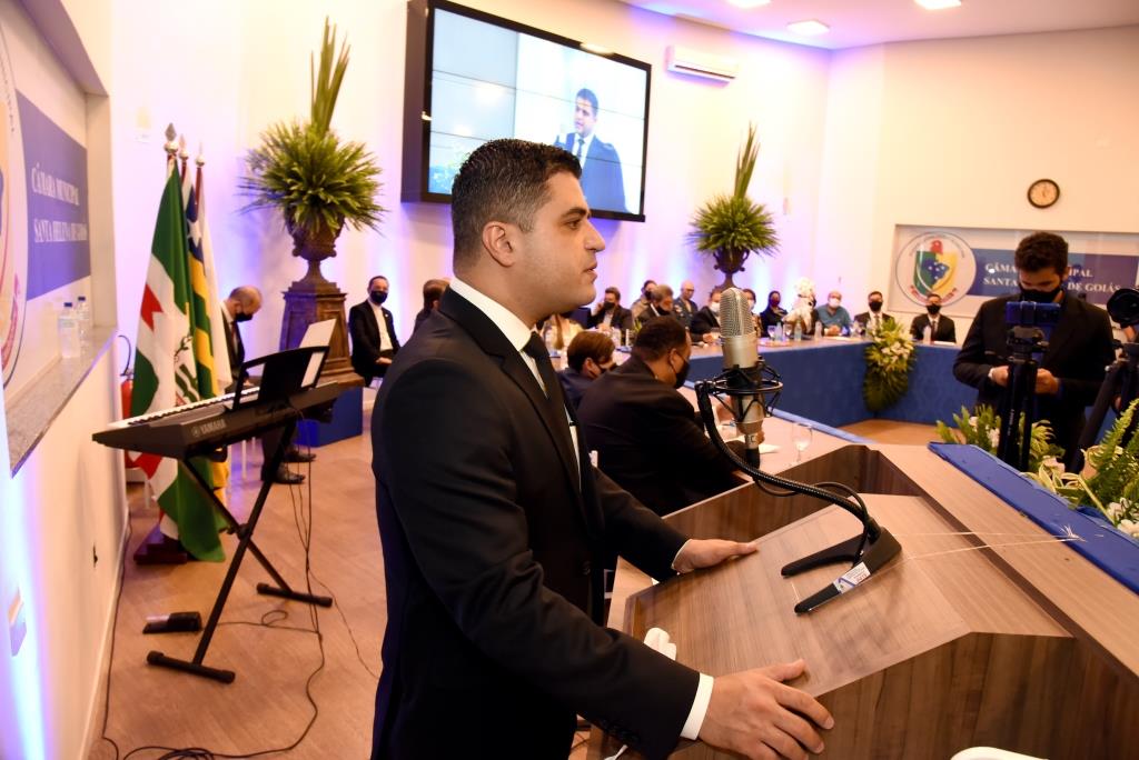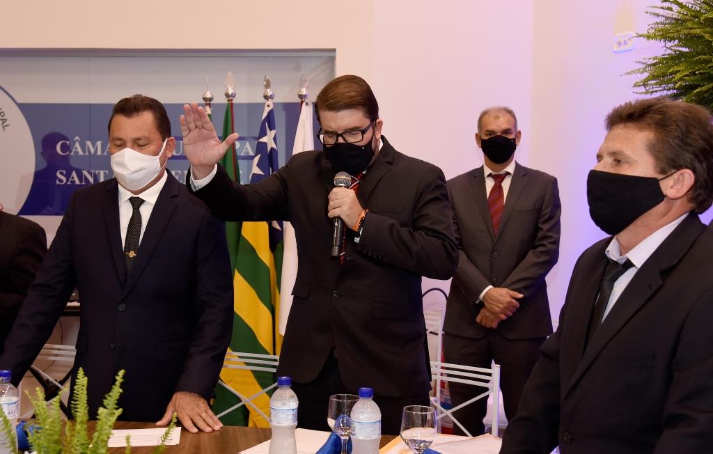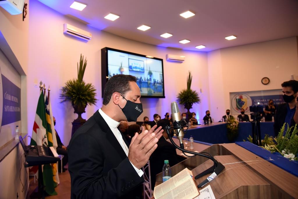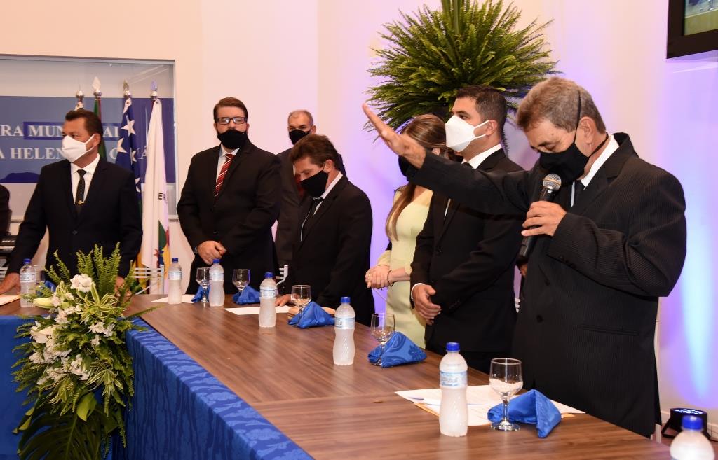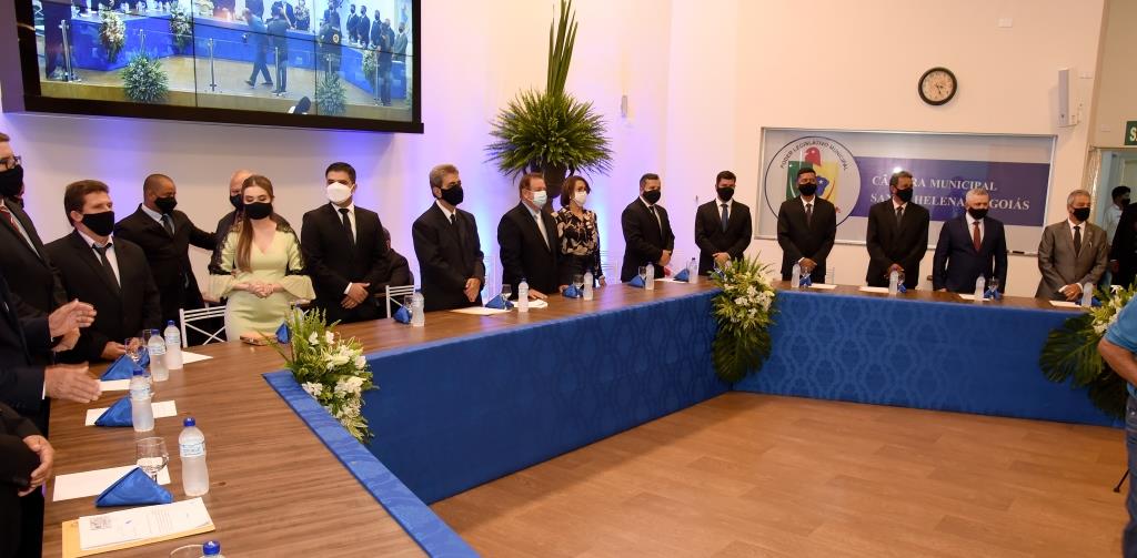Na tarde de sexta-feira (01), aconteceu, na Câmara de Vereadores de Santa Helena de Goiás, a Sessão Solene de Posse dos Poderes Executivo e Legislativo. Estiveram presentes o prefeito, Dr. João Alberto Vieira Rodrigues, Vice-prefeito, Dr. Agenor Bezerra de Queiroz, os Vereadores: Aduil Lopes Junior, Aglimeide Moreira, Áureo Bueno, Celso de Paula, Elias Junior, Francisco Dantas, Gilmar Sousa, Jânio Branquinho, Lourisval de Oliveira, Rones Ferreira, Silvio Marques, Simão Mota e Wellington Barbosa, Major da Polícia Militar Jane Lúcia de Sousa, Monsenhor Vicente, Pastor Jeremias, Capitão do Corpo de Bombeiros Roberto César Tosta e Ney Nogueira, representante do o Deputado Federal Dr. Alcides Rodrigues Filho, familiares, amigos, imprensa e comunidade em geral. Todos fizeram seus juramentos e foram devidamente empossados. Assista ao discurso do prefeito João Alberto na live do Facebook: https://www.facebook.com/prefeiturasantahelenago/videos/415571892976661/ Ascom PMSHNatalia Martins JP 2180 DRT/GOImagens de Manoel Paiva