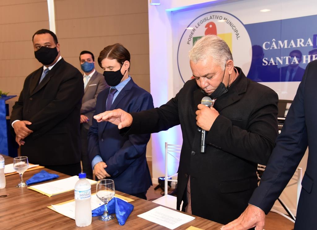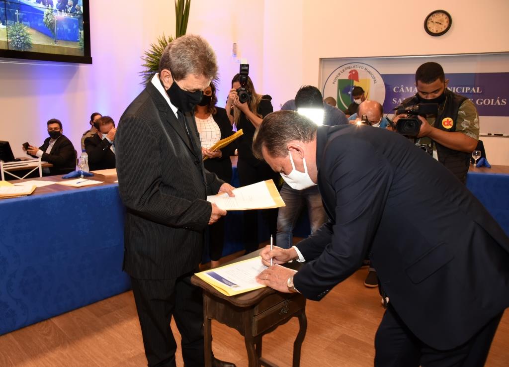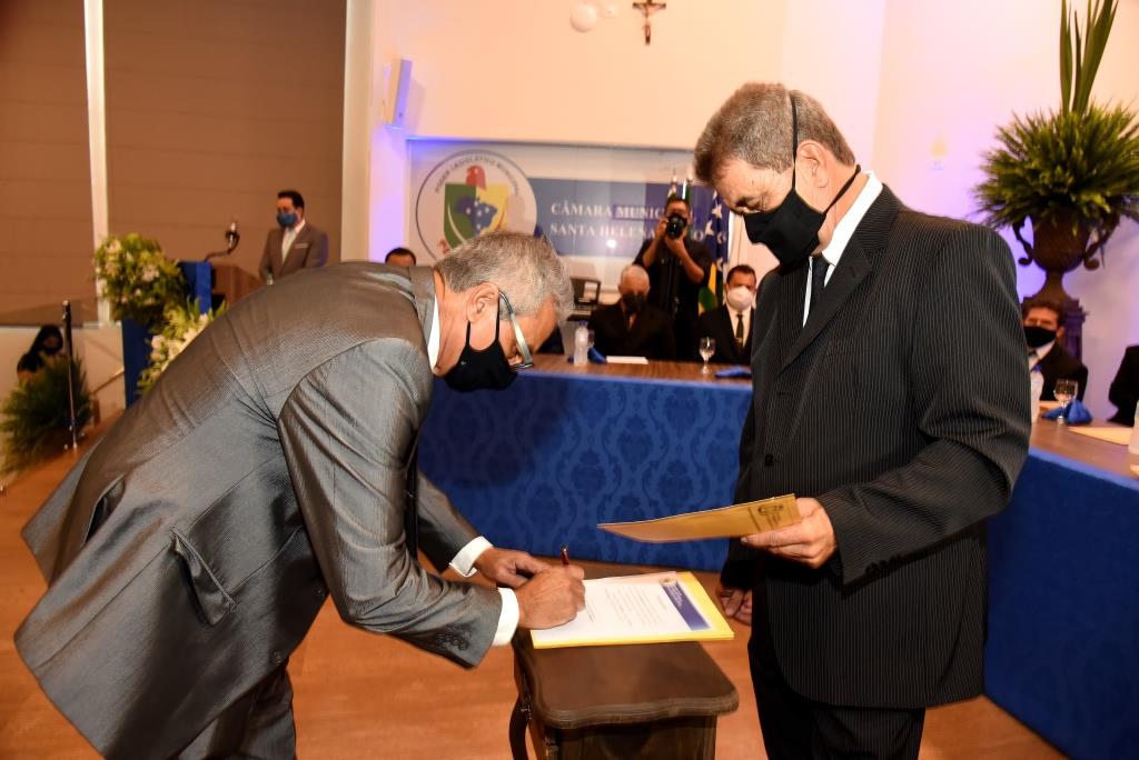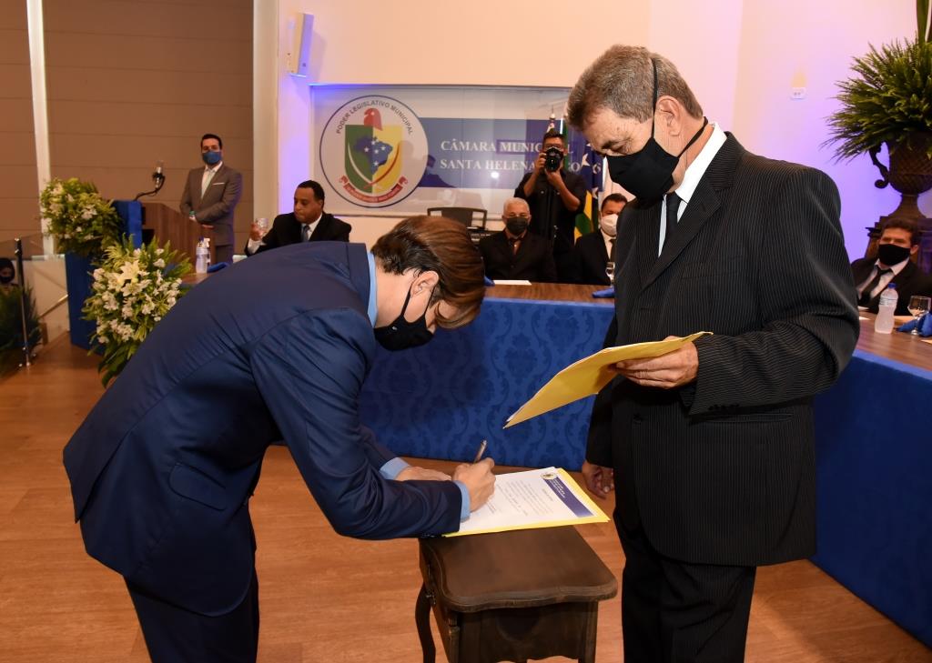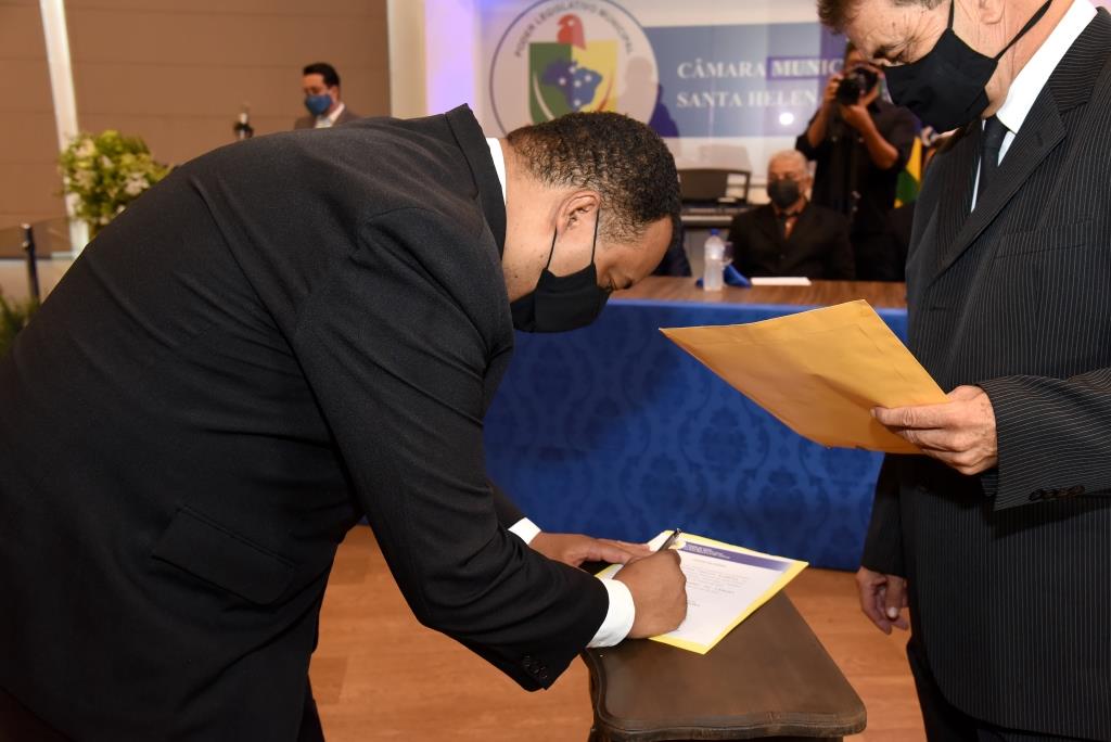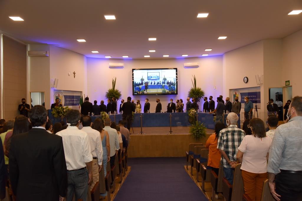 Na tarde de sexta-feira (01), aconteceu, na Câmara de Vereadores de Santa Helena de Goiás, a Sessão Solene de Posse dos Poderes Executivo e Legislativo. Estiveram presentes o prefeito, Dr. João Alberto Vieira Rodrigues, Vice-prefeito, Dr. Agenor Bezerra de Queiroz, os Vereadores: Aduil Lopes Junior, Aglimeide Moreira, Áureo Bueno, Celso de Paula, Elias Junior, Francisco Dantas, Gilmar Sousa, Jânio Branquinho, Lourisval de Oliveira, Rones Ferreira, Silvio Marques, Simão Mota e Wellington Barbosa, Major da Polícia Militar Jane Lúcia de Sousa, Monsenhor Vicente, Pastor Jeremias, Capitão do Corpo de Bombeiros Roberto César Tosta e Ney Nogueira, representante do o Deputado Federal Dr. Alcides Rodrigues Filho, familiares, amigos, imprensa e comunidade em geral. Todos fizeram seus juramentos e foram devidamente empossados. Assista ao discurso do prefeito João Alberto na live do Facebook: https://www.facebook.com/prefeiturasantahelenago/videos/415571892976661/ Ascom PMSHNatalia Martins JP 2180 DRT/GOImagens de Manoel Paiva