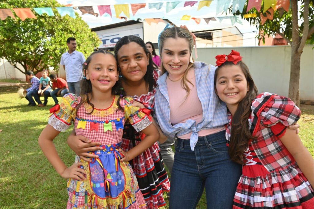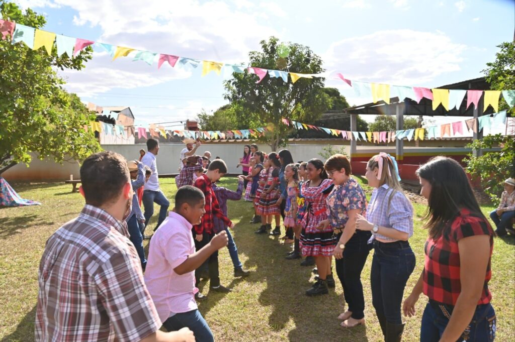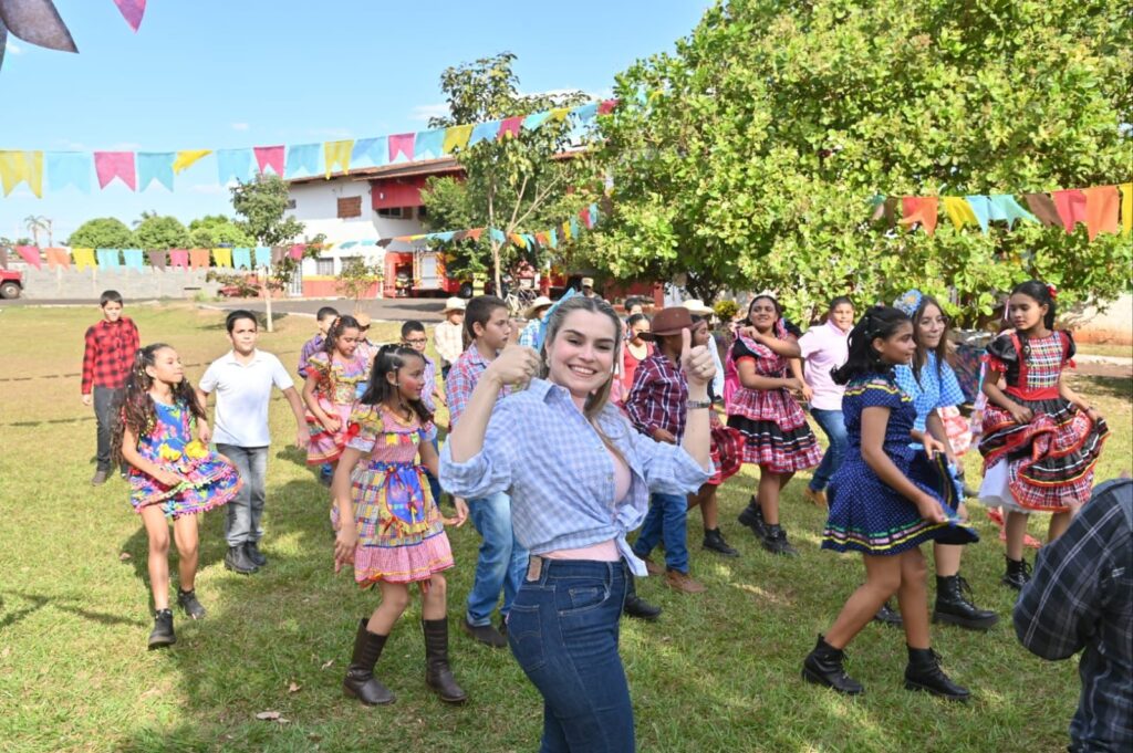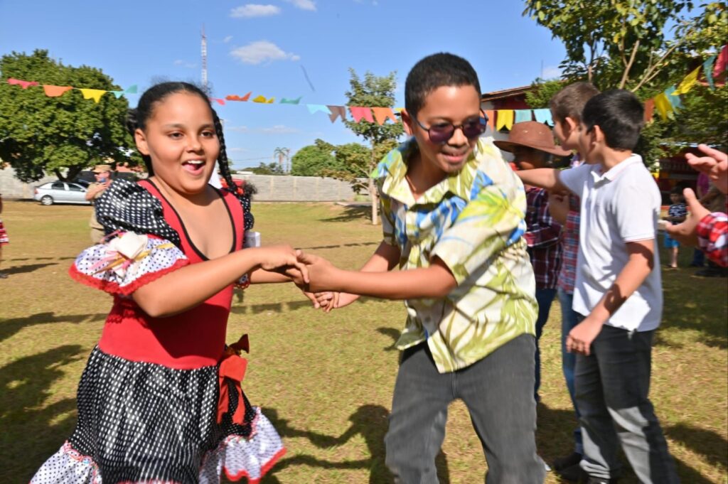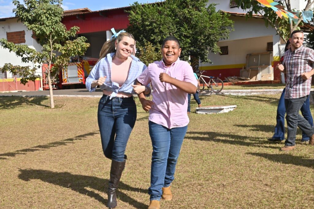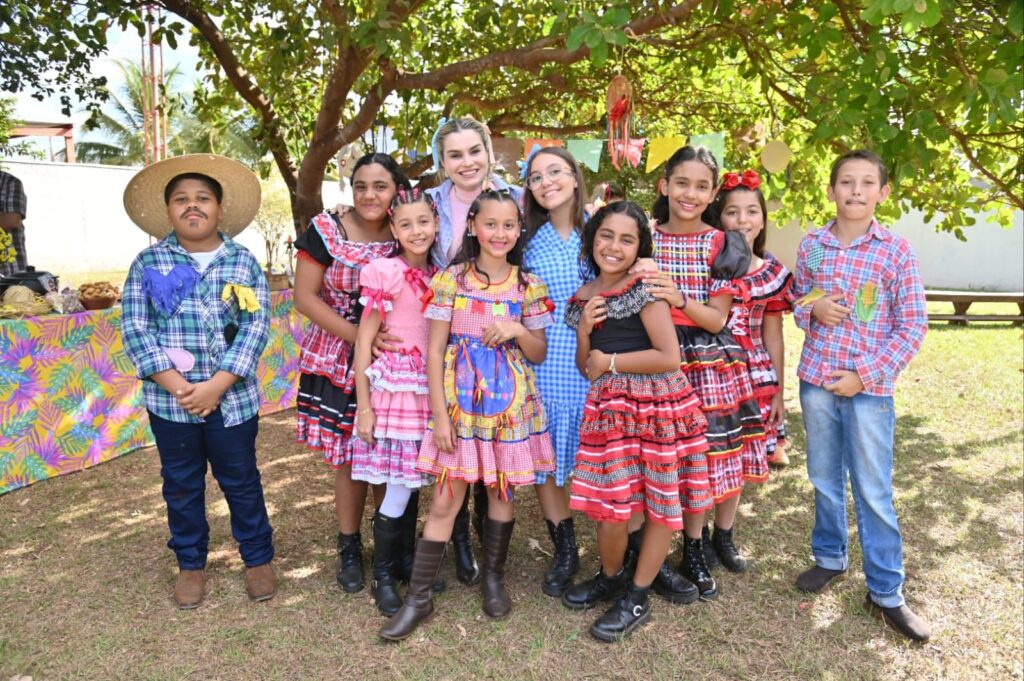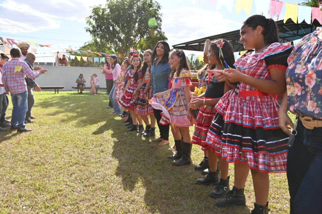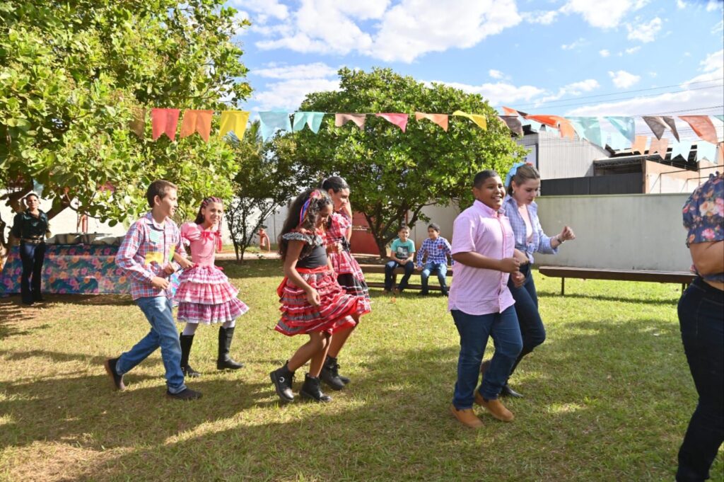 A Secretária de Promoção Social, Dra. Renata Asmar Rodrigues, puxou a quadrilha com as crianças e os colaboradores do projeto, que se divertiram celebrando a cultura junina em grande estilo.