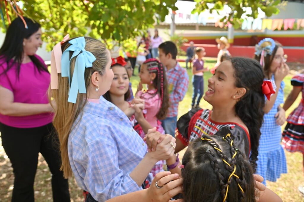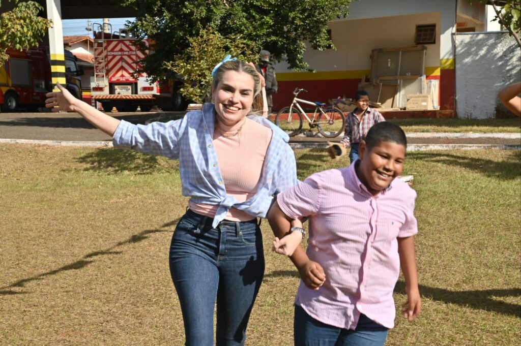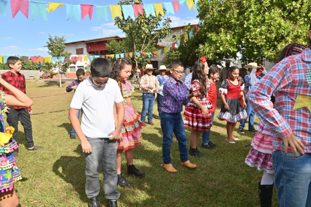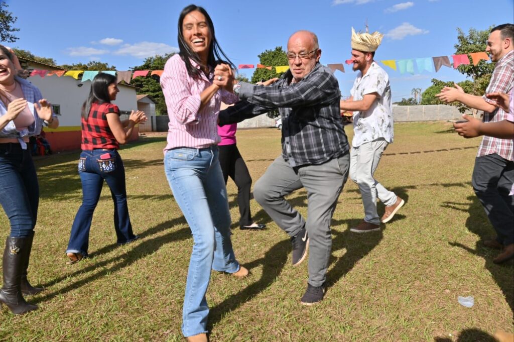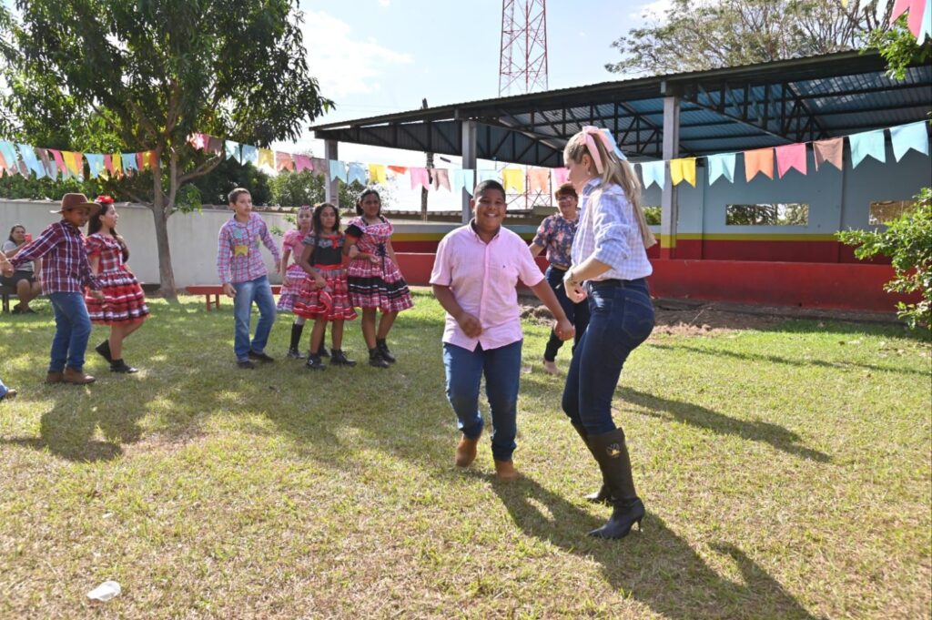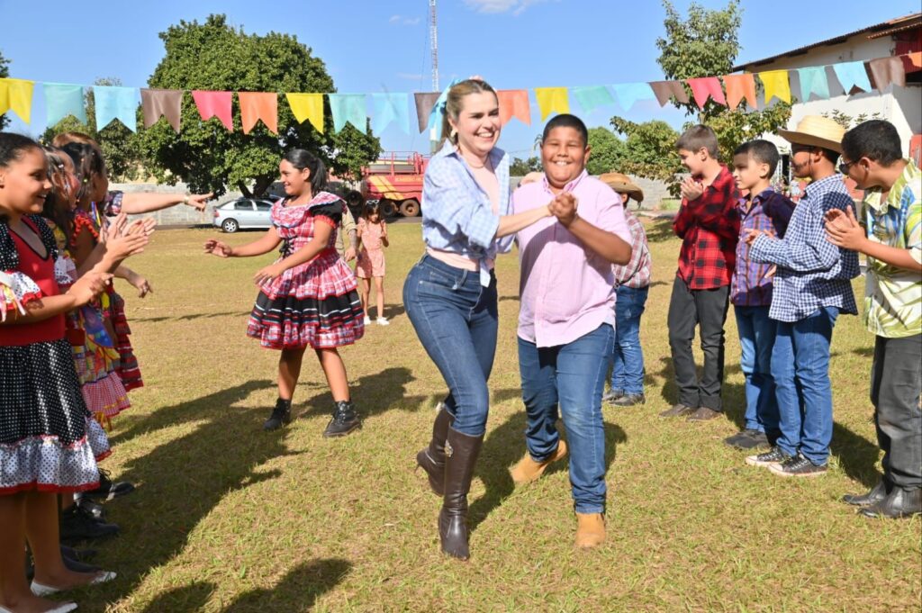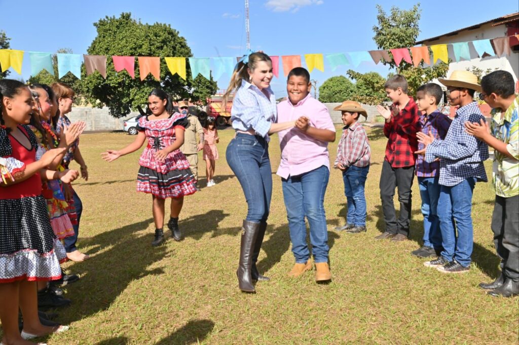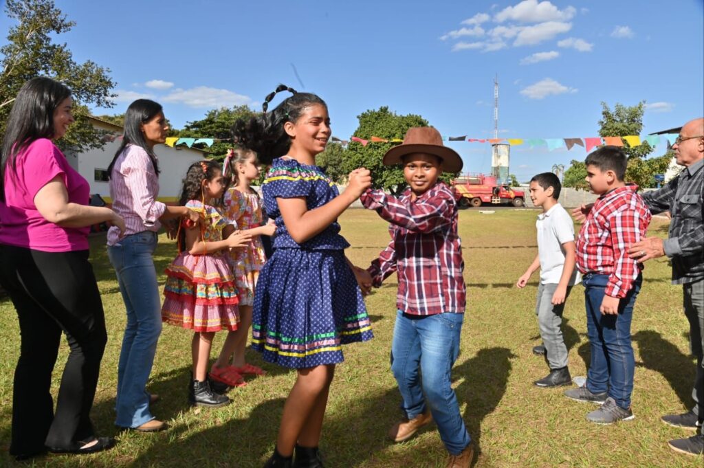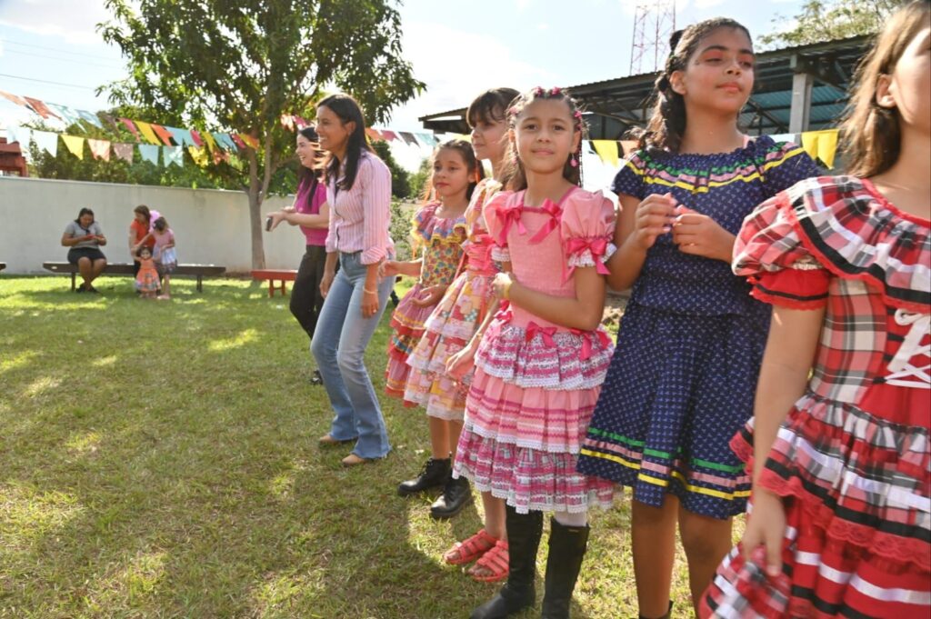 A Secretária de Promoção Social, Dra. Renata Asmar Rodrigues, puxou a quadrilha com as crianças e os colaboradores do projeto, que se divertiram celebrando a cultura junina em grande estilo.