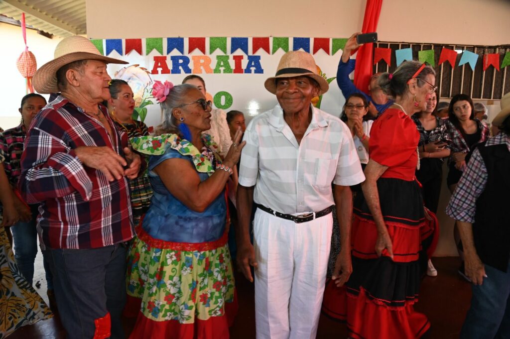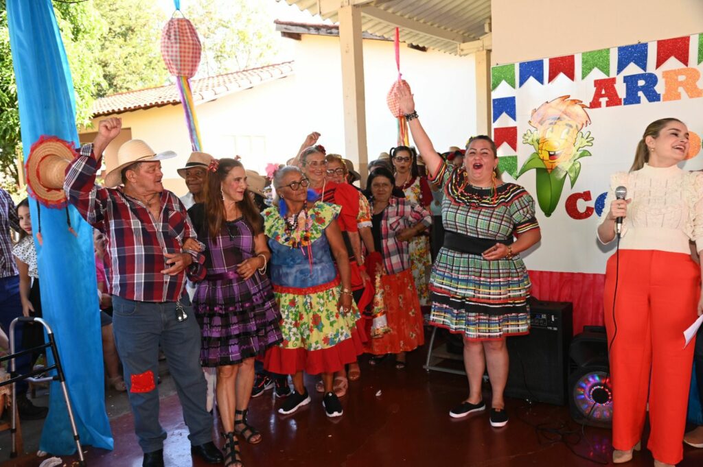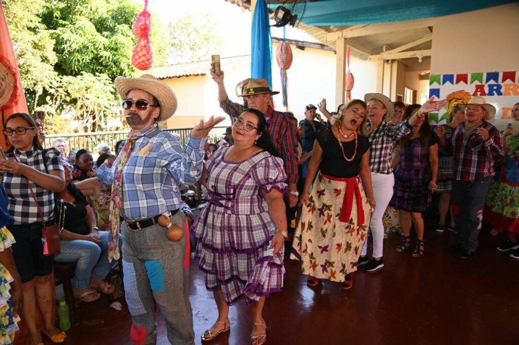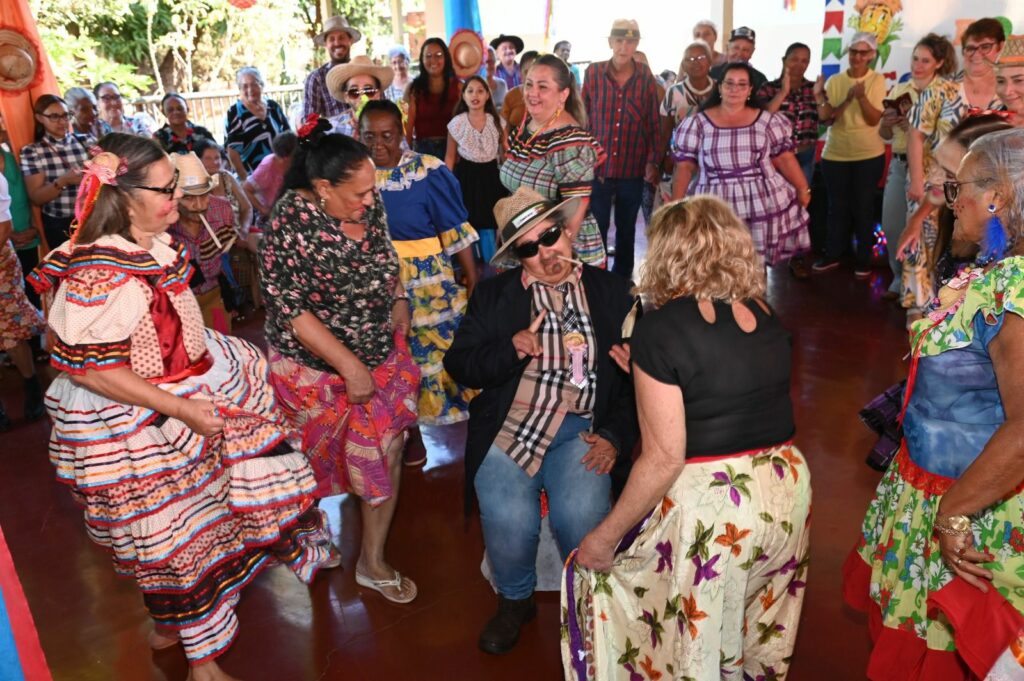 O clima junino invadiu o Projeto Conviver! Nesta quinta-feira (22), os idosos acompanhados pelo projeto, vinculado à Secretaria de Promoção Social, colocaram todo mundo para dançar! O forró e o arrasta-pé foram as atrações principais dessa celebração. Além das empolgantes apresentações de quadrilhas e danças, o ambiente estava repleto de decoração festiva e delícias típicas das festas juninas. O local foi animado com muita música e diversas outras atrações. A Primeira Dama e Secretária de Promoção Social, Dra. Renata Araújo Asmar Rodrigues, também esteve presente para testemunhar de perto a alegria contagiante das pessoas e, é claro, não resistiu à tentação de se juntar à dança. Ela expressou sua gratidão pela participação ao longo dos últimos anos do arraiá que se tornou tradição nas festividades da promoção social e elogiou a dedicação de todos na organização dessa tarde festiva grandiosa e encantadora. Todos se divertiram com entusiasmo contagiante no Arraiá do Conviver!