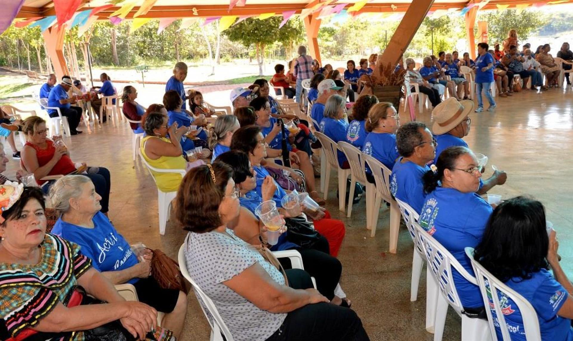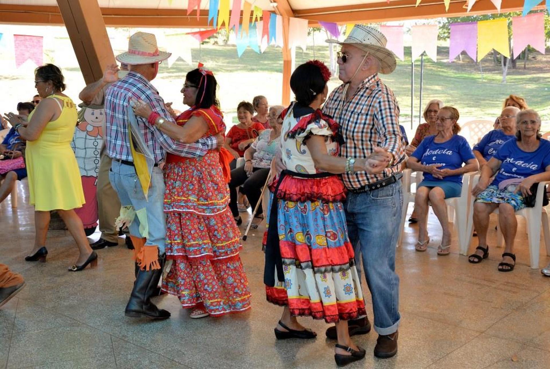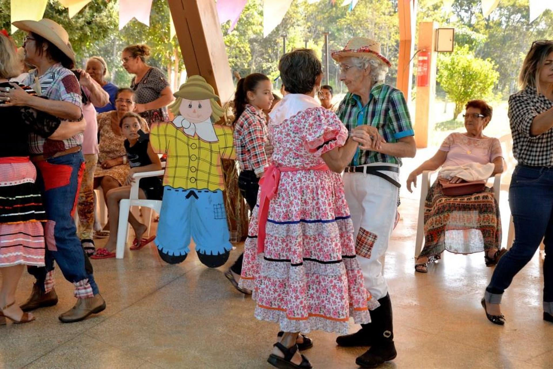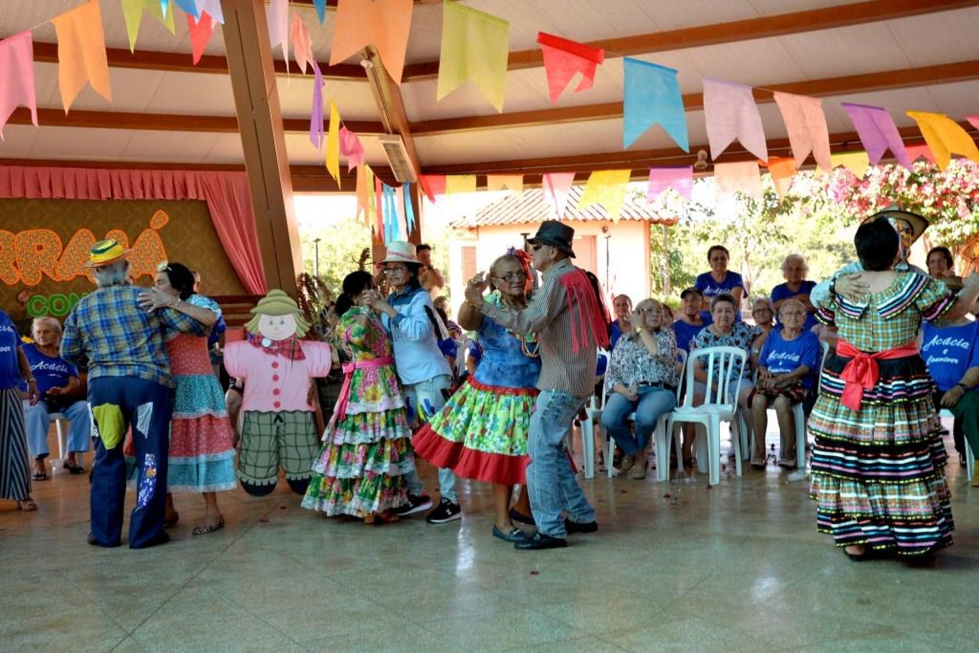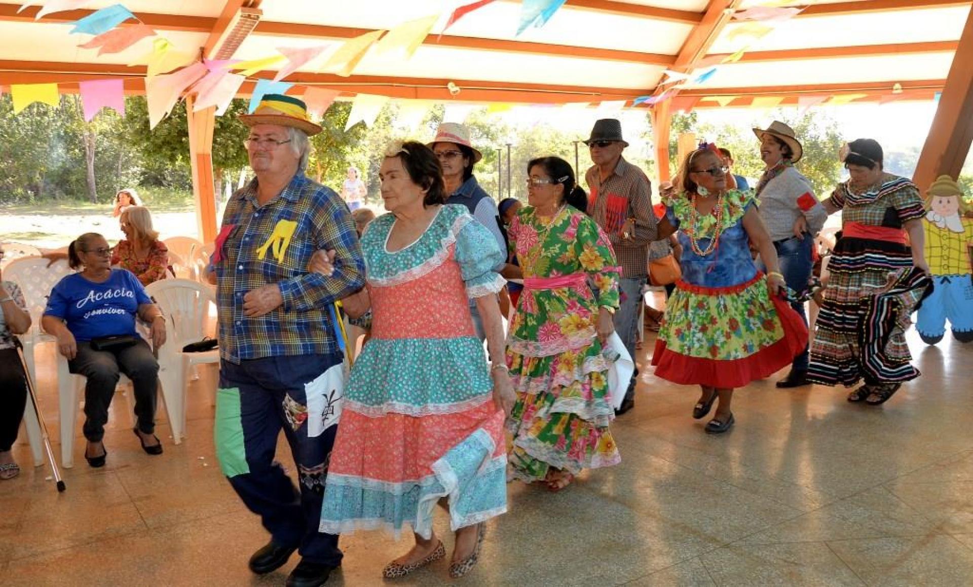 Os idosos do projeto Conviver ligado à Secretaria de Promoção Social participaram, na tarde desta quinta-feira (29) do Arraiá, que aconteceu no Parque Aquático Turmim Azevedo.