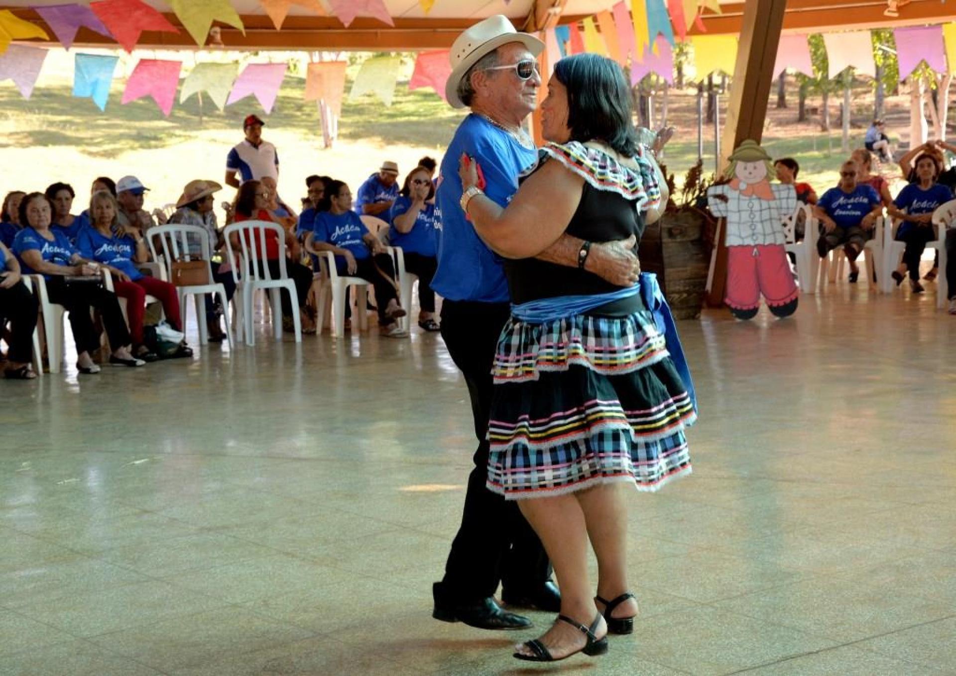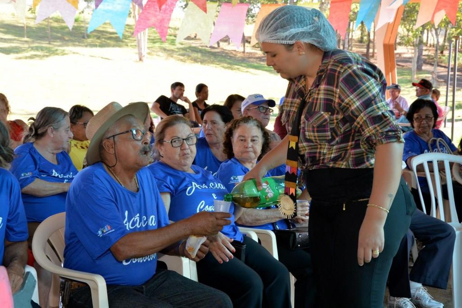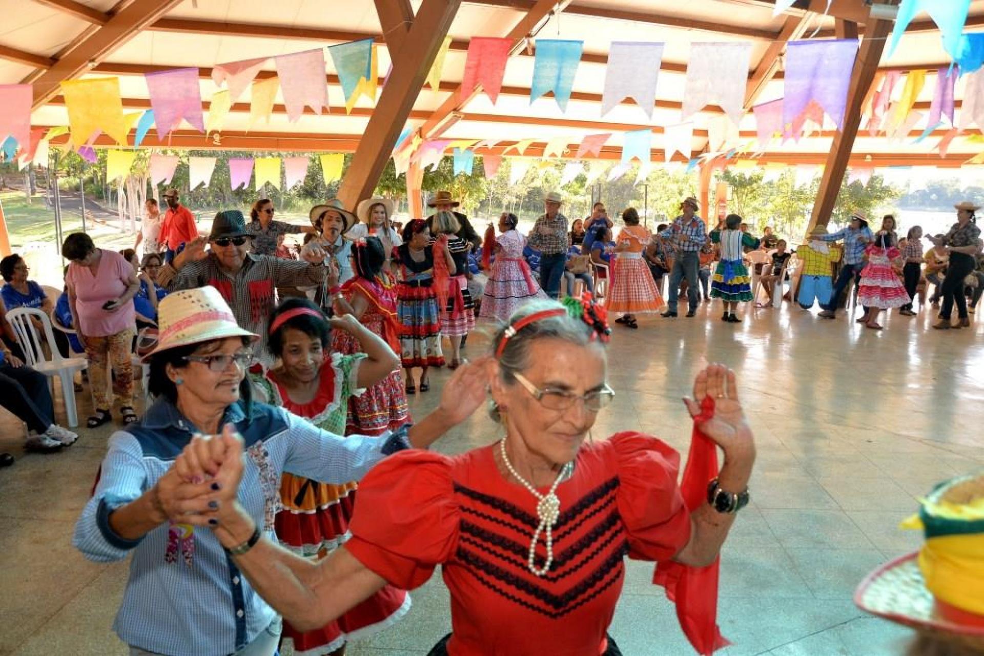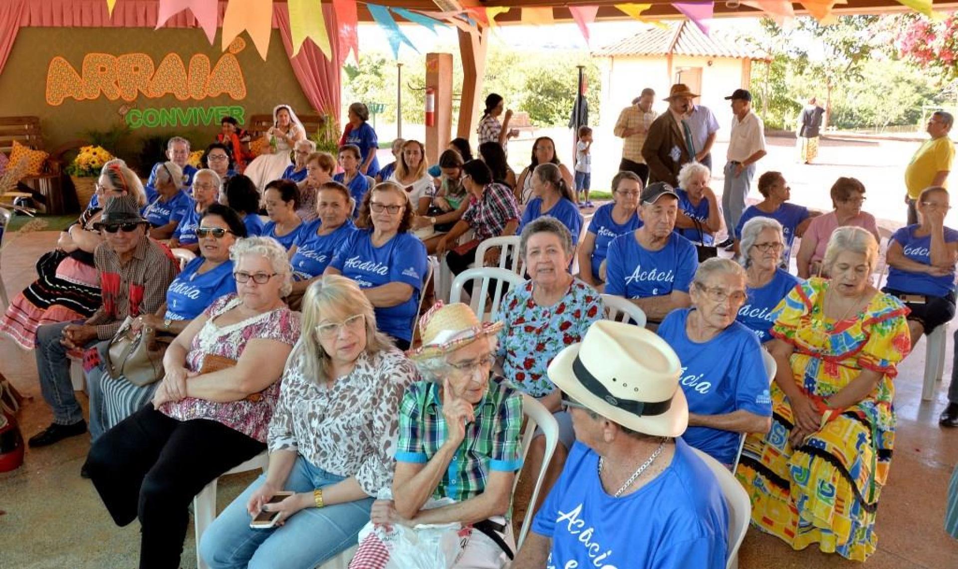 Os idosos do projeto Conviver ligado à Secretaria de Promoção Social participaram, na tarde desta quinta-feira (29) do Arraiá, que aconteceu no Parque Aquático Turmim Azevedo.