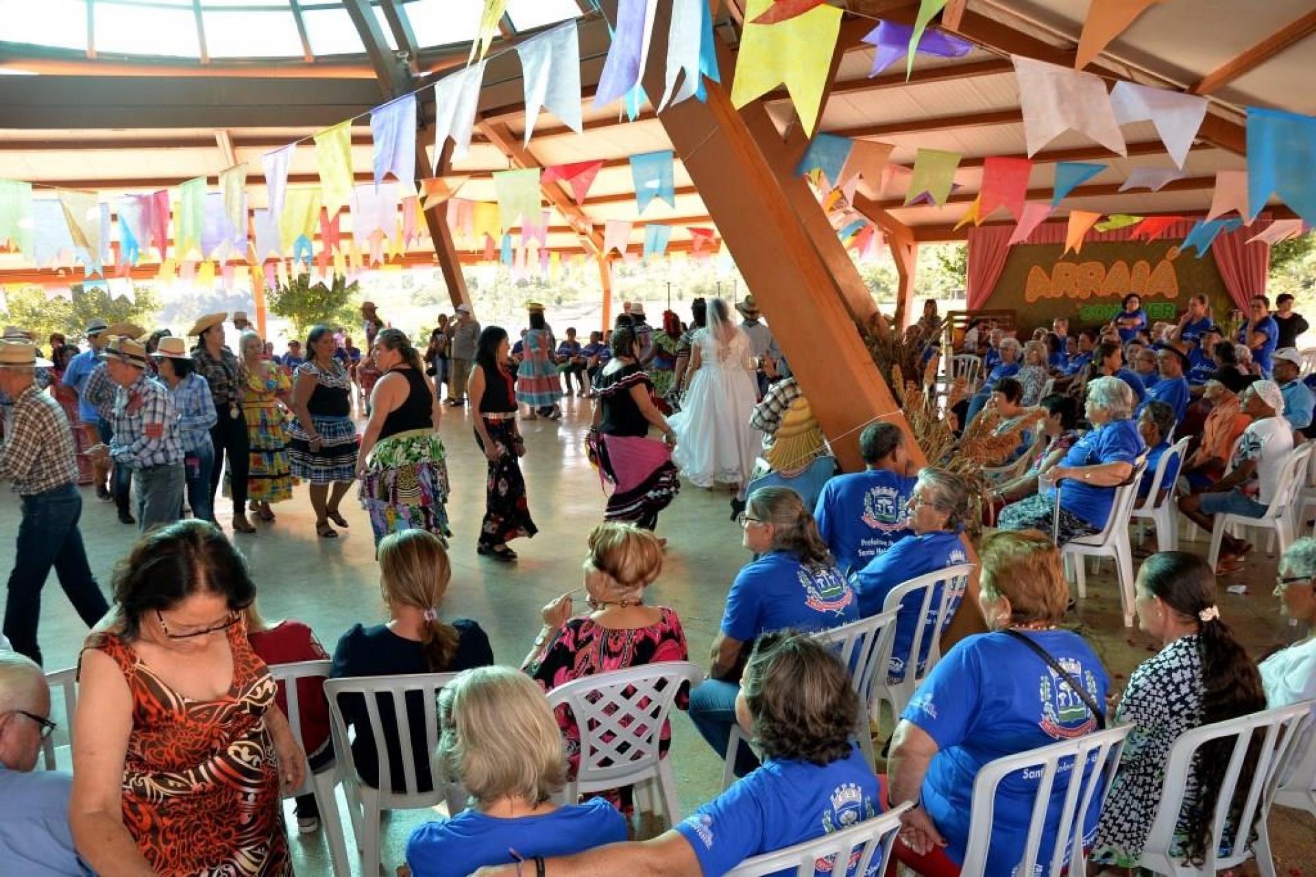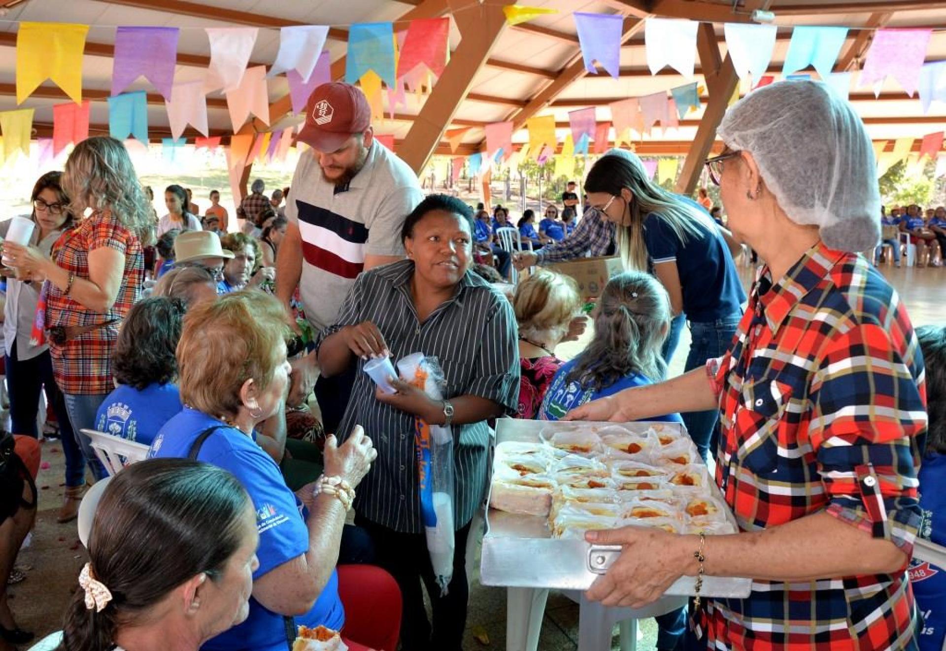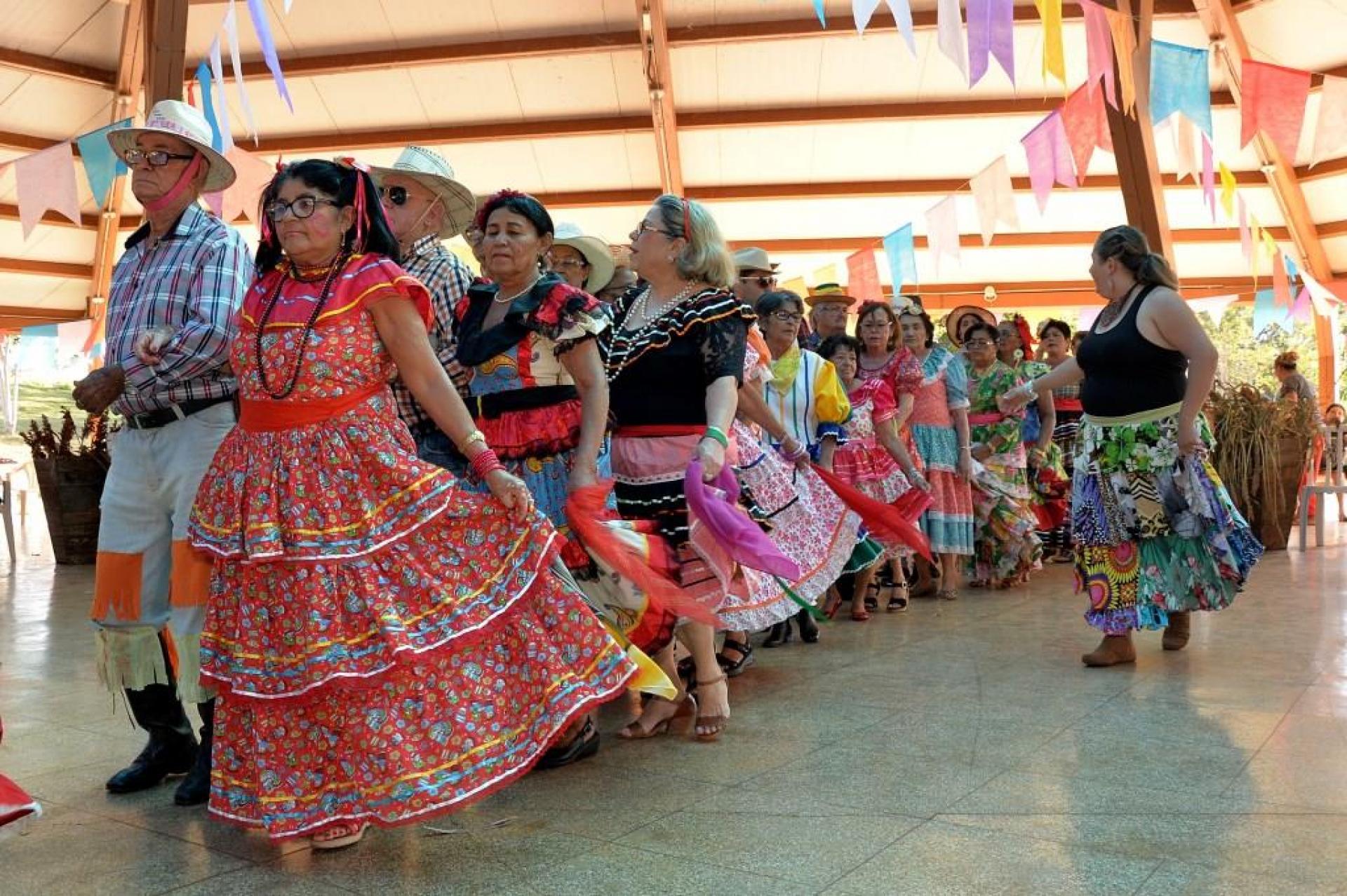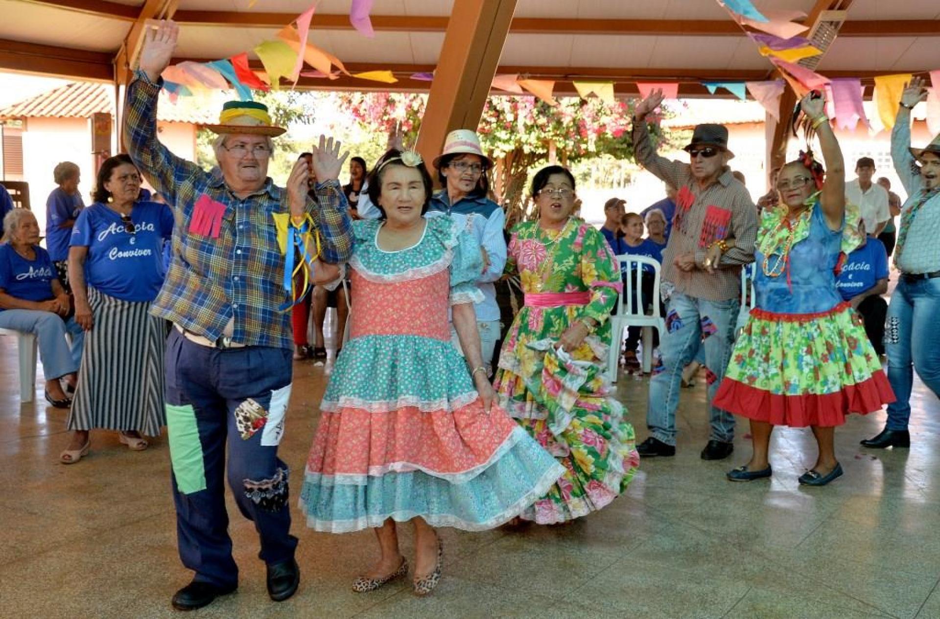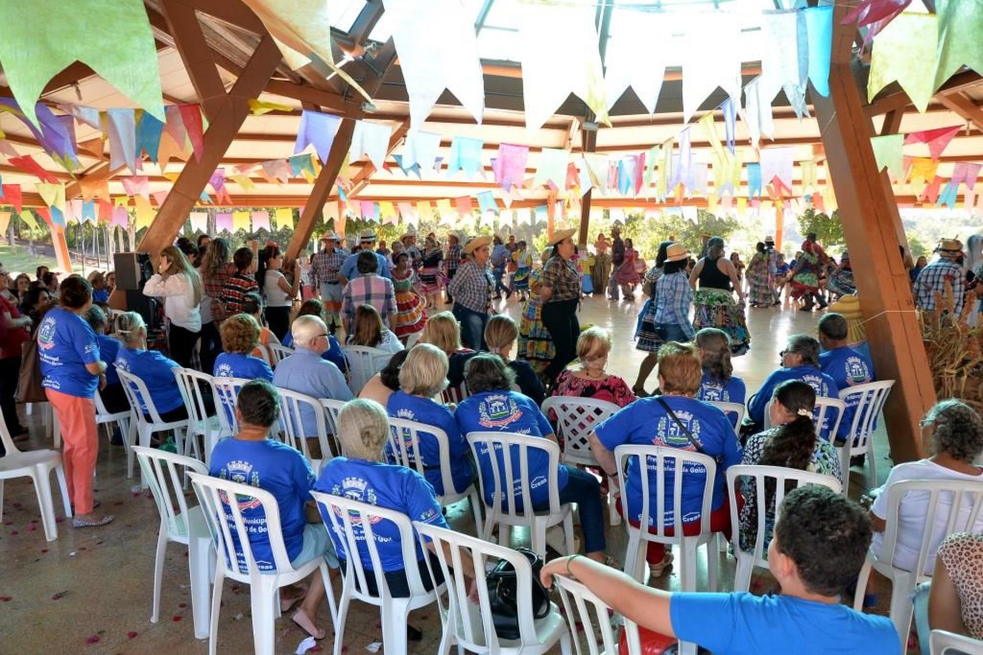Os idosos do projeto Conviver ligado à Secretaria de Promoção Social participaram, na tarde desta quinta-feira (29) do Arraiá, que aconteceu no Parque Aquático Turmim Azevedo.