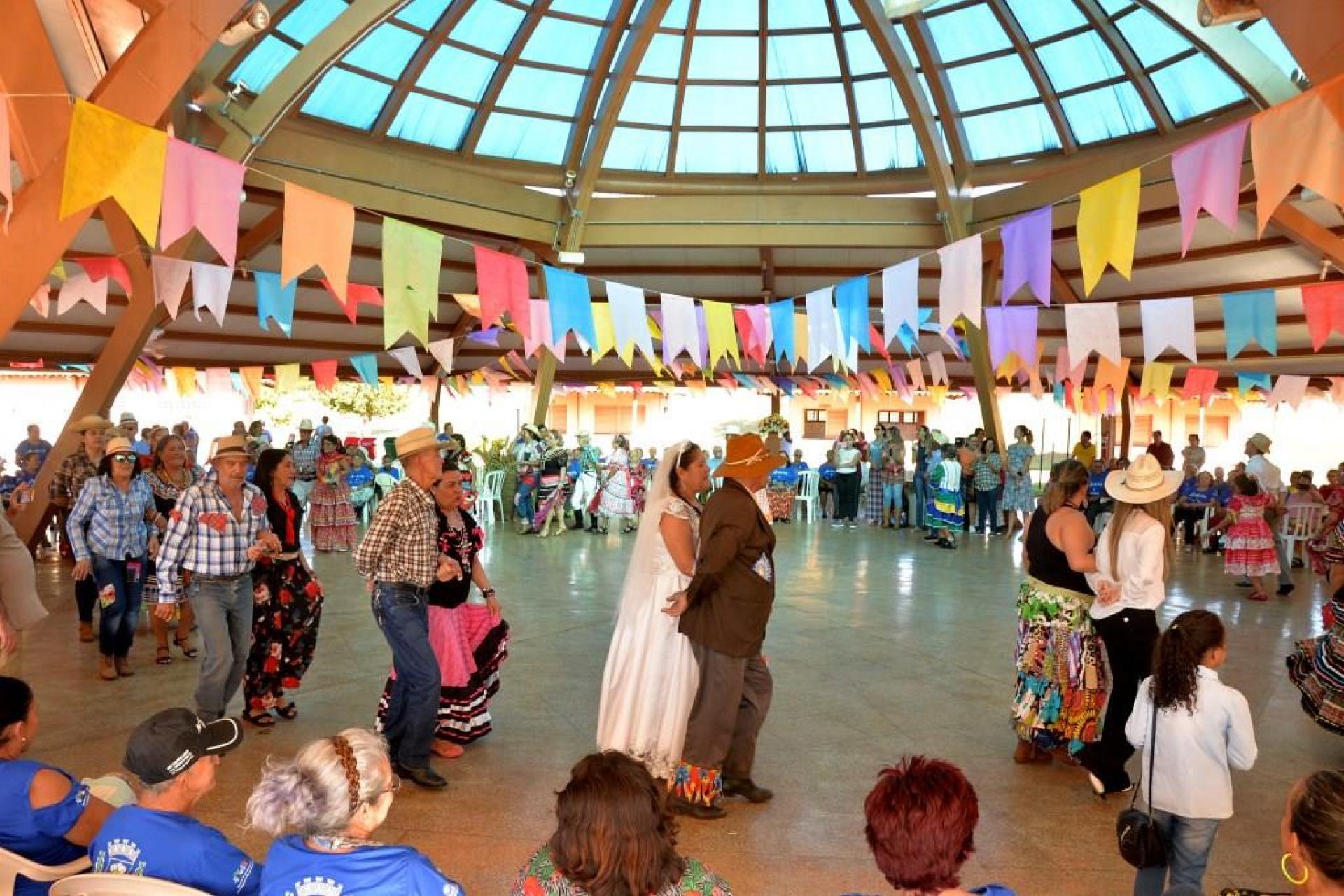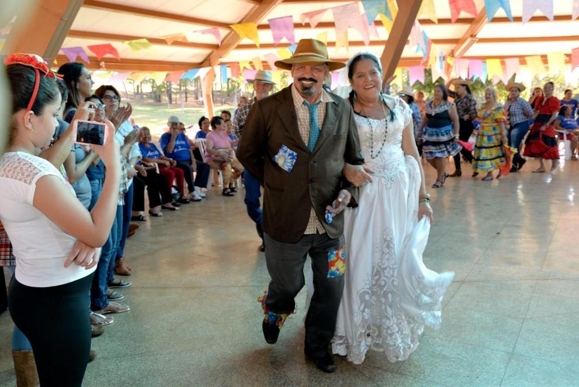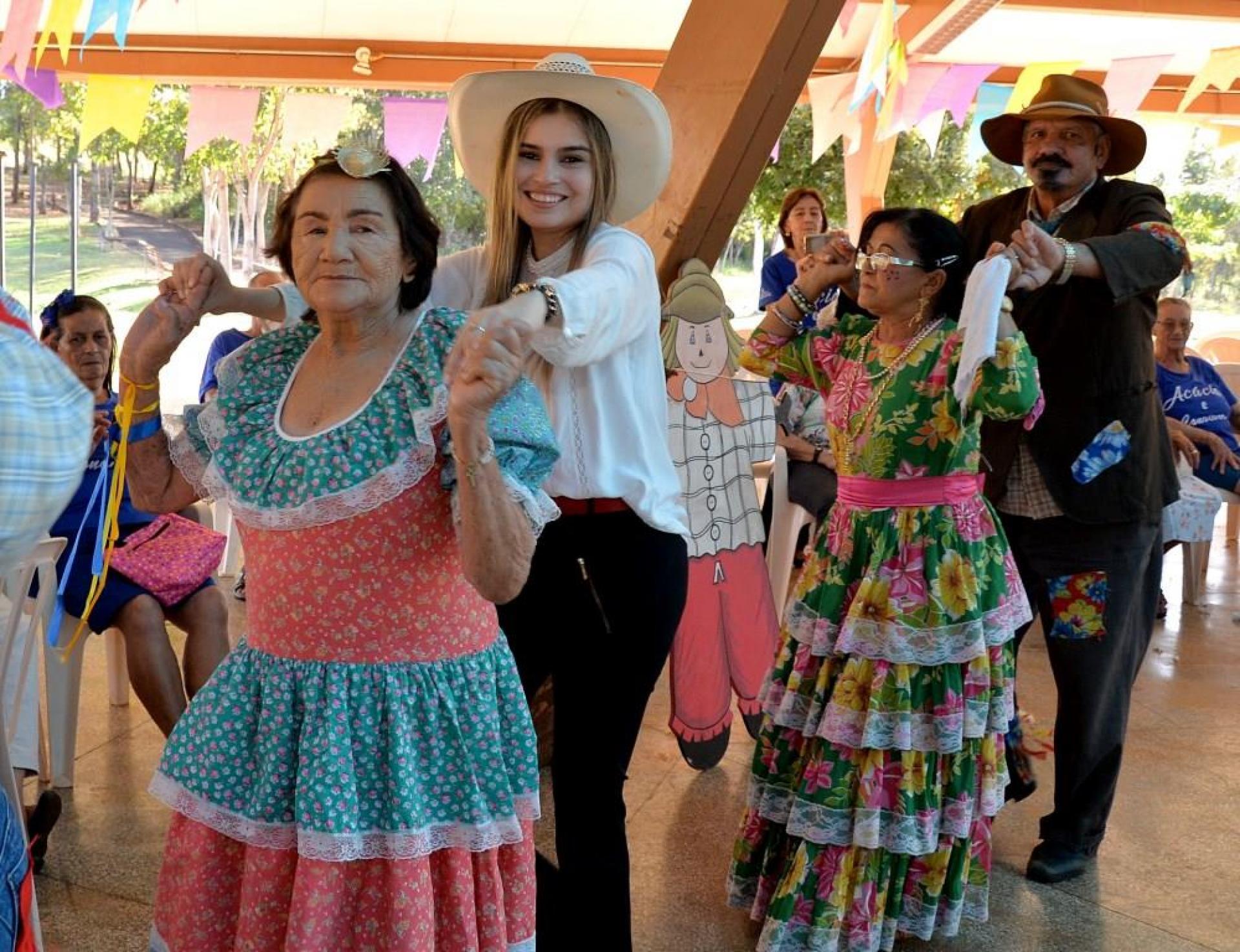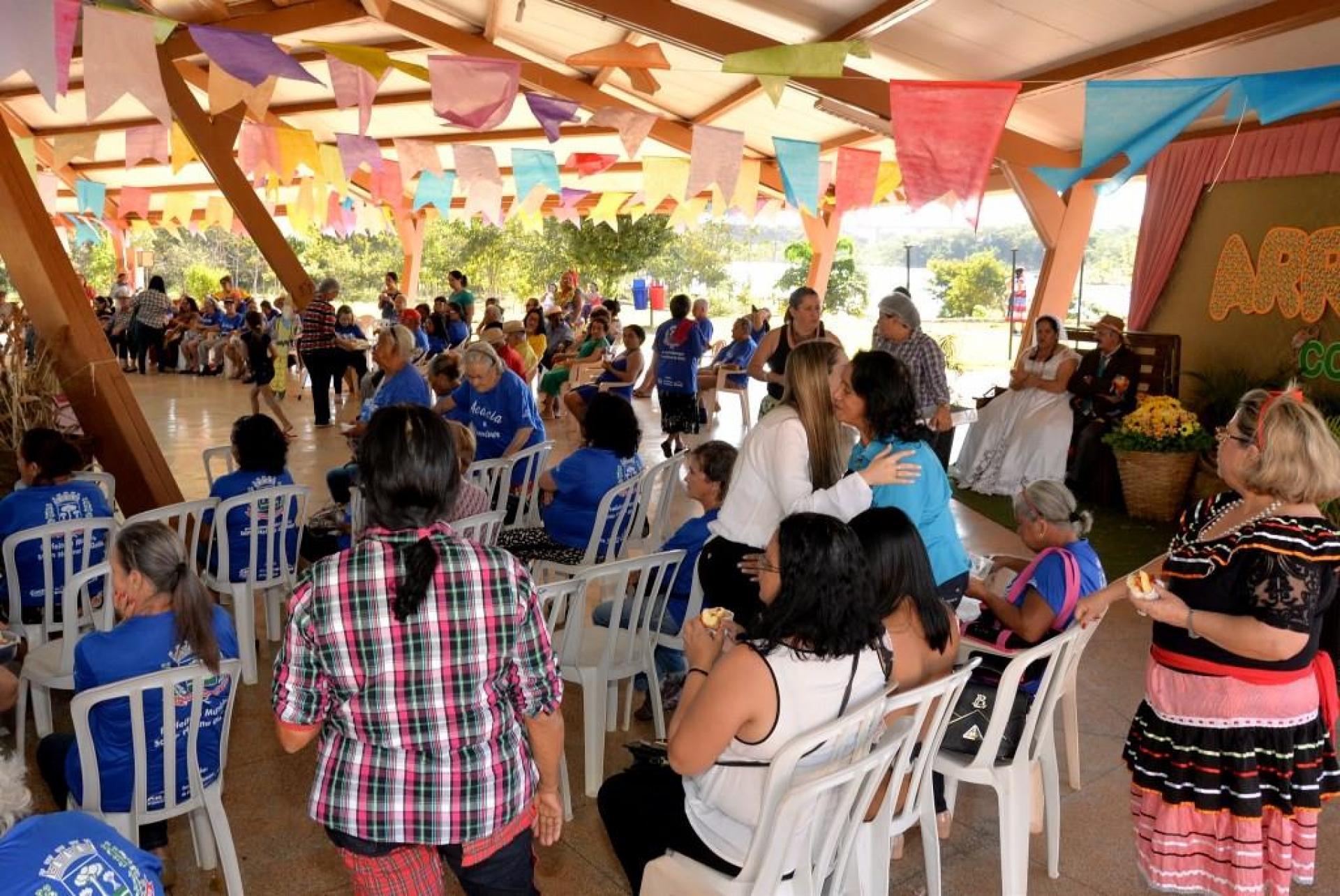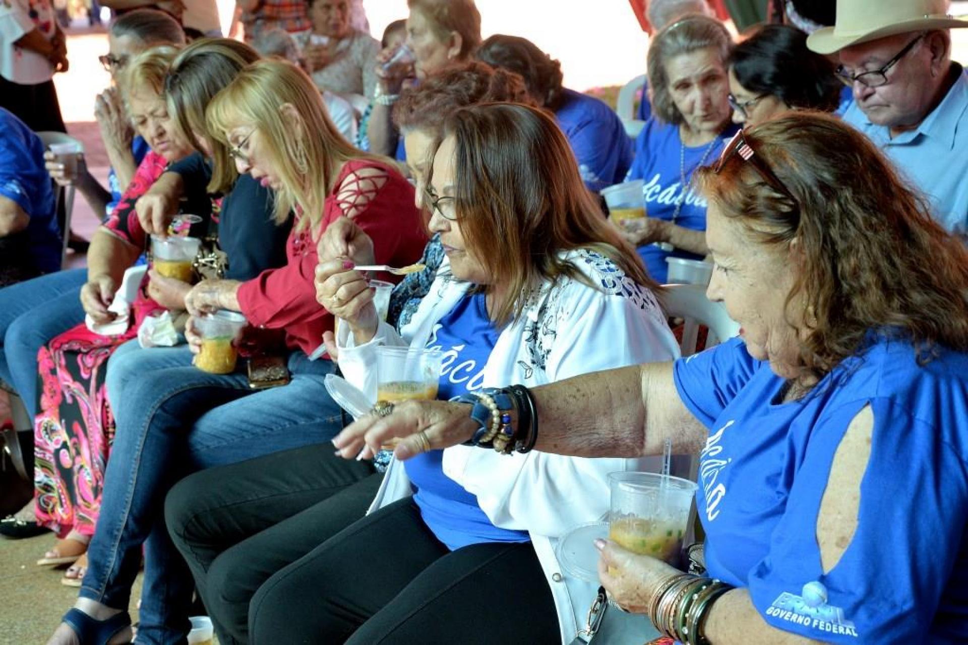 Os idosos do projeto Conviver ligado à Secretaria de Promoção Social participaram, na tarde desta quinta-feira (29) do Arraiá, que aconteceu no Parque Aquático Turmim Azevedo.