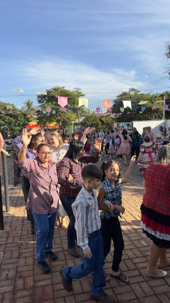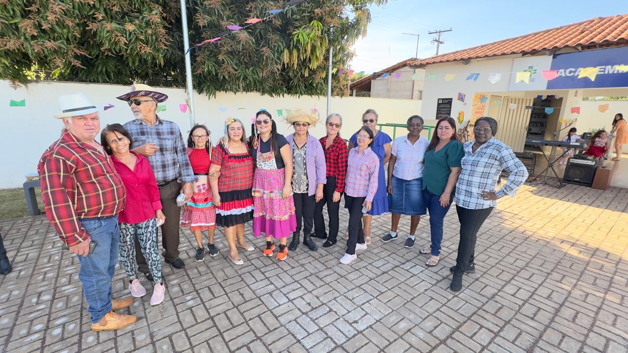 O evento foi promovido pela profissional de Educação Física Renata Nogueira, responsável pelas atividades físicas oferecidas na Academia de Saúde, e contou com uma programação especial que encantou os participantes. Um dos momentos mais aguardados foi a apresentação da quadrilha, com direito a figurino típico e coreografia ensaiada, arrancando aplausos de todos os presentes.