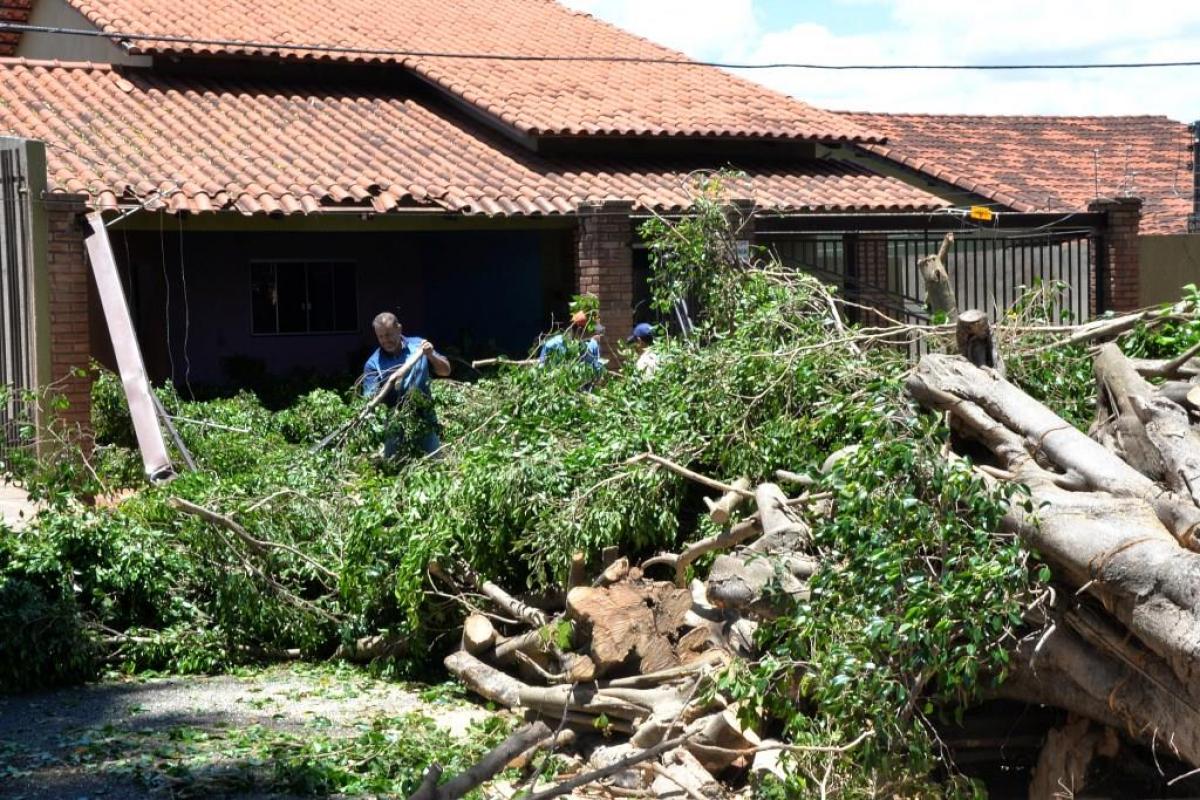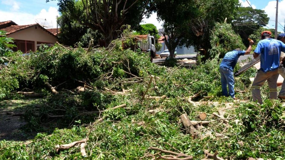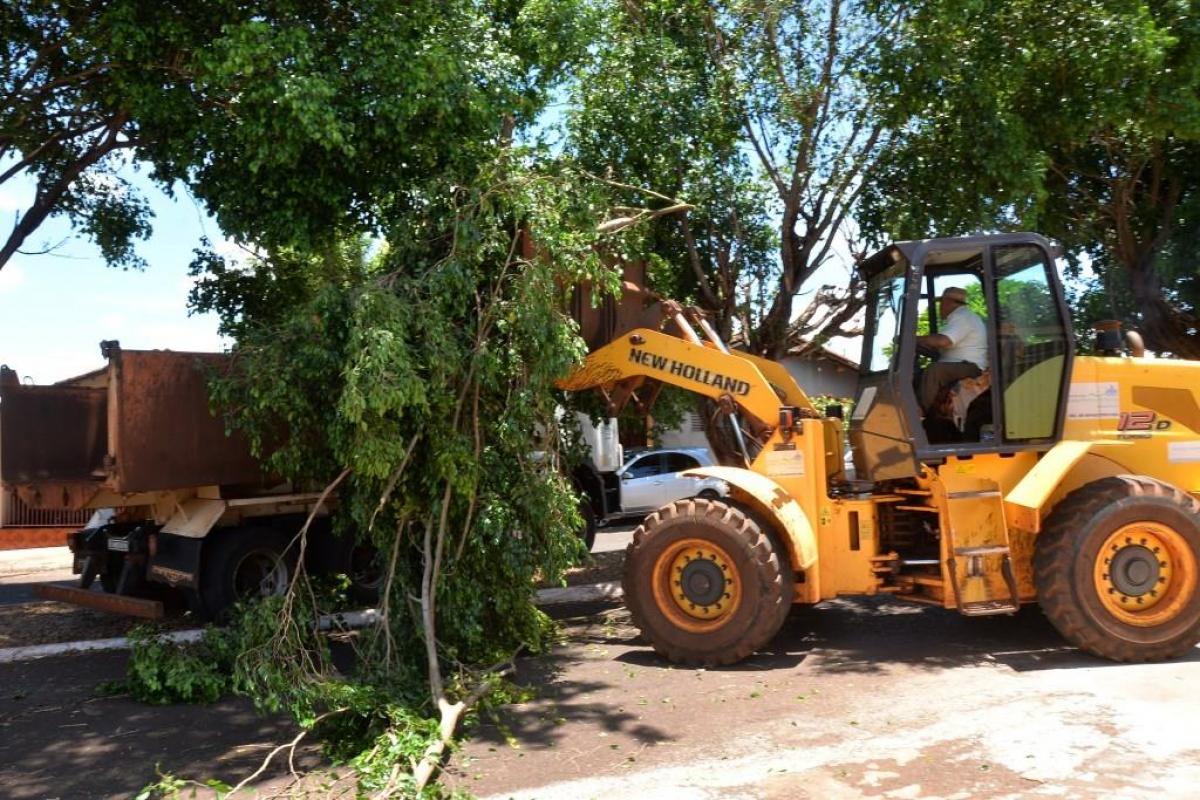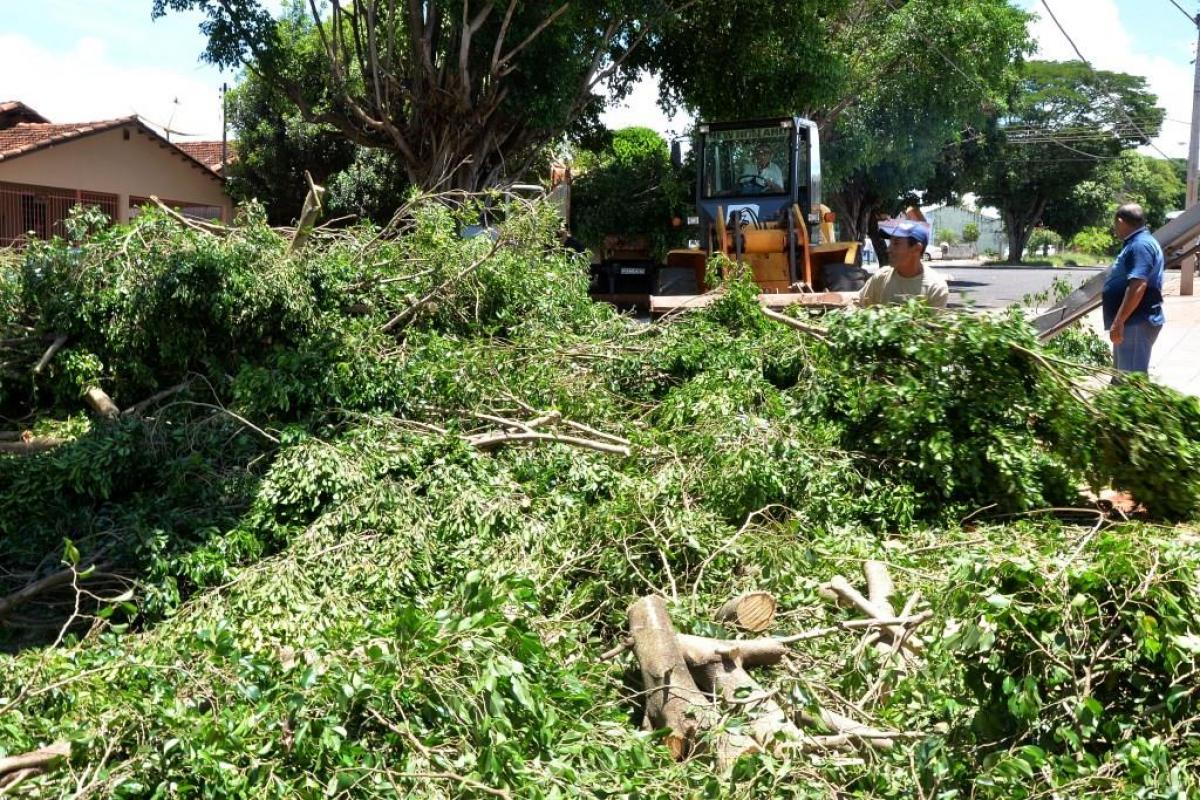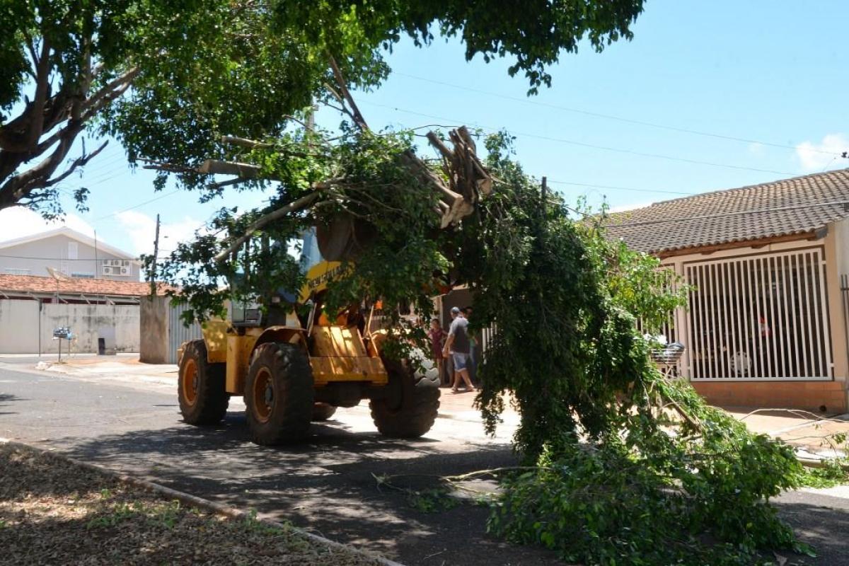 Árvores derrubadas pela chuvas estão sendo retiradas