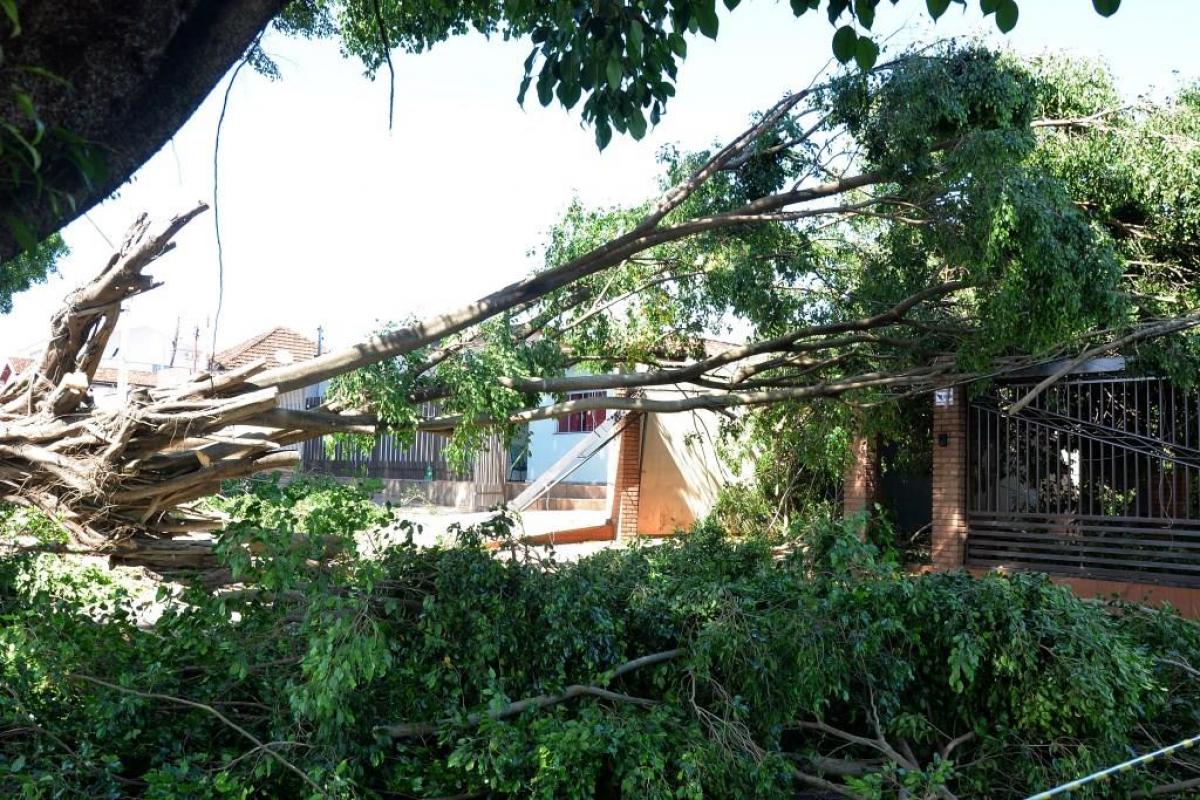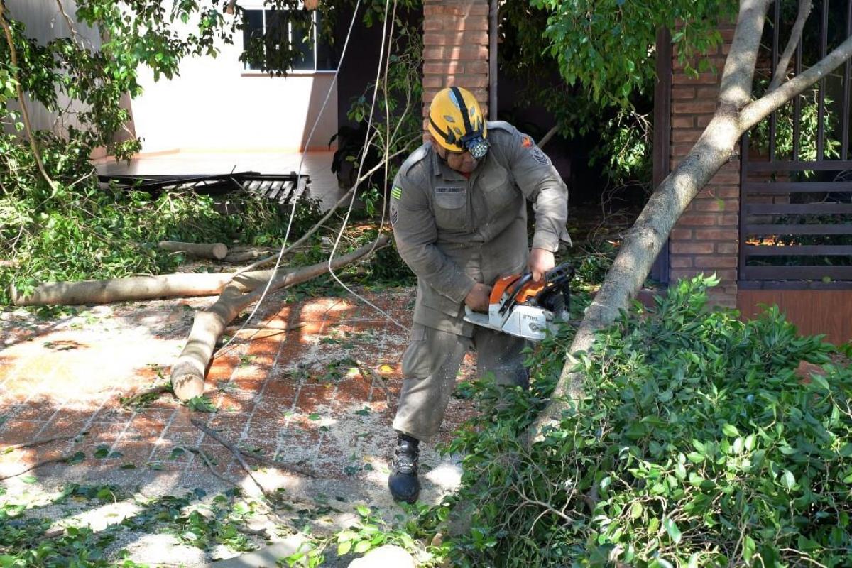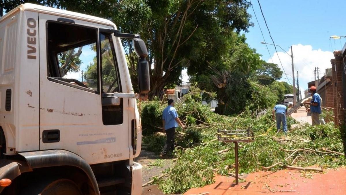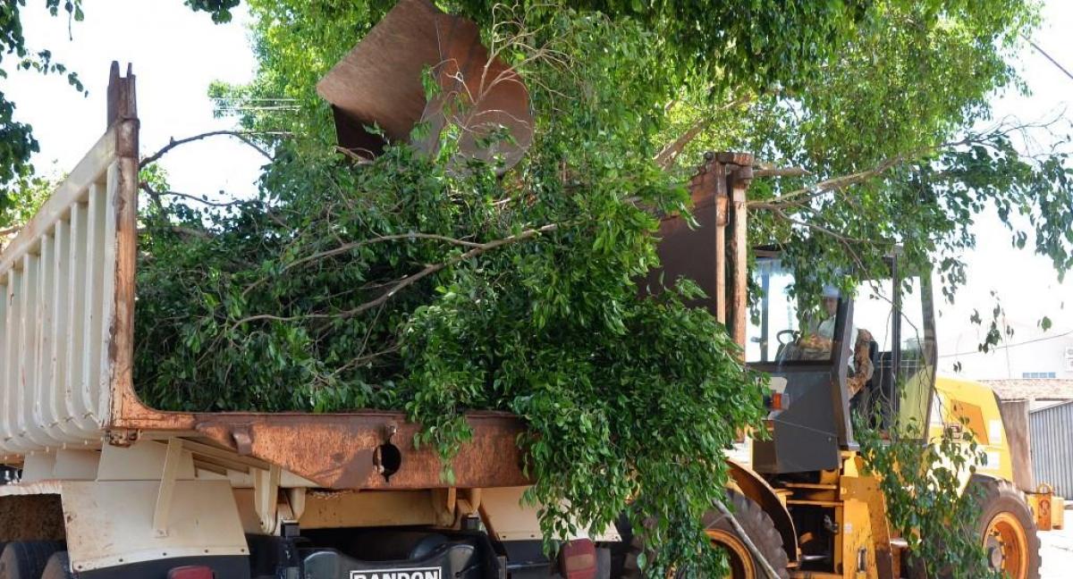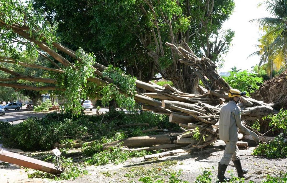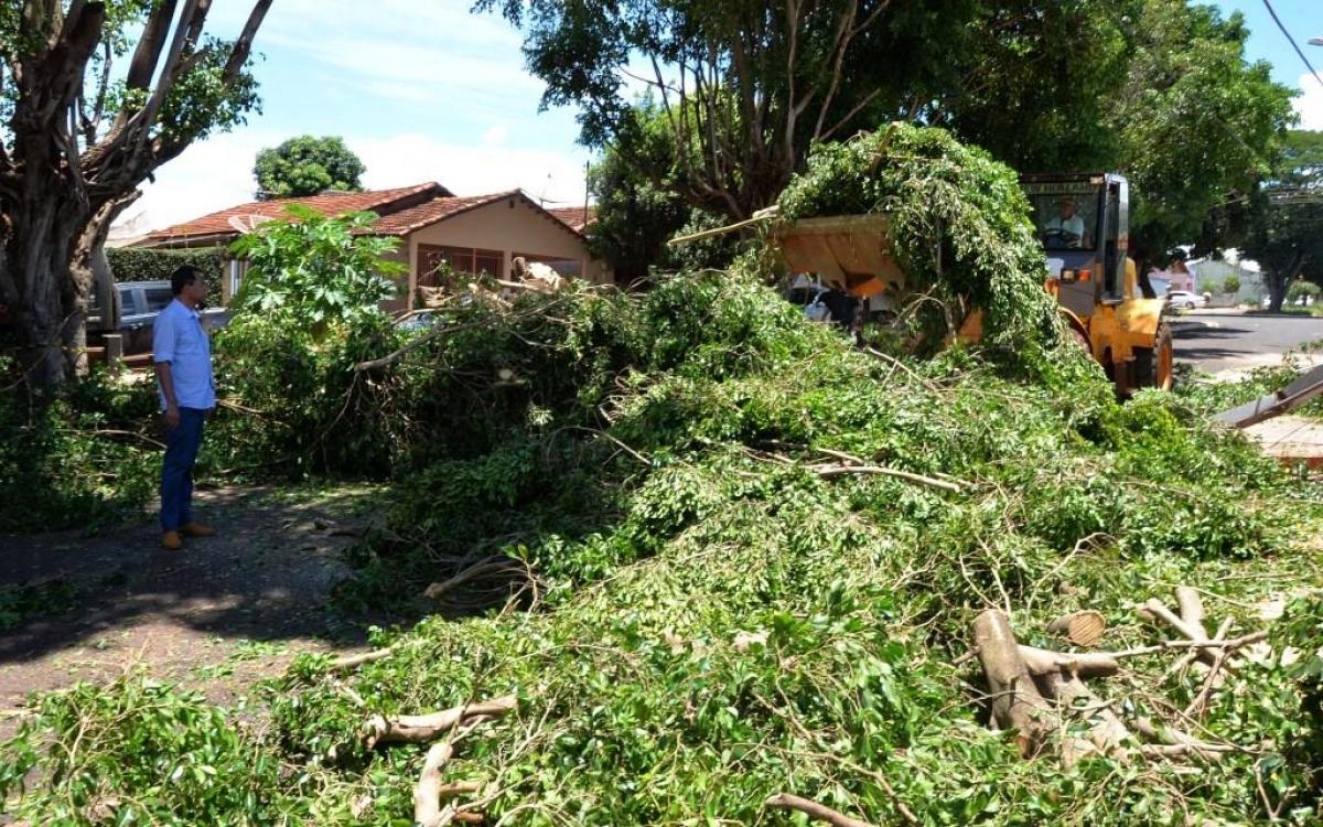 Árvores derrubadas pela chuvas estão sendo retiradas