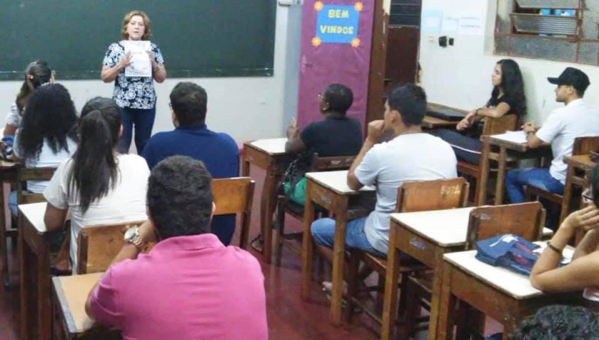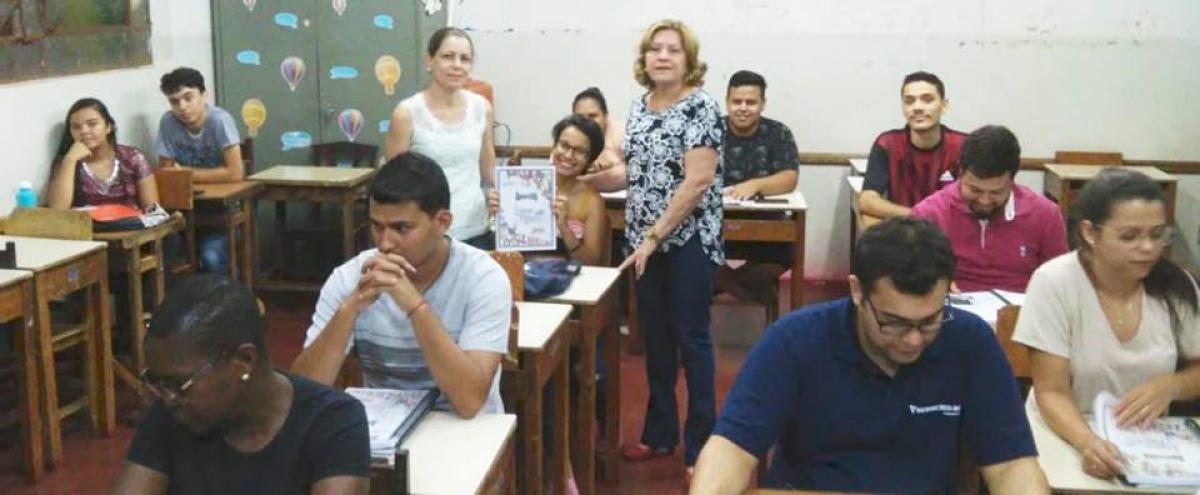 A Secretária de Educação e Cultura, profª Rosemary Elias Pinheiros Borges, a Coordenadora do Curso, profª Ana Cláudia e a profª dos idiomas, Estelamar da Costa Martins Gonçalves, deram as boas vindas aos alunos e distribuíram as apostilas.