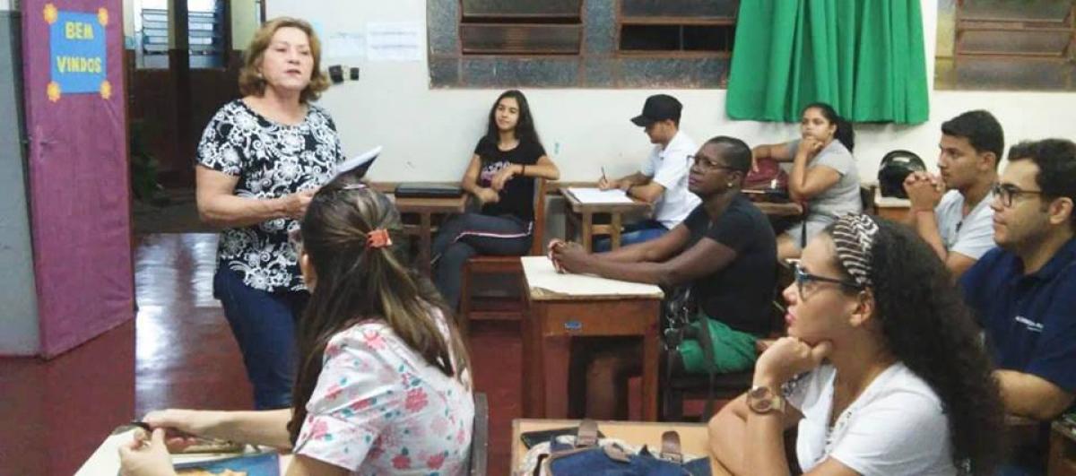 A Secretária de Educação e Cultura, profª Rosemary Elias Pinheiros Borges, a Coordenadora do Curso, profª Ana Cláudia e a profª dos idiomas, Estelamar da Costa Martins Gonçalves, deram as boas vindas aos alunos e distribuíram as apostilas.