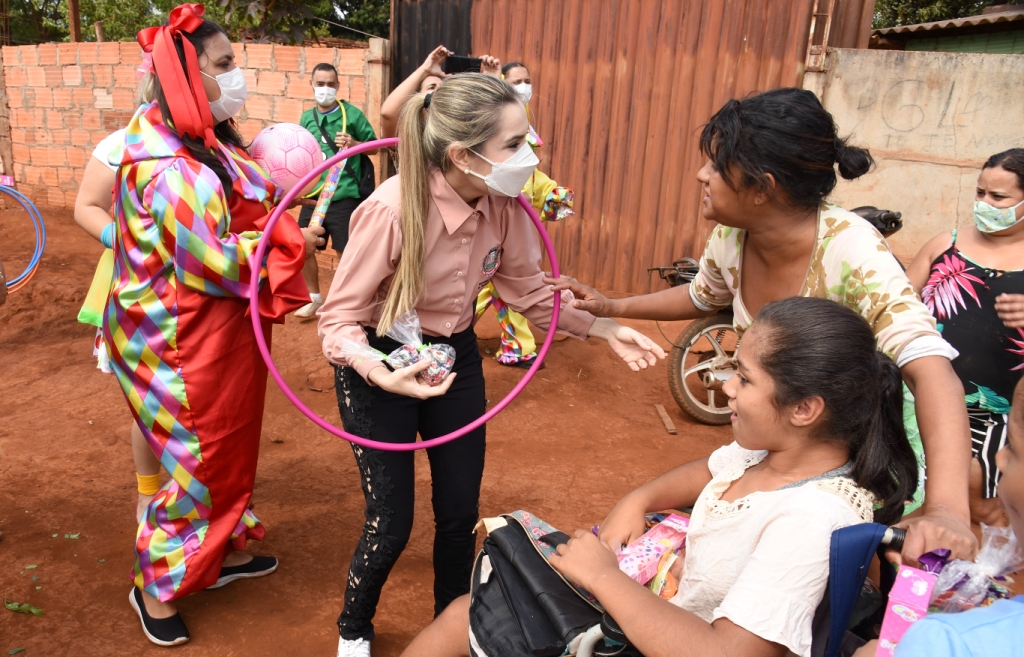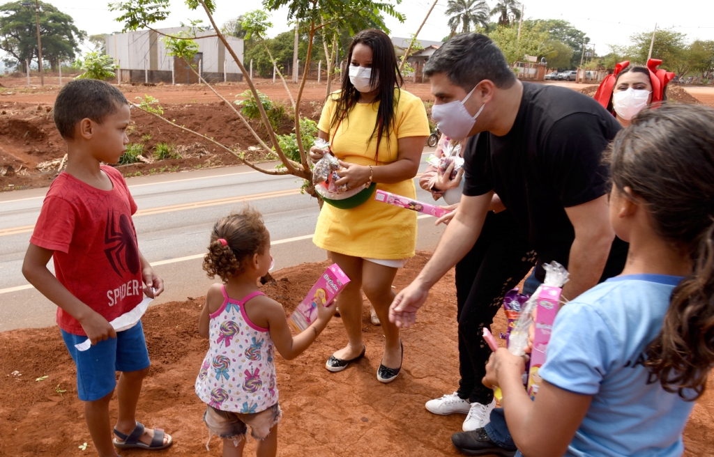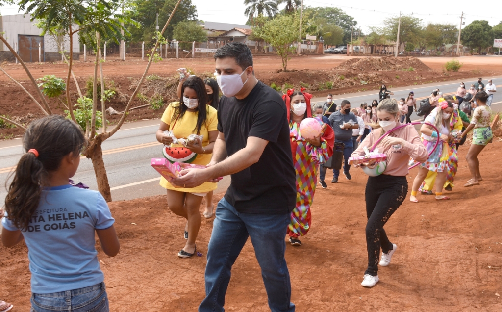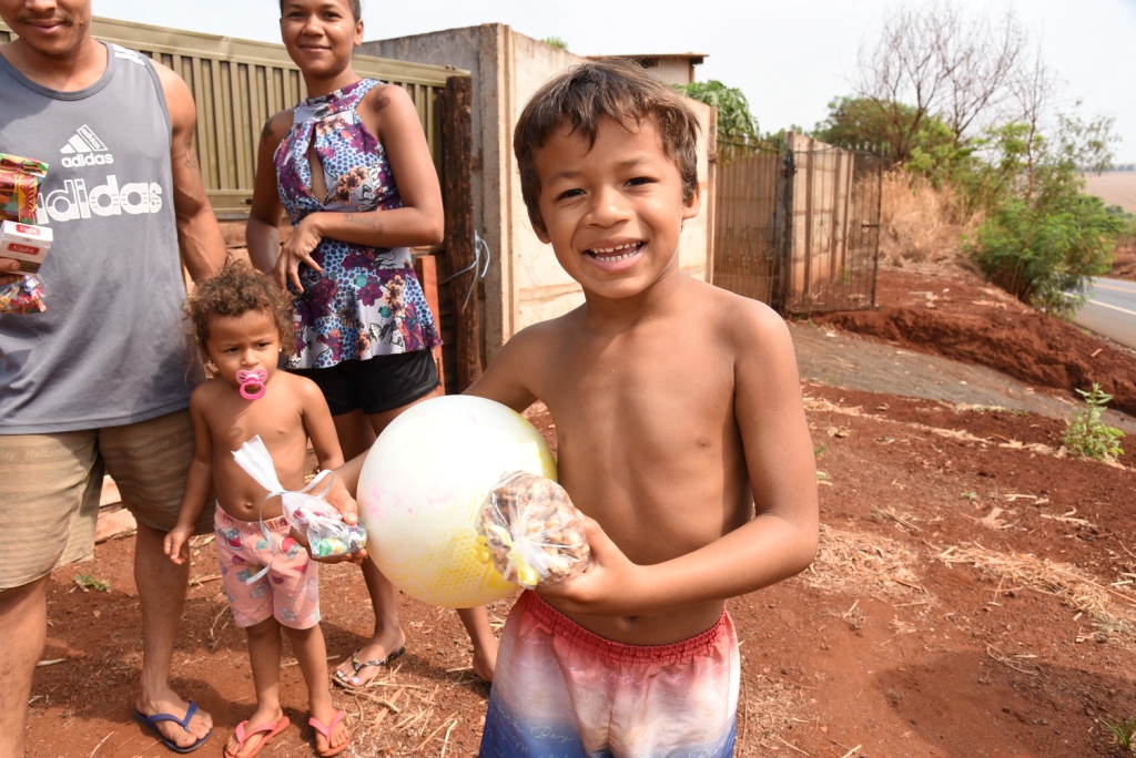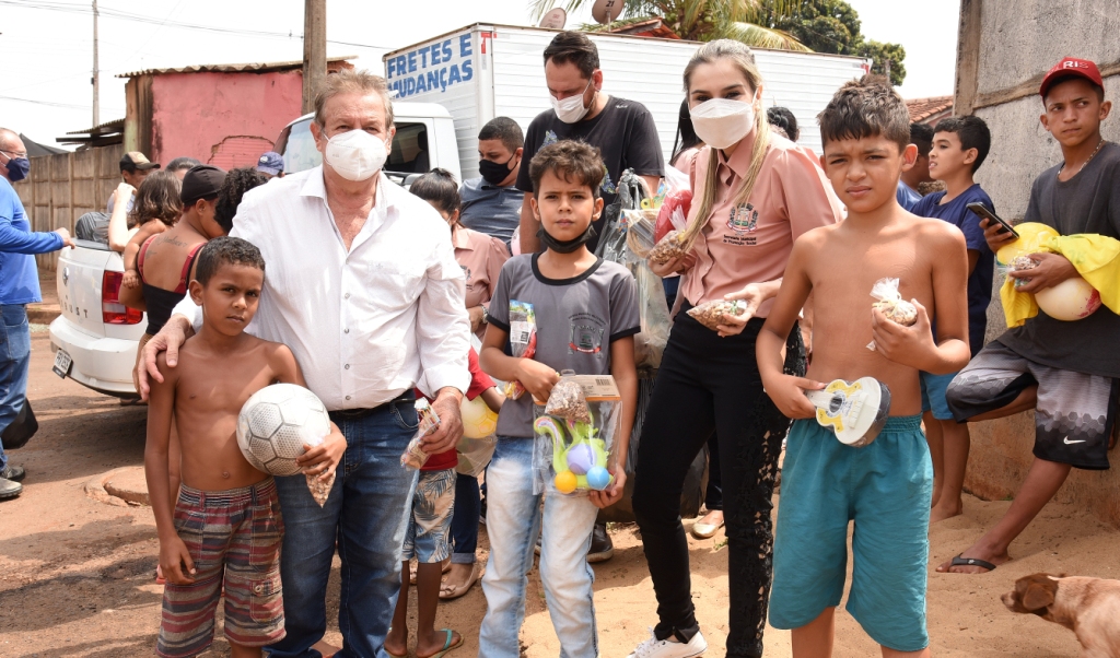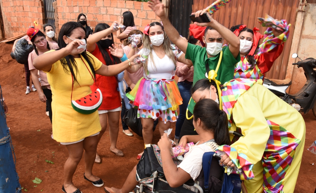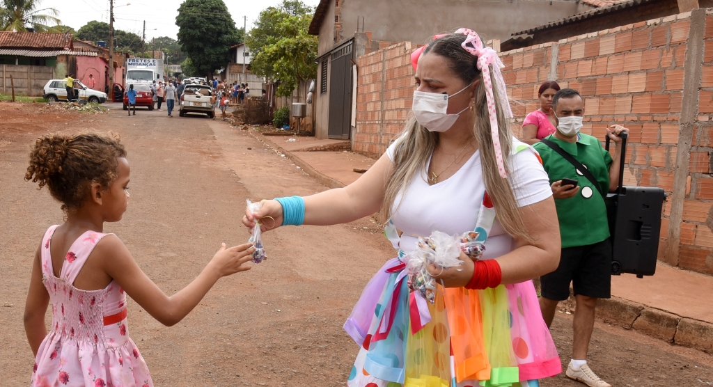 Foi feita a distribuição de bolas, bonecas, pipoca, balas, pirulitos, bambolês, instrumentos musicais, com muita música, alegria, diversão e até personagens caracterizados.