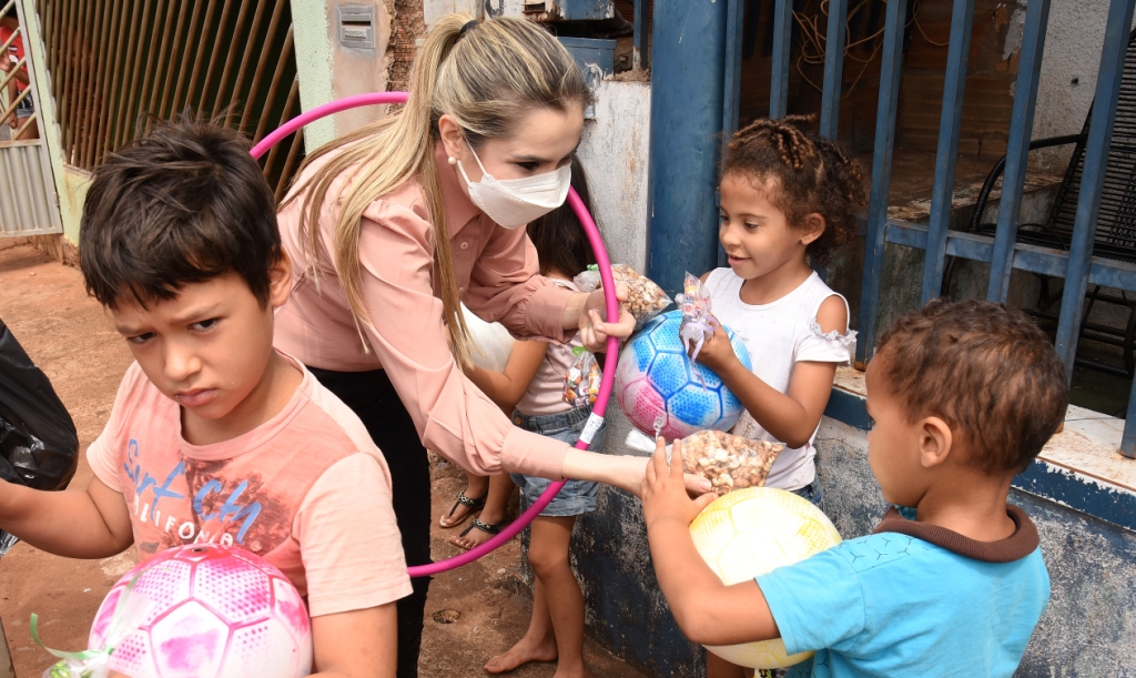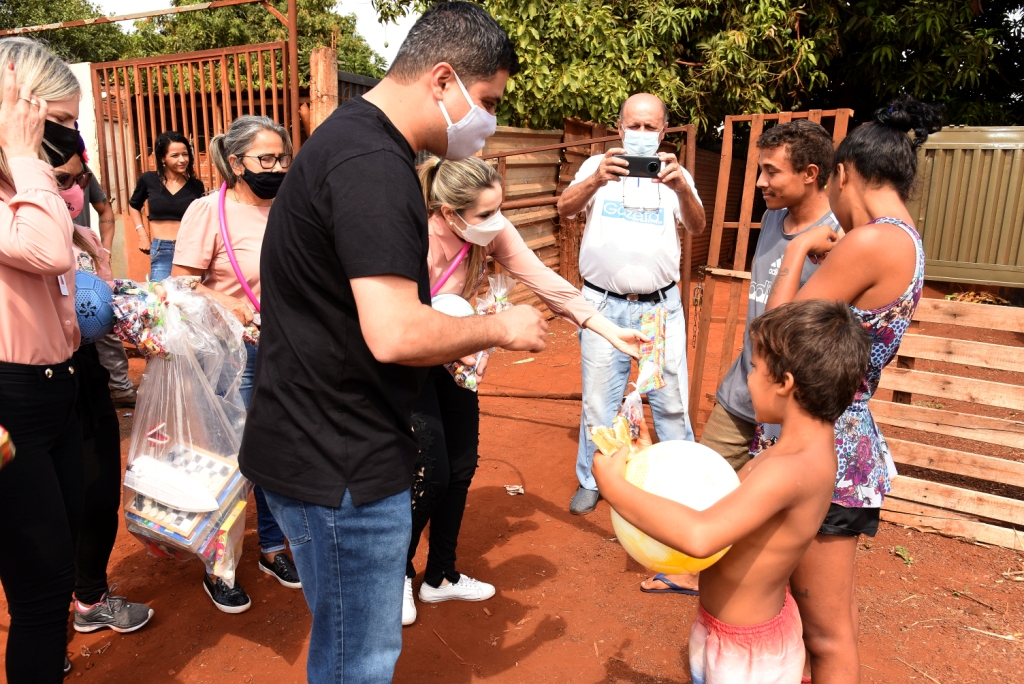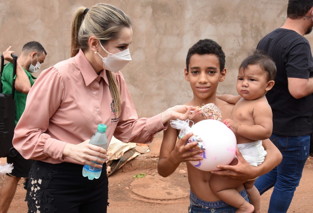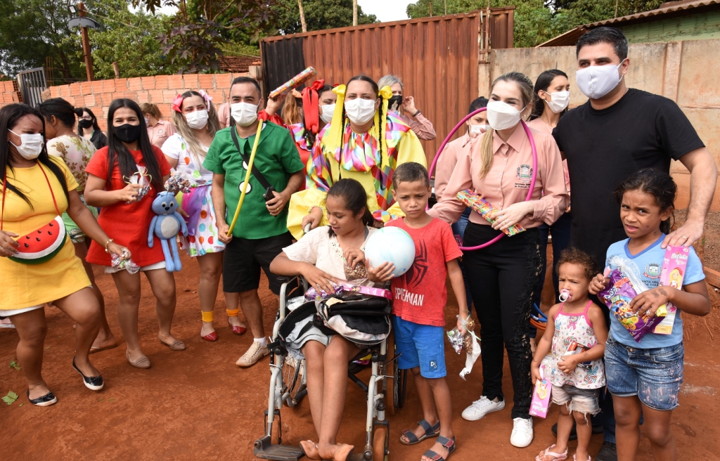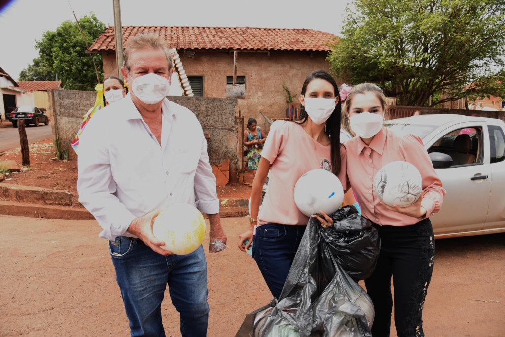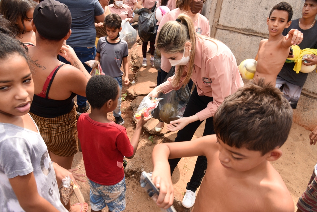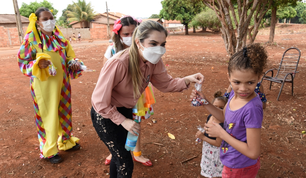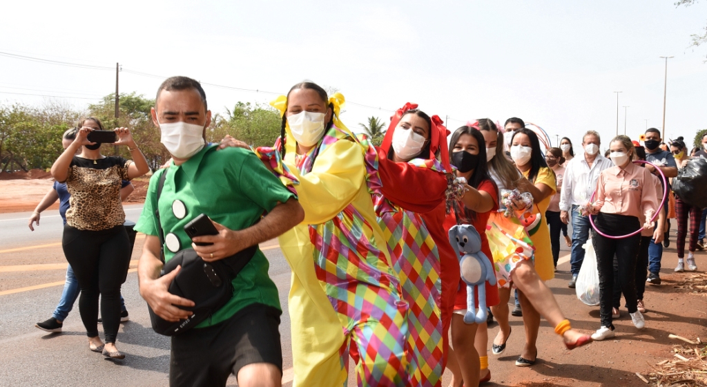 Foi feita a distribuição de bolas, bonecas, pipoca, balas, pirulitos, bambolês, instrumentos musicais, com muita música, alegria, diversão e até personagens caracterizados.