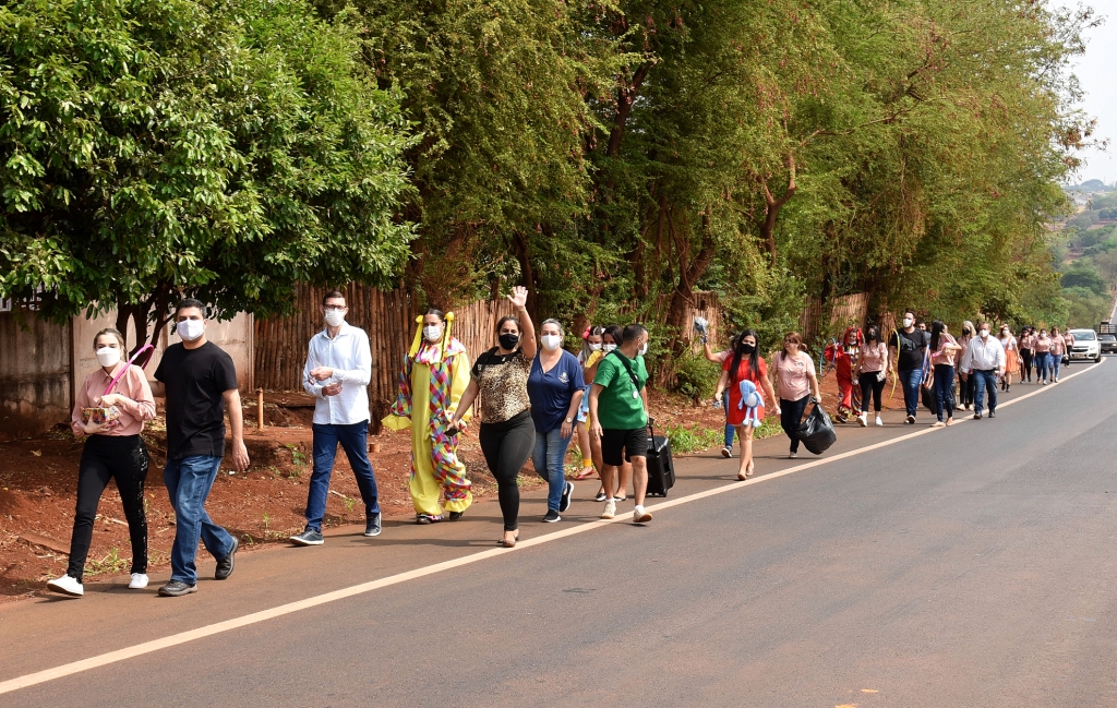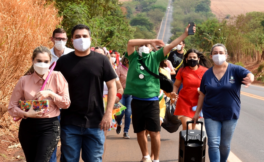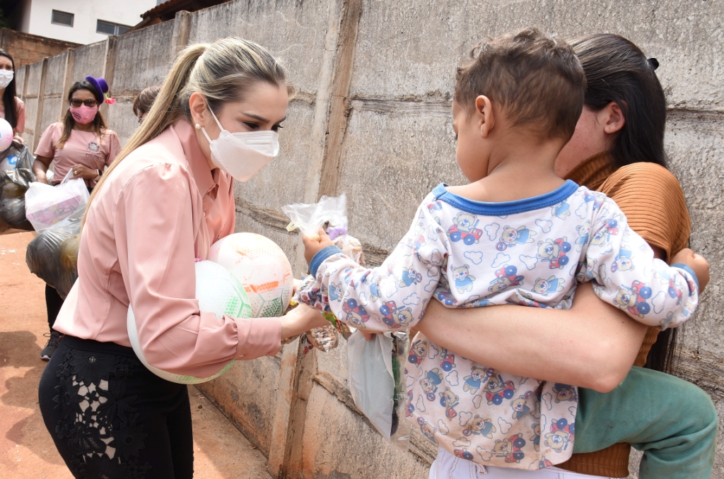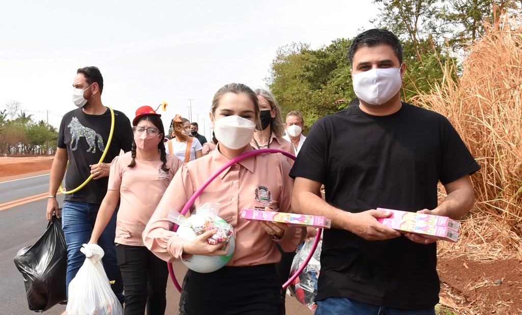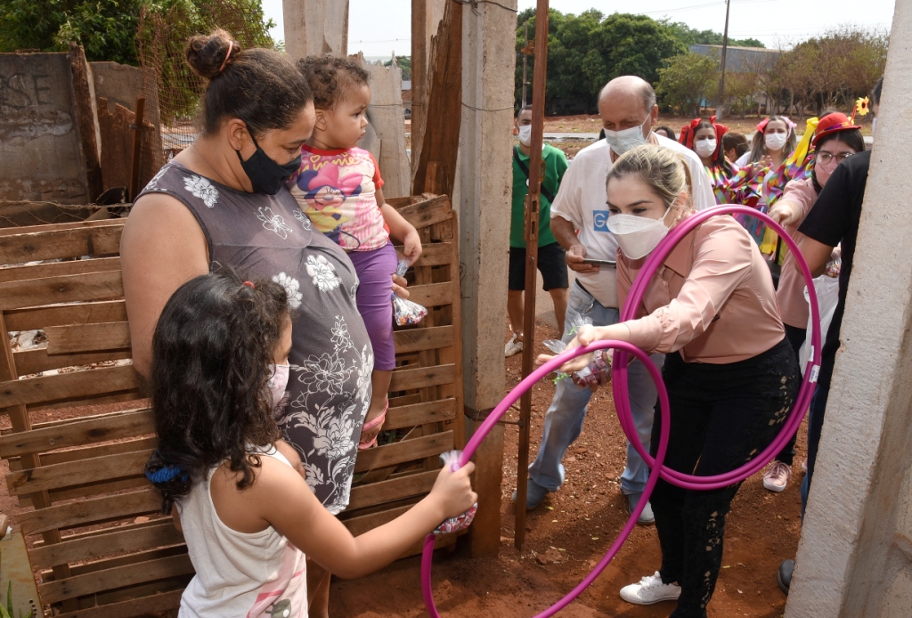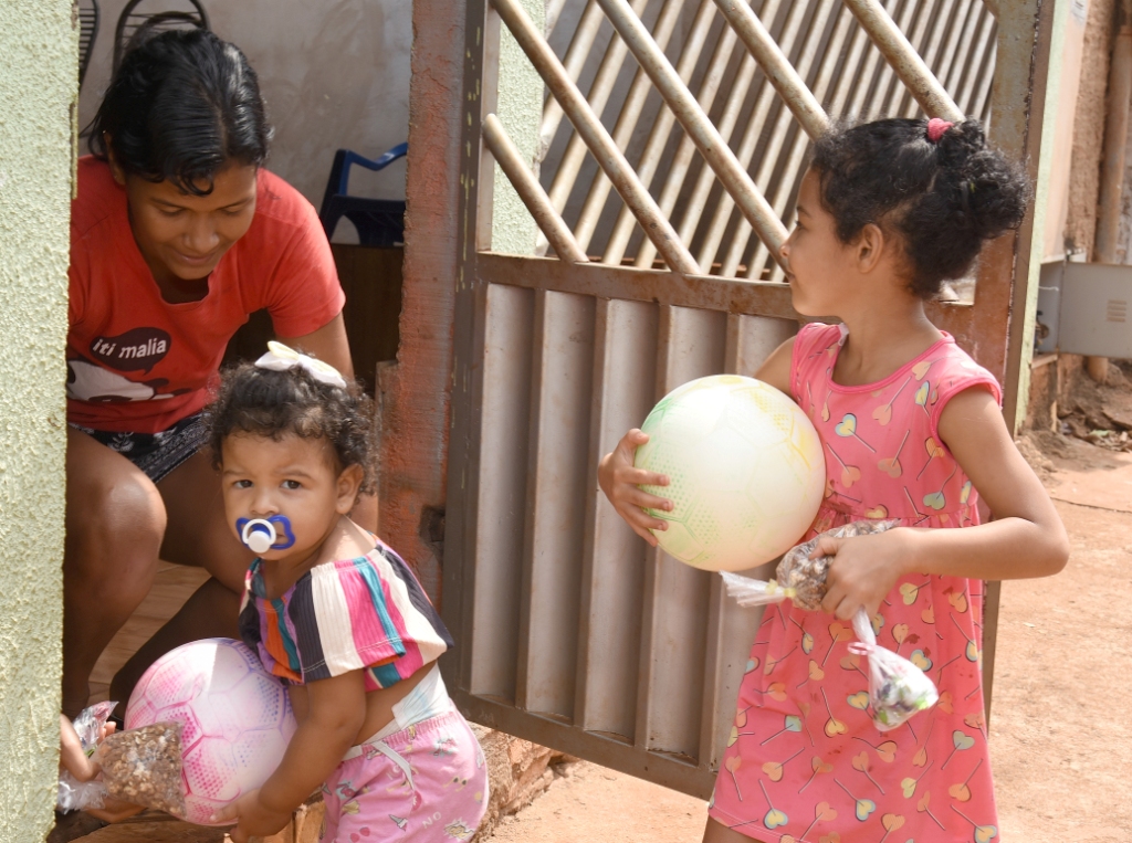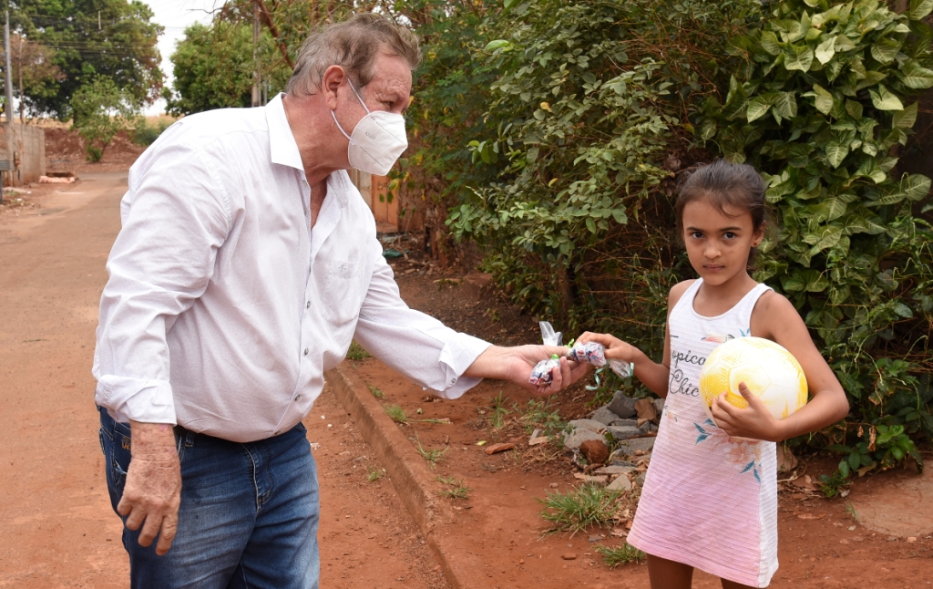 Foi feita a distribuição de bolas, bonecas, pipoca, balas, pirulitos, bambolês, instrumentos musicais, com muita música, alegria, diversão e até personagens caracterizados.
