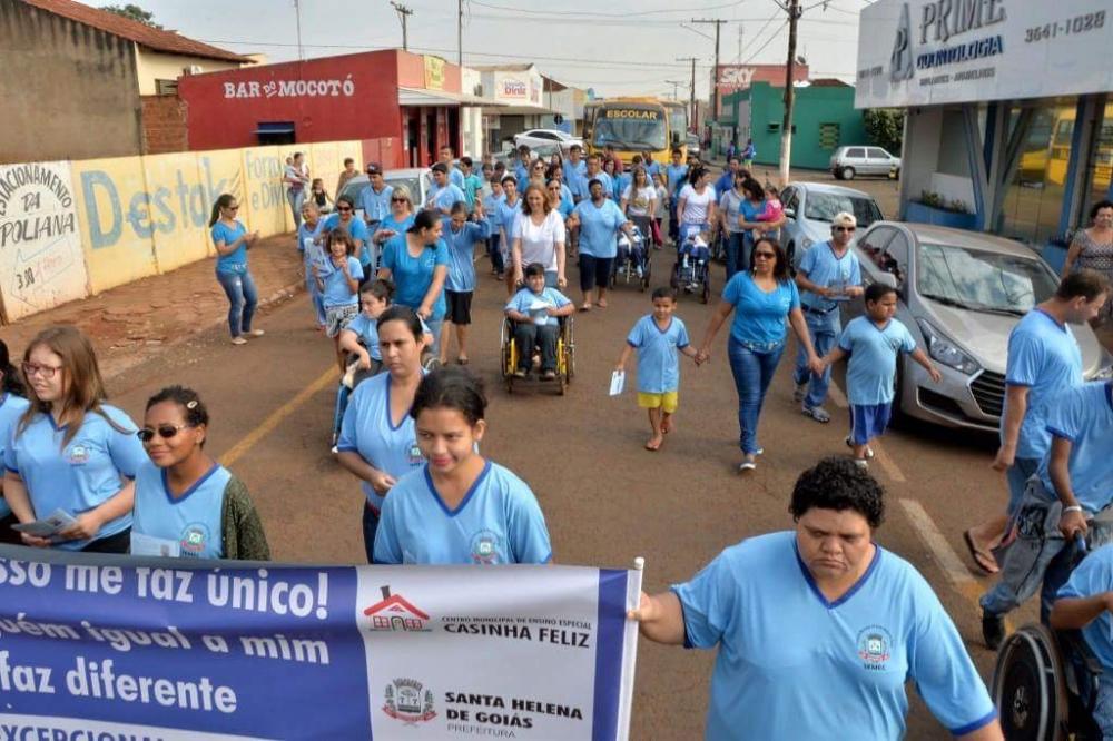 A programação está vasta. E hoje pela manhã, os alunos e equipe, toda uniformizada, realizaram uma caminhada de conscientização pelo Centro da cidade, com músicas e distribuição de panfletos, que começou nas proximidades da Prefeitura Municipal de Santa Helena de Goiás e foi encerrada nas dependências das Secretarias de Promoção Social e de Educação e Cultura (Semec), com presença da Primeira Dama e Secretária de Promoção Social, Drª Renata Araújo Asmar Rodrigues, e sua equipe.