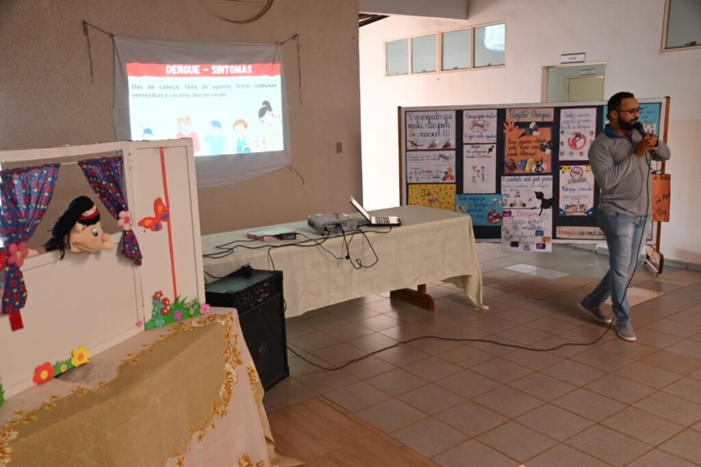 A manhã de conhecimento, com palestras e teatro promovidos pela Secretaria de Saúde e pela Secretaria de Educação, proporcionou informações sobre como prevenir o foco do mosquito da dengue, mantendo o ambiente limpo e livre de acúmulo de água em recipientes.