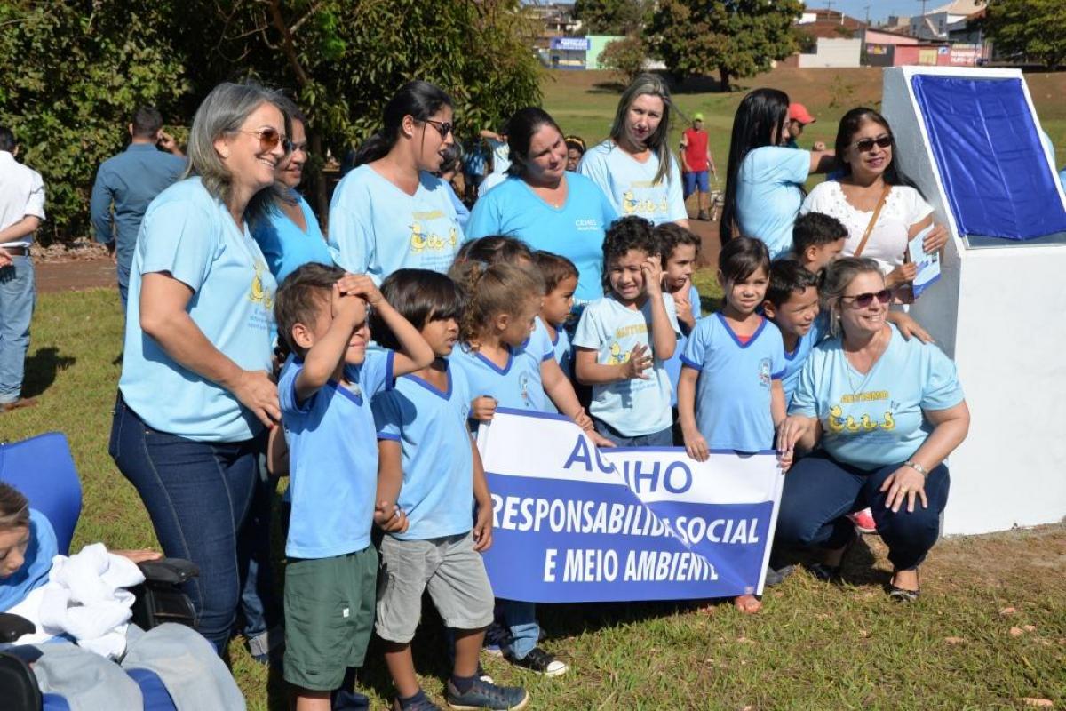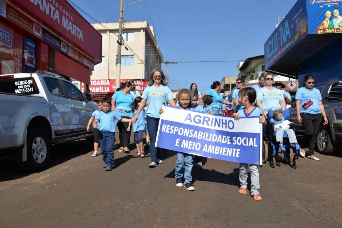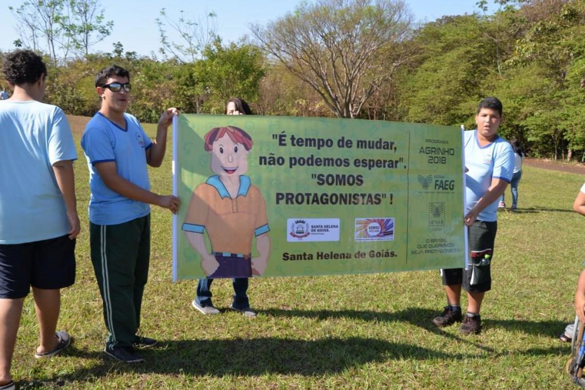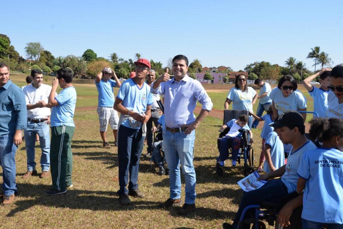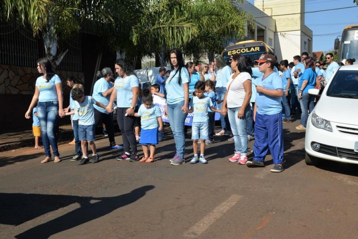 E hoje pela manhã, os alunos e equipe, toda uniformizada, realizaram uma caminhada de conscientização pelo Centro da cidade, com músicas e distribuição de panfletos, que começou nas proximidades da Prefeitura Municipal de Santa Helena de Goiás e foi encerrada no Parque Ecológico José Procópio (Espelho D’Água), com presença do Prefeito Municipal, Dr. João Alberto Vieira Rodrigues, da Primeira Dama e Secretária de Promoção Social, Drª Renata Araújo Asmar Rodrigues, demais Secretários e Superintendentes, Vereador Renato, pais e acompanhantes.
