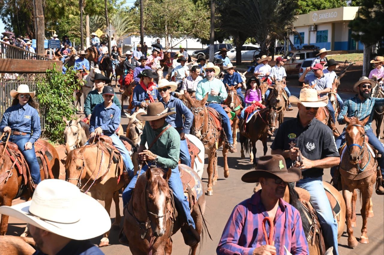 Dezenas de comitivas, peões de toda a região e a população participaram da cavalgada que percorreu as ruas de nossa cidade. A Rainha do Rodeio, a Rainha da Festa e a Garota Nitrobalada participaram da cavalgada, que terminou com a Queima do Alho ao som do Trio Coração do Brasil e do DJ Mateus Souza.