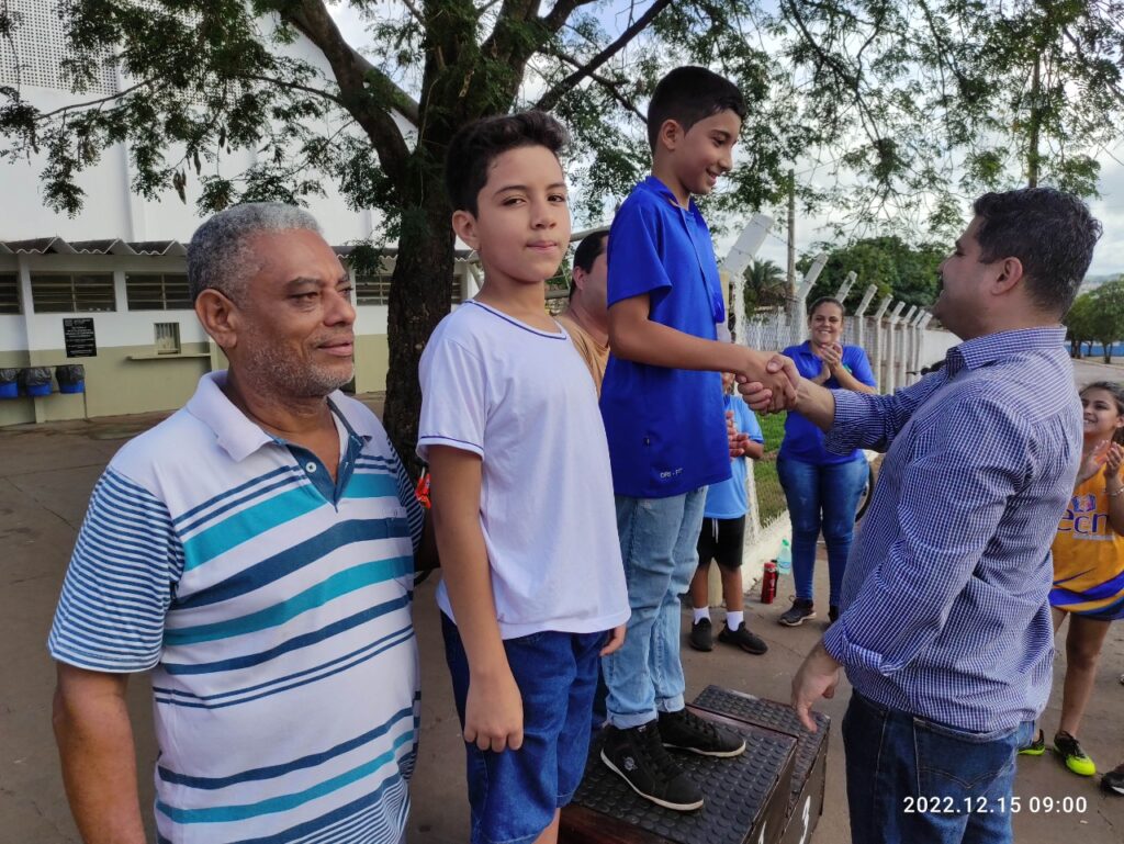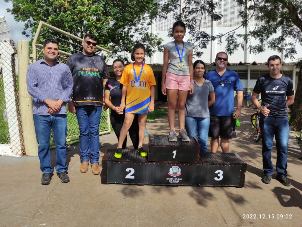 Com a participação do Prefeito Municipal Dr. João Alberto e o superintendente Marcos Faria, aconteceu na manhã de hoje 15/12 enfrente o Ginásio Sinhô Parreira a prova final dos Jogos Estudantis de Santa Helena e entrega de medalhas na modalidade ciclismo, confira abaixo os ganhadores.