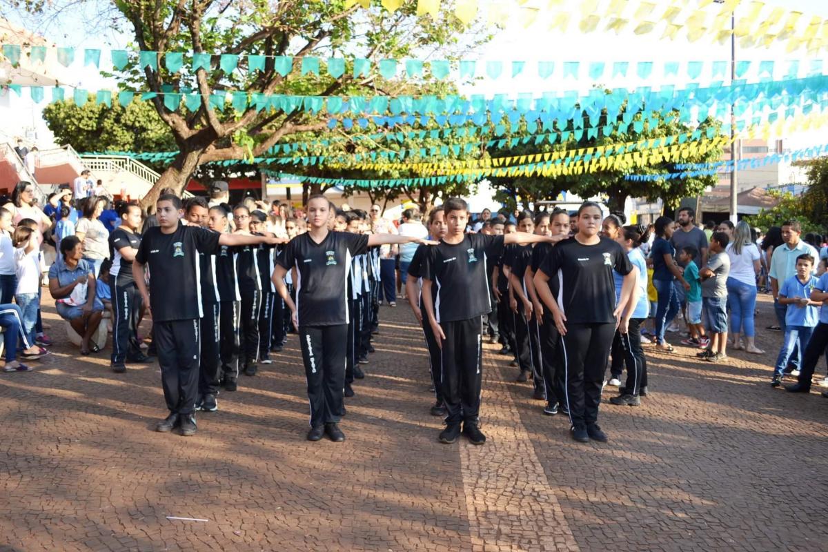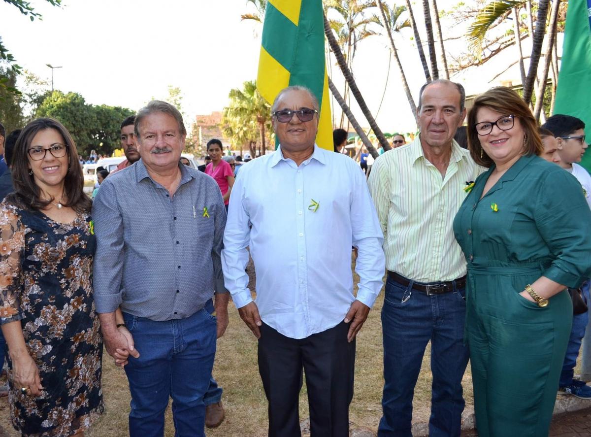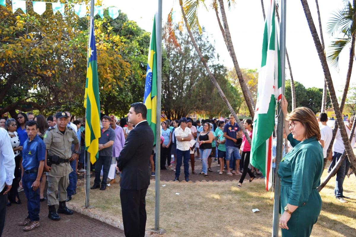 Primeiramente, houve o hasteamento das bandeiras (Brasil – Prefeito Dr. João Alberto, Estado – PM Sub-Tenente Neres e Município – Vereadora Mª Madalena) acompanhado pelo Hino Nacional, seguidos pelos hinos de Goiás e da Independência.