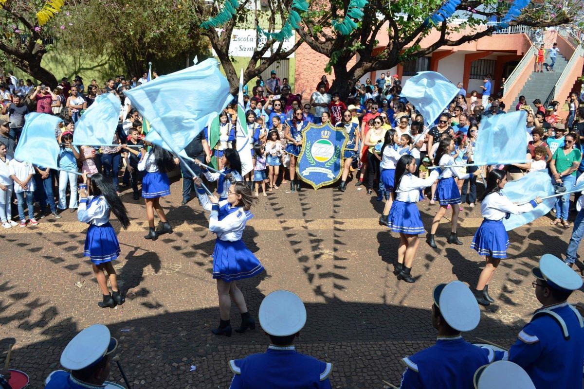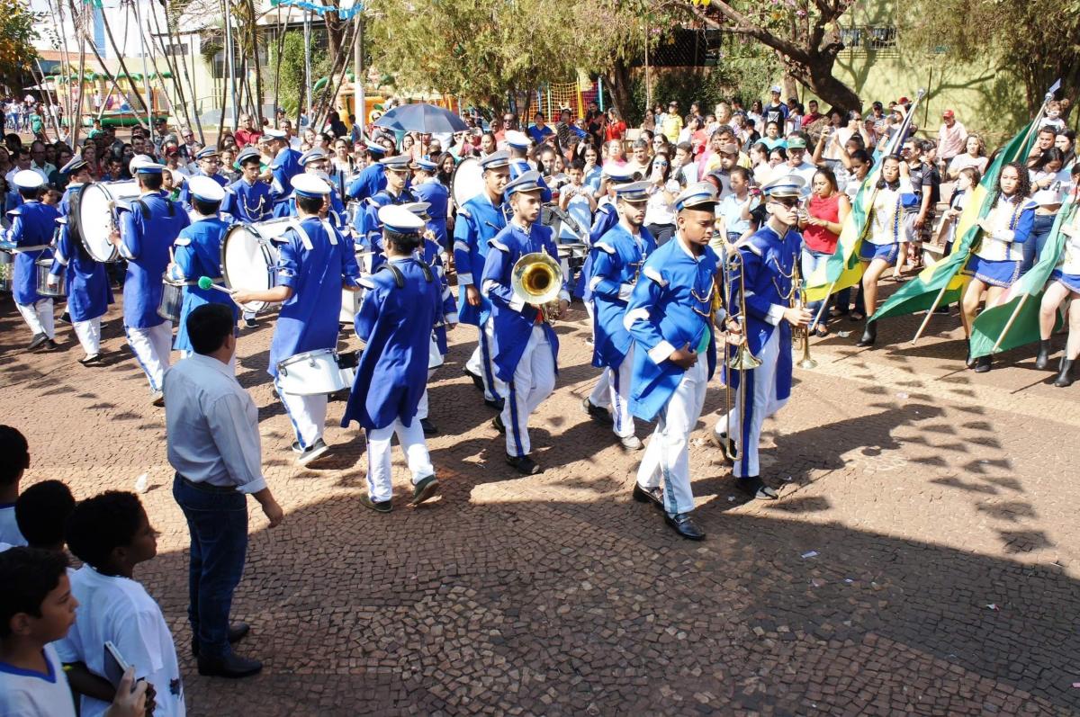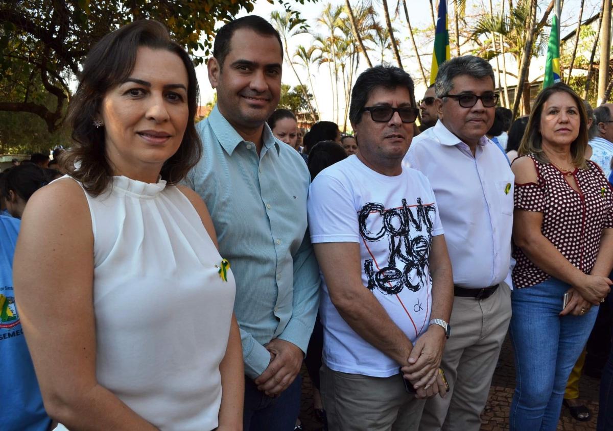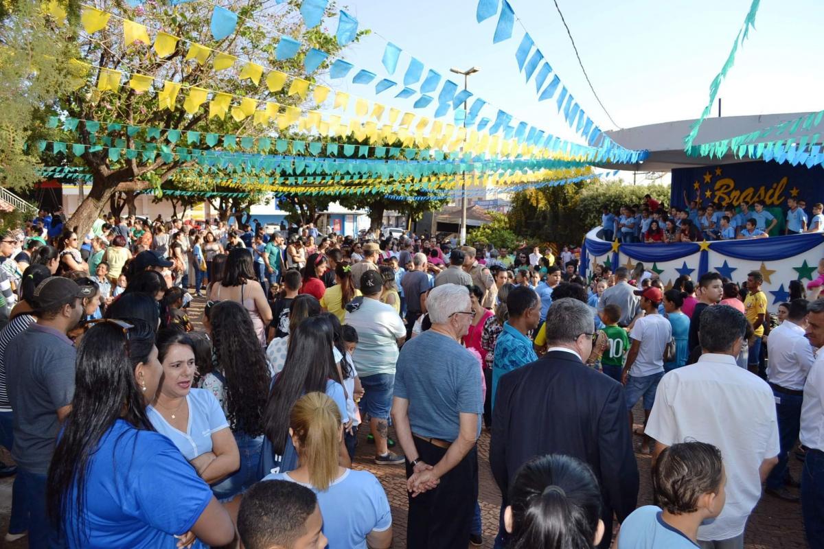 Primeiramente, houve o hasteamento das bandeiras (Brasil – Prefeito Dr. João Alberto, Estado – PM Sub-Tenente Neres e Município – Vereadora Mª Madalena) acompanhado pelo Hino Nacional, seguidos pelos hinos de Goiás e da Independência.