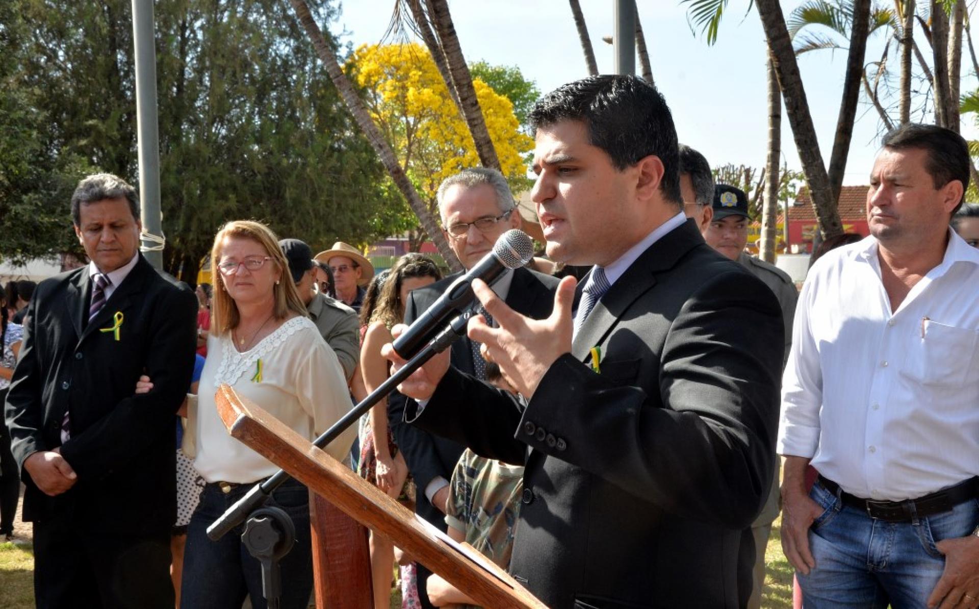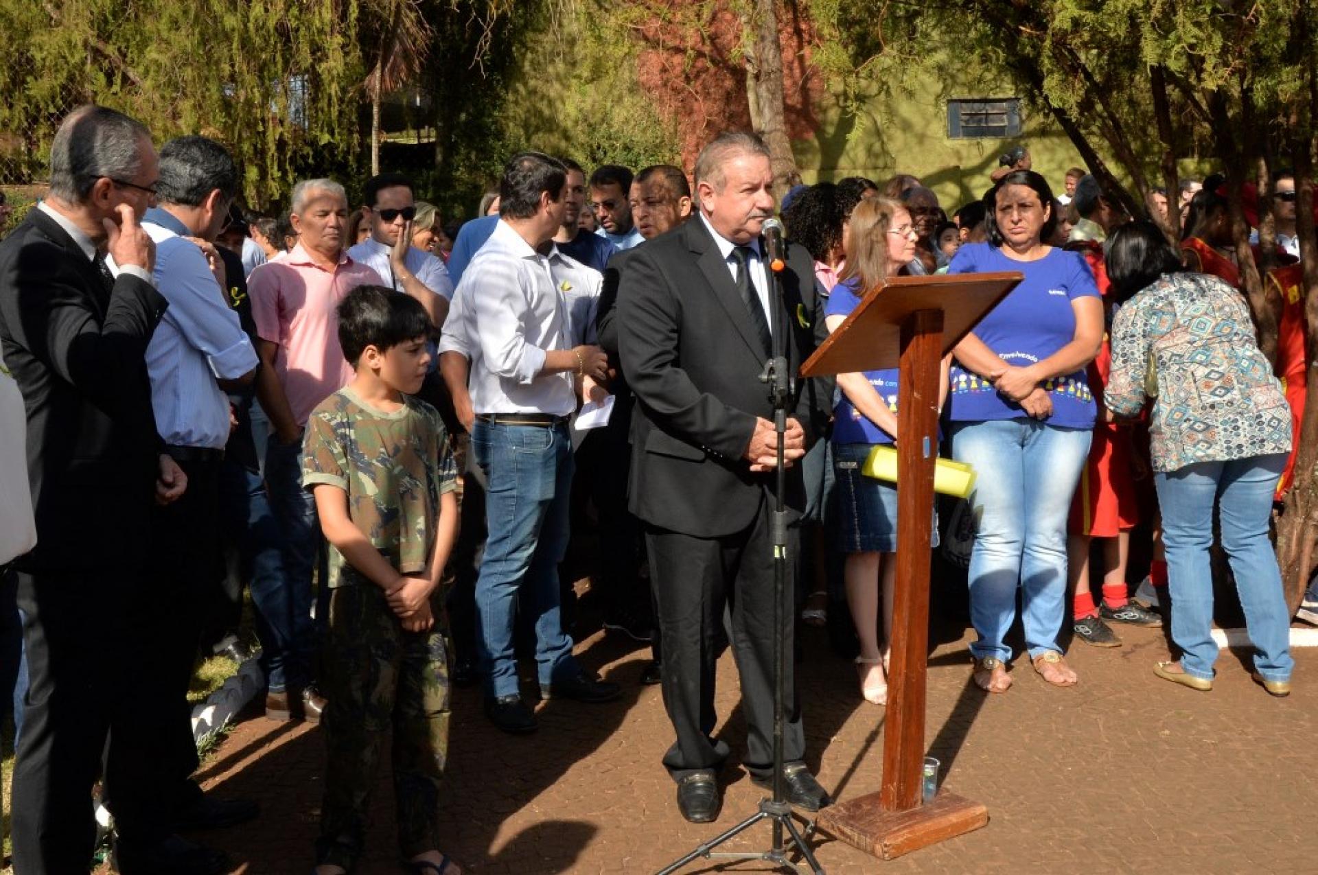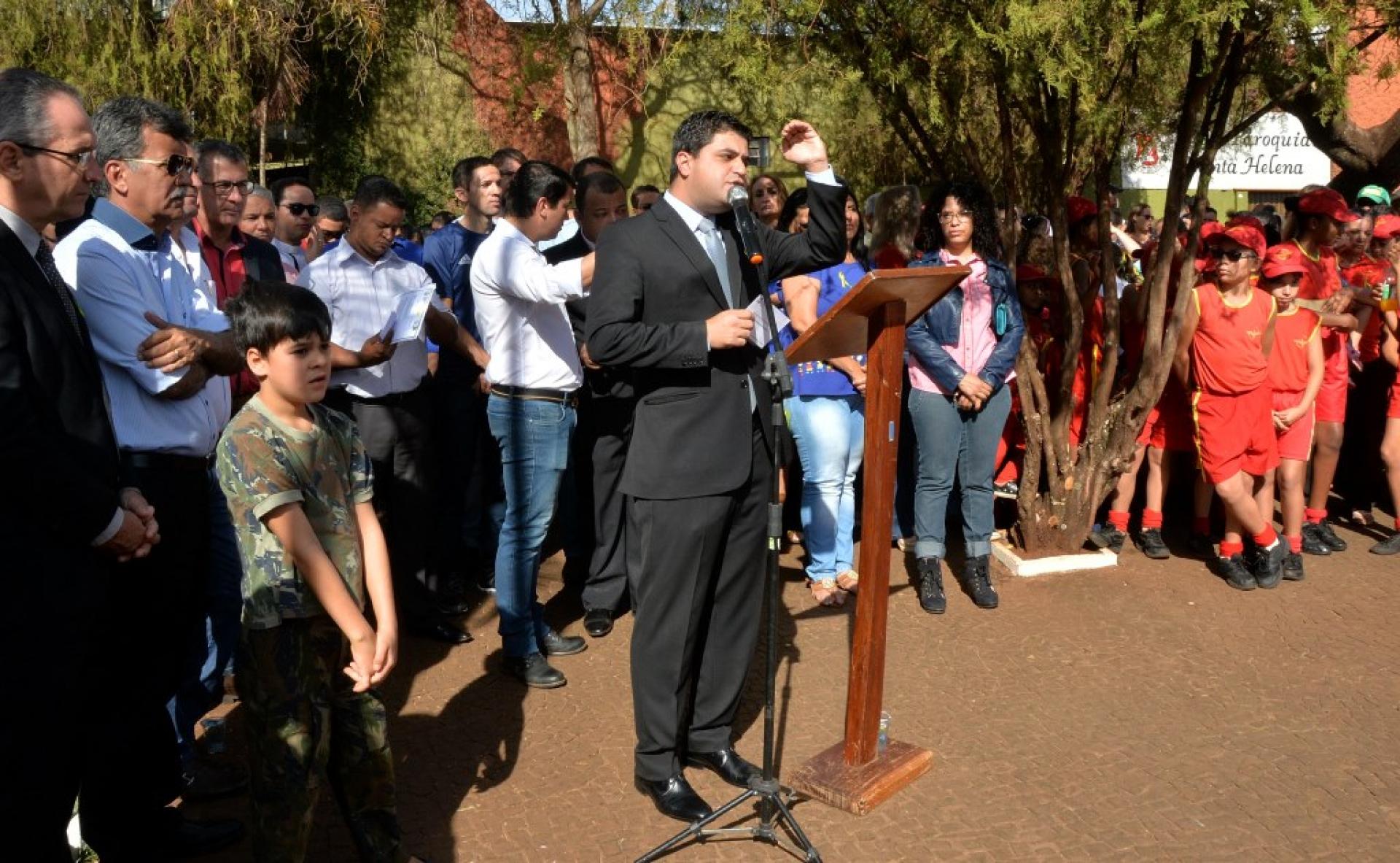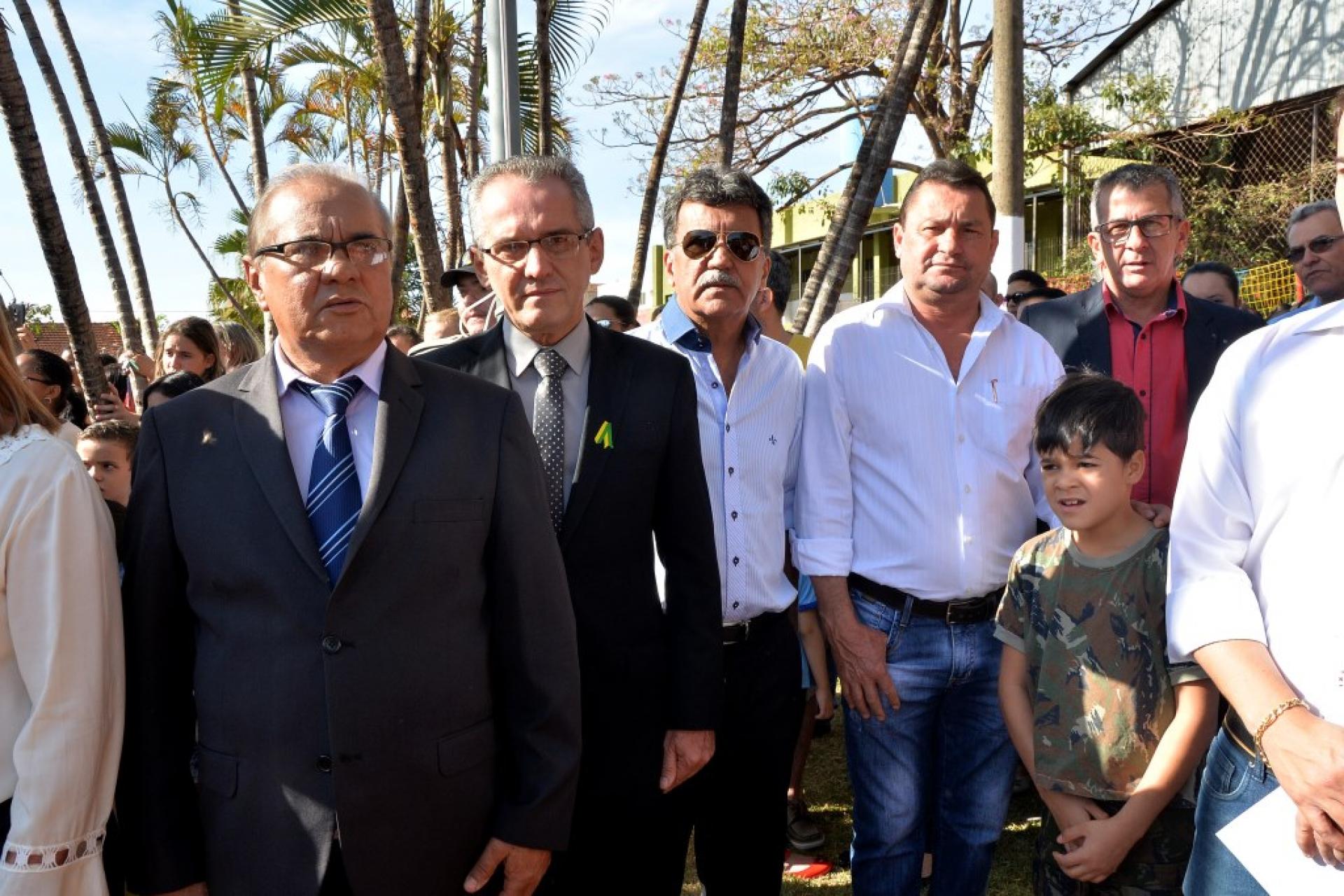 Já Dr. João Alberto, iniciou seu discurso parabenizando a PM pela segurança prestada ao município e aos Bombeiros pelo excelente trabalho prestado, principalmente, ao combate às queimadas que assolam nossa região nesta época. Incluindo também em suas palavras “Bom dia a todos. Cumprimento em especial, estas crianças que nos despertam o espírito cívico e por encher este local e também trazer os representantes de todas as classes. Muito me enche de orgulho, por me lembrar de que também já estive aqui no lugar de vocês. É isso que se espera de uma coletividade, de uma cidade. É assim que se implanta a pátria que representamos e que queremos. Minhas congratulações e agradecimentos vão também a todos os professores que desempenham o papel fundamental do ensino e hoje estamos num bom patamar e apresentando resultados de referência. Também a todos os funcionários e colaboradores, vejo que foram muito bem escolhidos e trabalham com compromisso para com a população, demonstrando que servimos o município e o Brasil. É fundamental que edificamos com consciência a nossa função de cidadãos, é isto que representa este evento e tantos outros que virão. Apresento também mais dois novos veículos que comporão a frota do município e nova iluminação noturna com lâmpadas de led. Mais uma vez, meu muito obrigado a todos e que prossigamos com as bênçãos divina”, declarou o Prefeito.