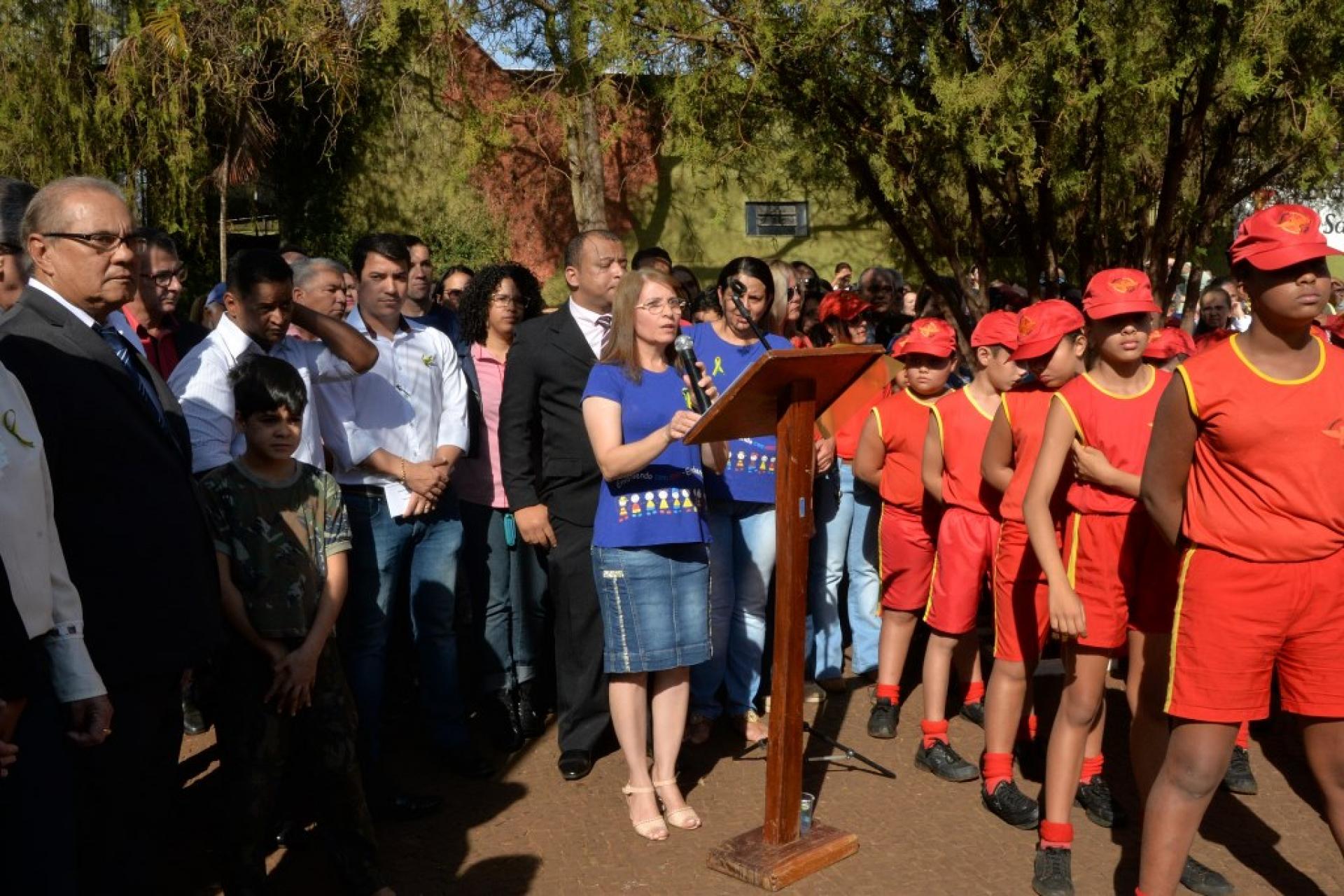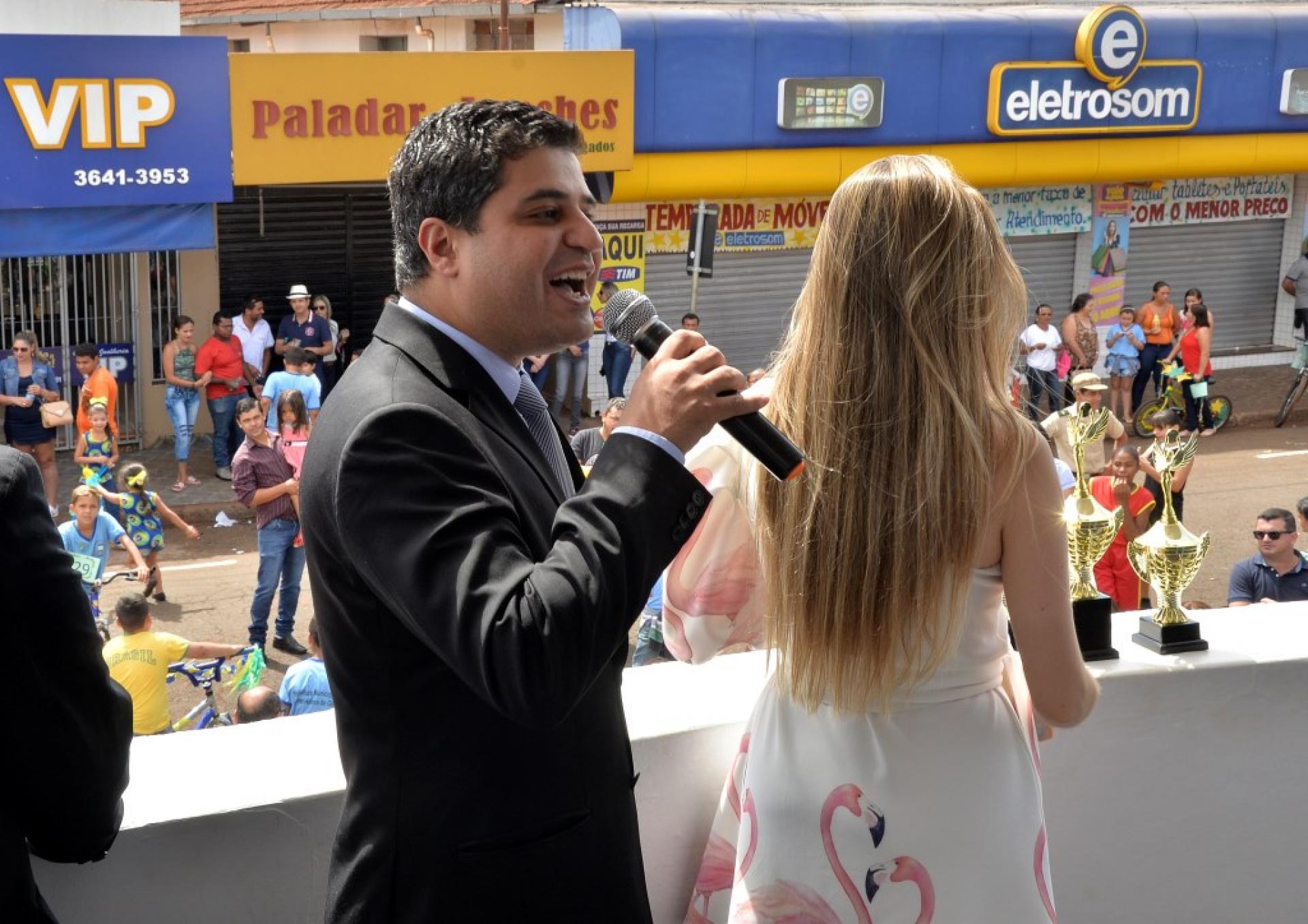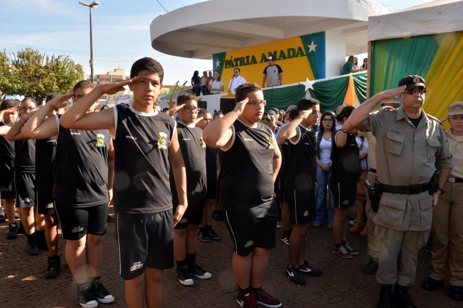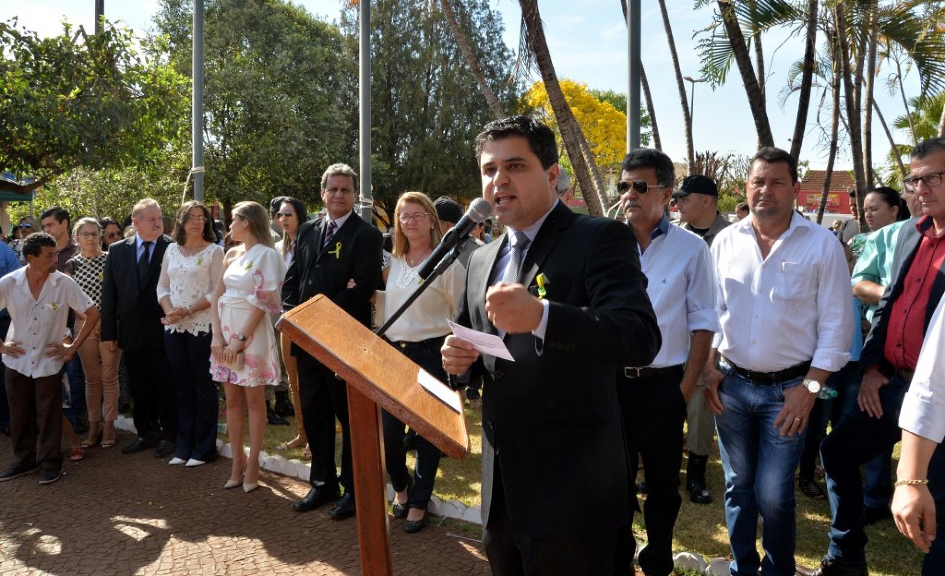 Já Dr. João Alberto, iniciou seu discurso parabenizando a PM pela segurança prestada ao município e aos Bombeiros pelo excelente trabalho prestado, principalmente, ao combate às queimadas que assolam nossa região nesta época. Incluindo também em suas palavras “Bom dia a todos. Cumprimento em especial, estas crianças que nos despertam o espírito cívico e por encher este local e também trazer os representantes de todas as classes. Muito me enche de orgulho, por me lembrar de que também já estive aqui no lugar de vocês. É isso que se espera de uma coletividade, de uma cidade. É assim que se implanta a pátria que representamos e que queremos. Minhas congratulações e agradecimentos vão também a todos os professores que desempenham o papel fundamental do ensino e hoje estamos num bom patamar e apresentando resultados de referência. Também a todos os funcionários e colaboradores, vejo que foram muito bem escolhidos e trabalham com compromisso para com a população, demonstrando que servimos o município e o Brasil. É fundamental que edificamos com consciência a nossa função de cidadãos, é isto que representa este evento e tantos outros que virão. Apresento também mais dois novos veículos que comporão a frota do município e nova iluminação noturna com lâmpadas de led. Mais uma vez, meu muito obrigado a todos e que prossigamos com as bênçãos divina”, declarou o Prefeito.
