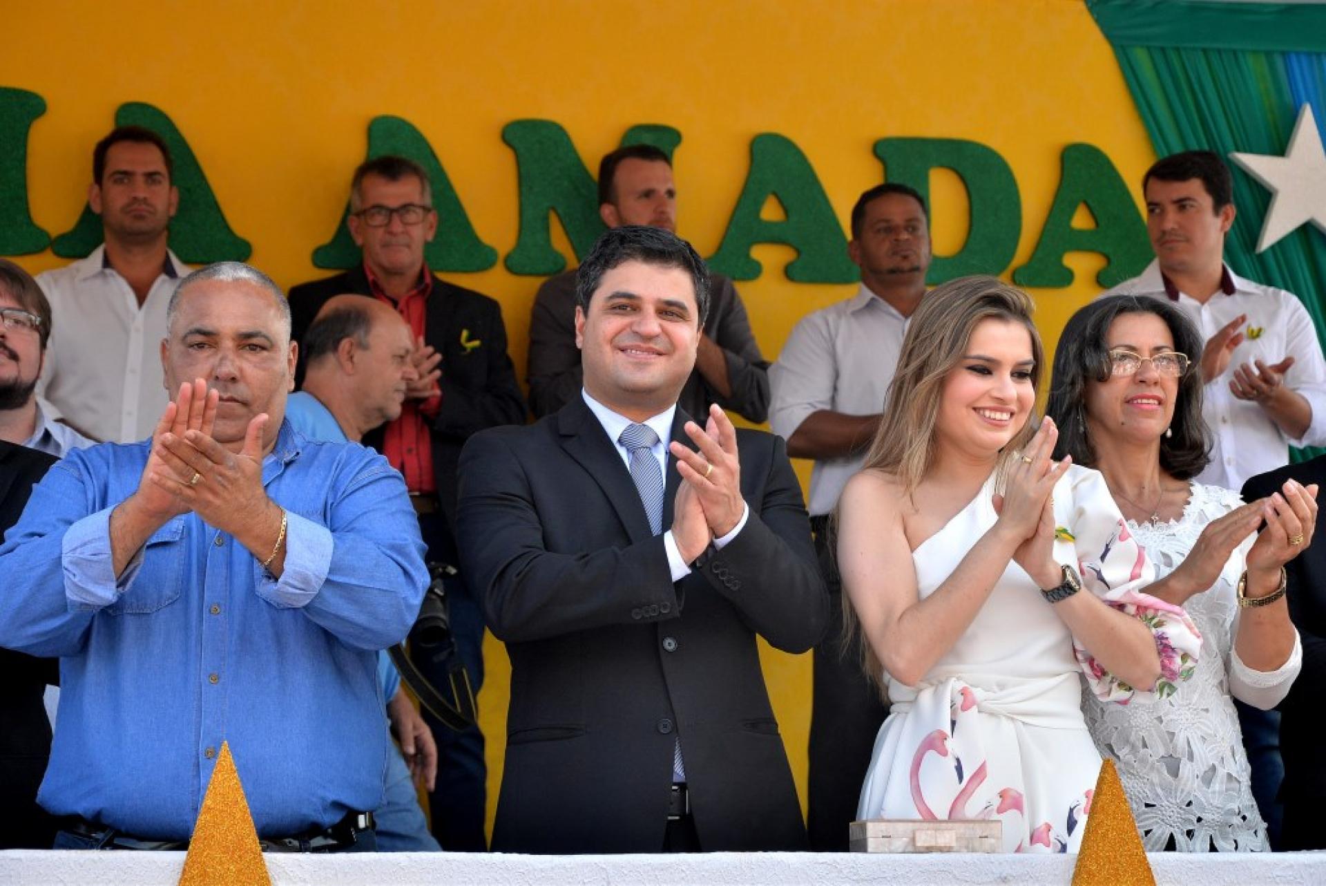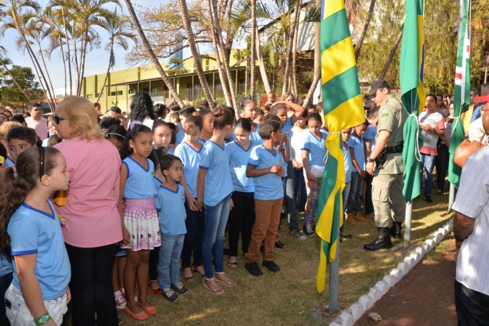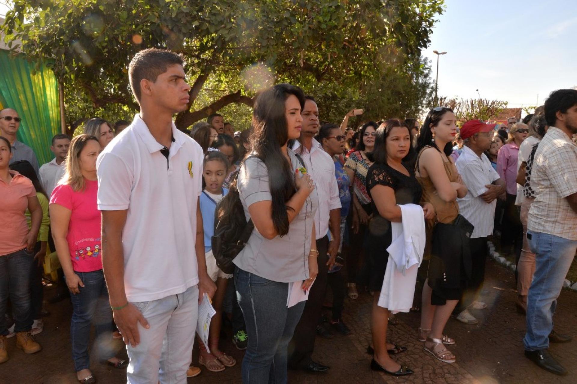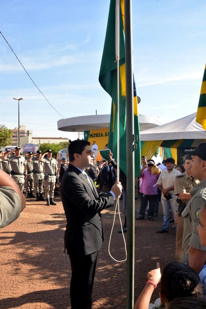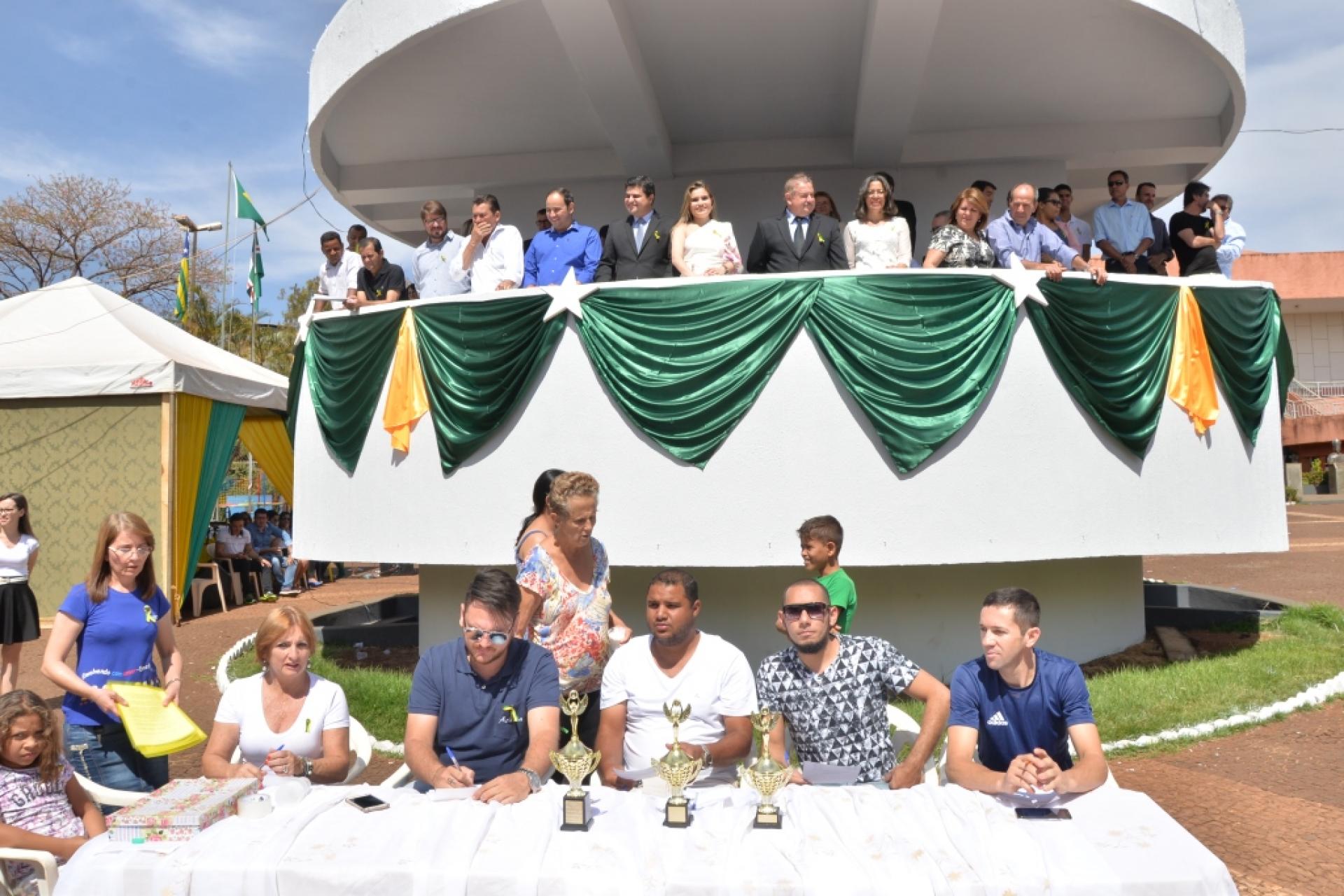 Primeiramente, houve o hasteamento das bandeiras (Brasil – Prefeito Dr. João Alberto, Estado – Major Jeovaldo e Município – Pres. da Câmara Gilmar) acompanhado pelo Hino Nacional acompanhado pela orquestra Lira Real da Igreja Evangélica Assembleia de Deus, seguidos pelos hinos de Goiás e da Independência.