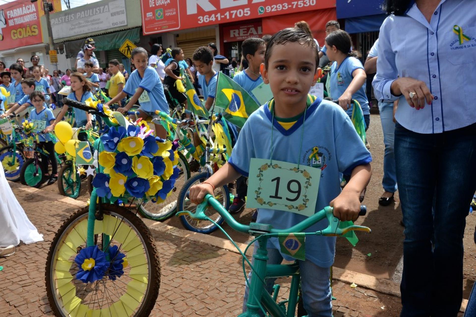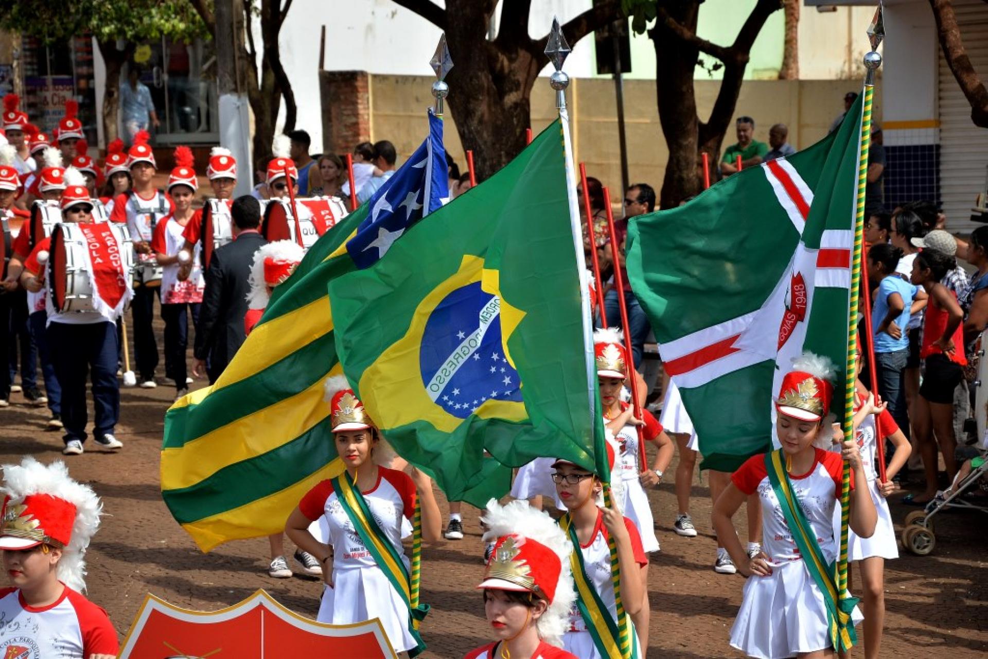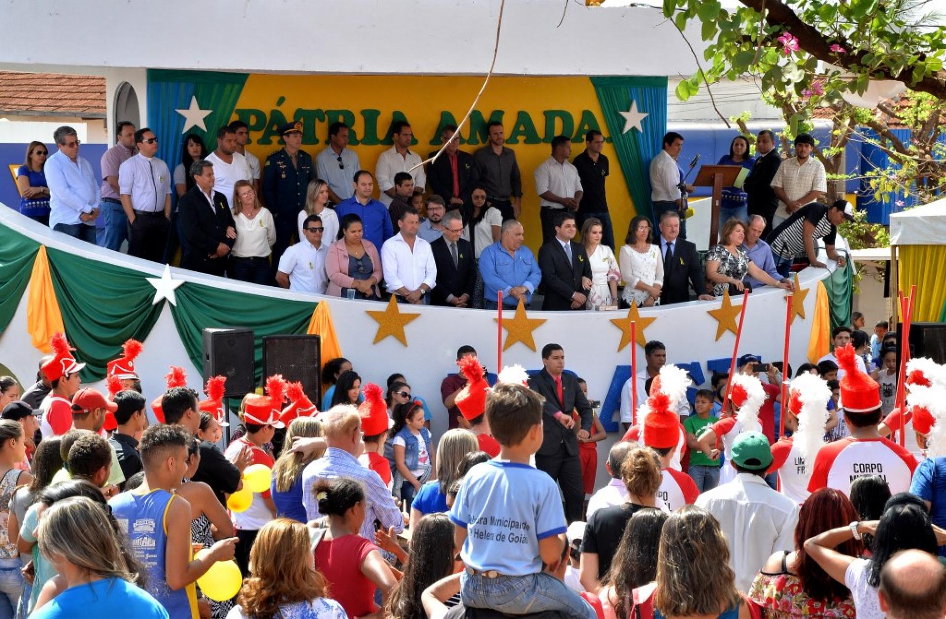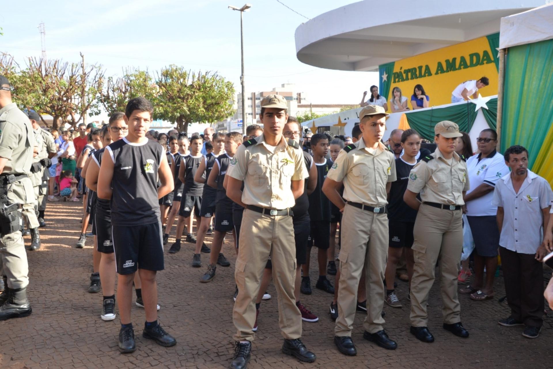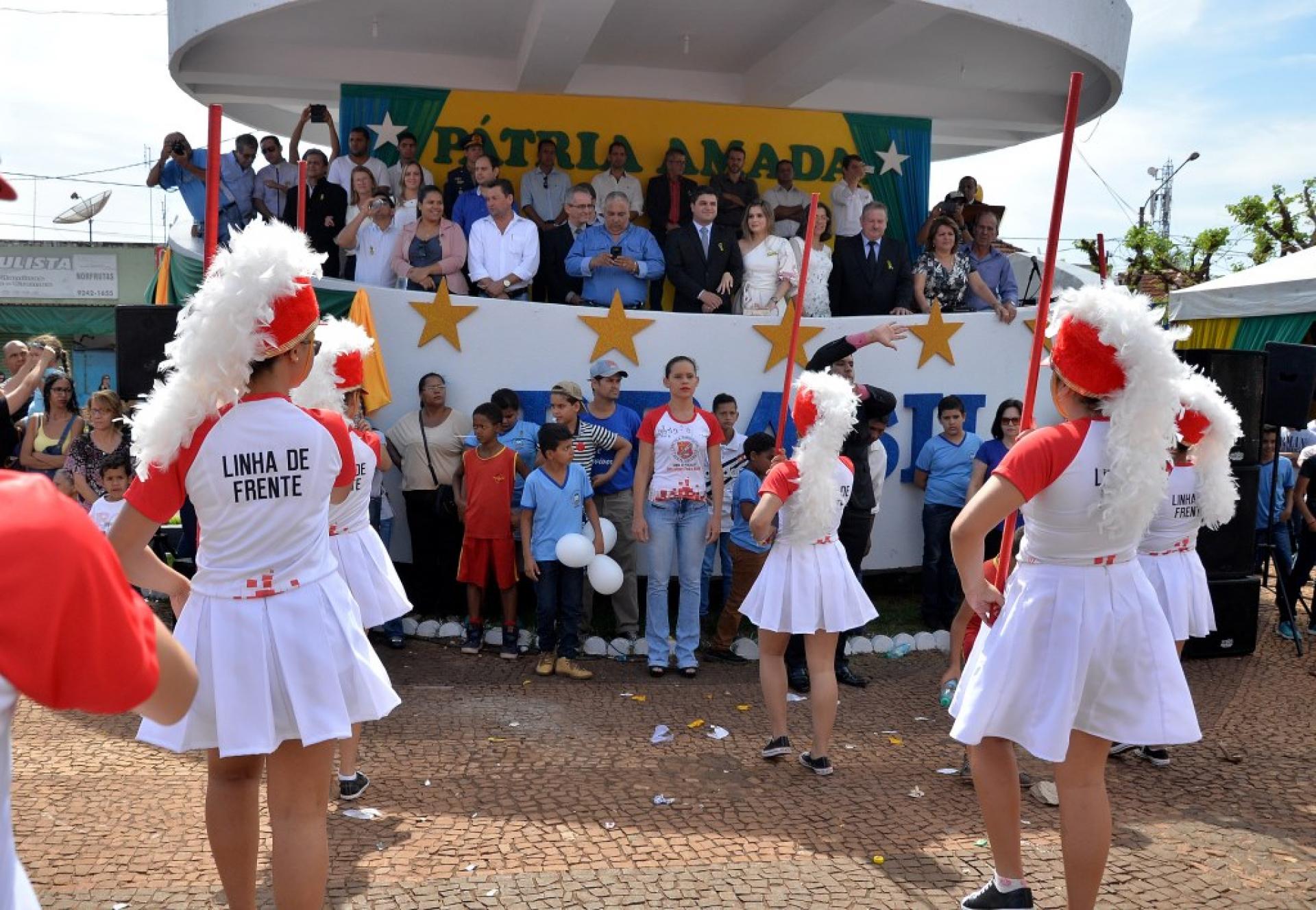 Primeiramente, houve o hasteamento das bandeiras (Brasil – Prefeito Dr. João Alberto, Estado – Major Jeovaldo e Município – Pres. da Câmara Gilmar) acompanhado pelo Hino Nacional acompanhado pela orquestra Lira Real da Igreja Evangélica Assembleia de Deus, seguidos pelos hinos de Goiás e da Independência.
