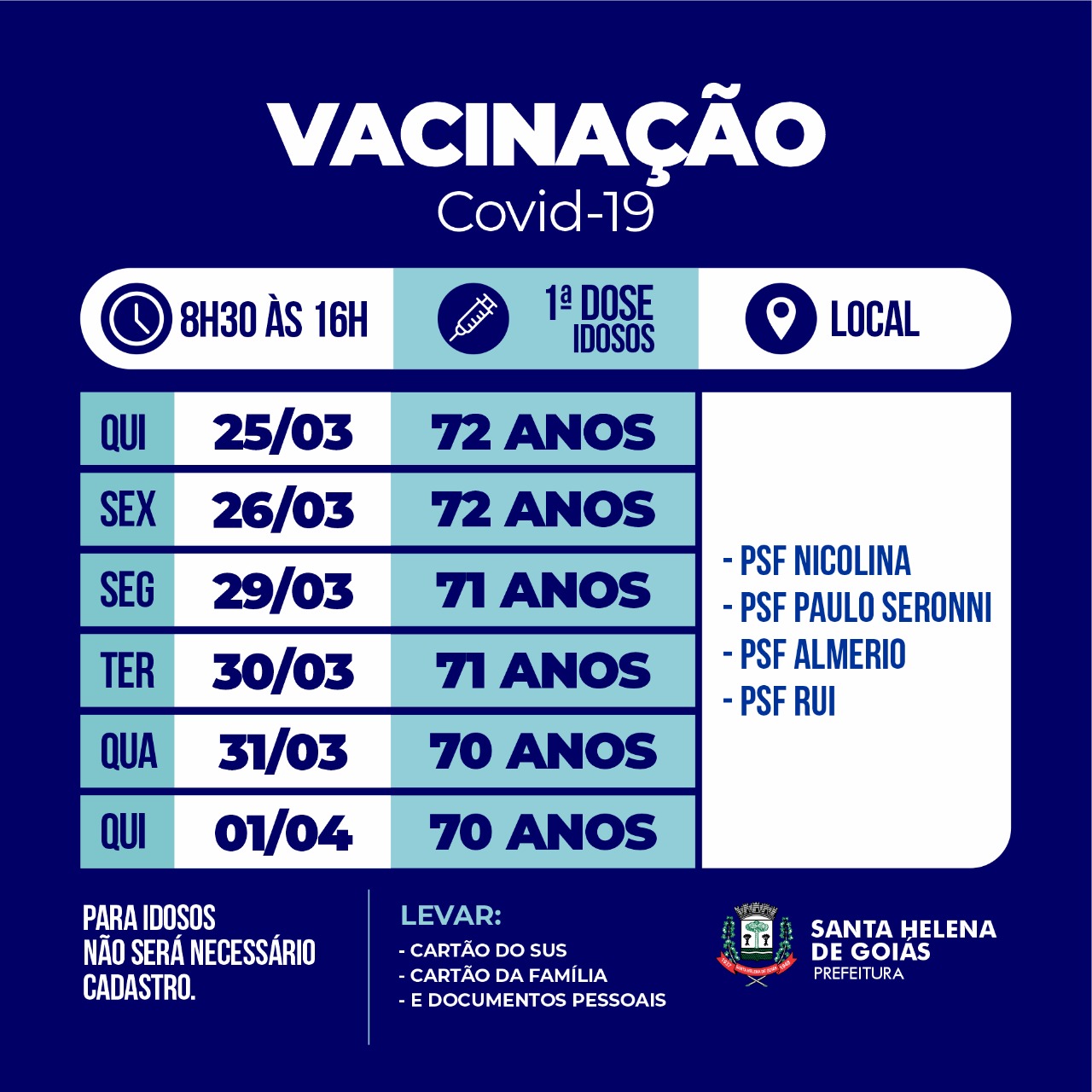 Confira o cronograma de vacinação - etapa 70 anos acima.