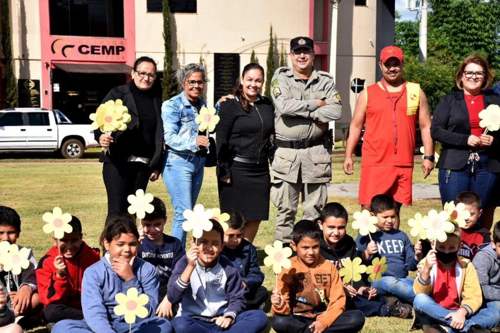 Participaram do evento, Bombeiro Militar, Polícia Militar, servidores da promoção Social e alunos do serviço de convivência.