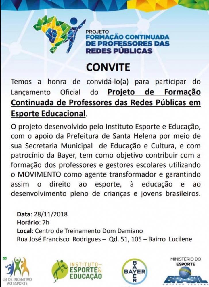 Convite: Lançamento do Projeto de Formação Continuada de Professores das Redes Públicas em Esporte Educacional 2018