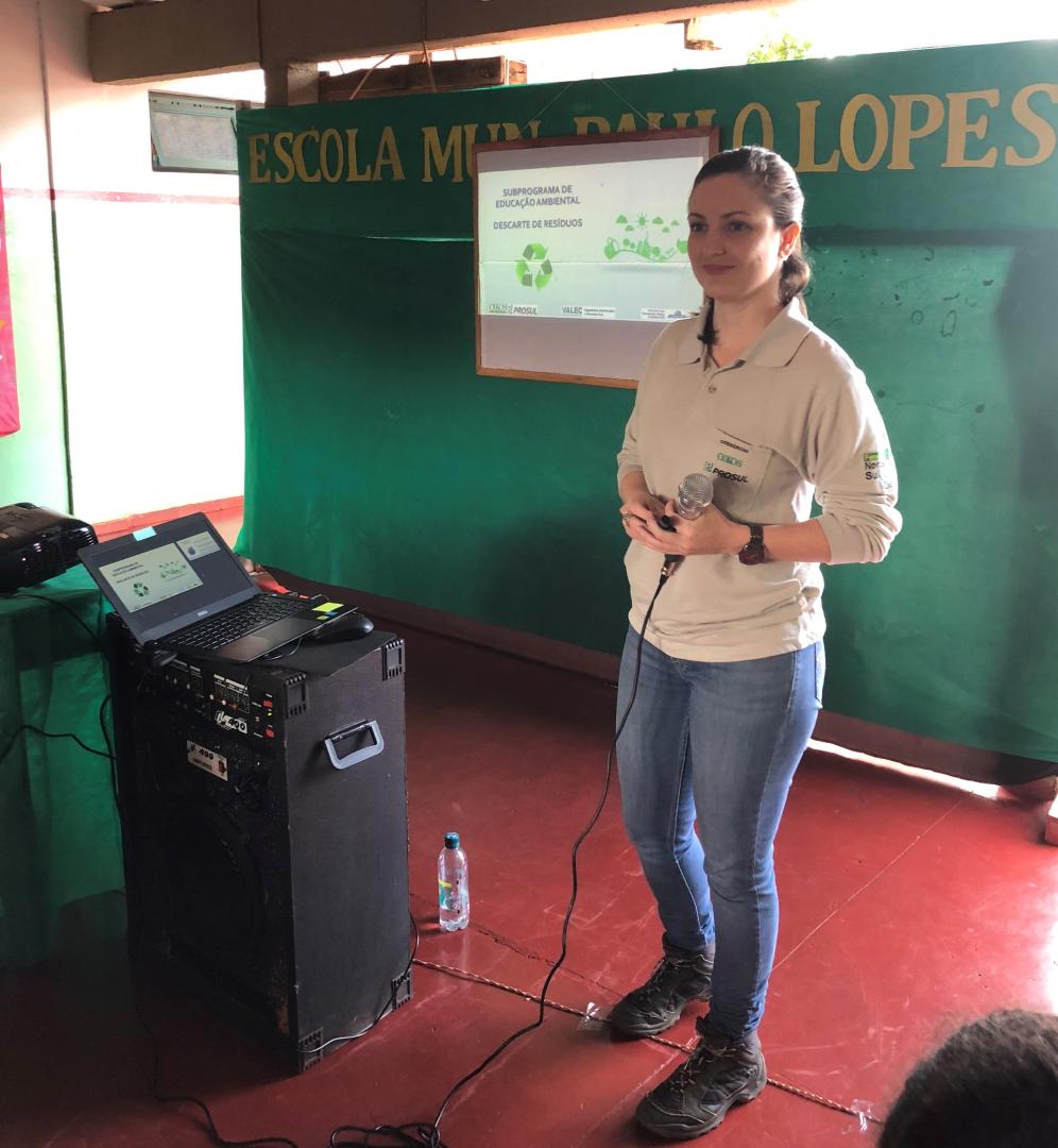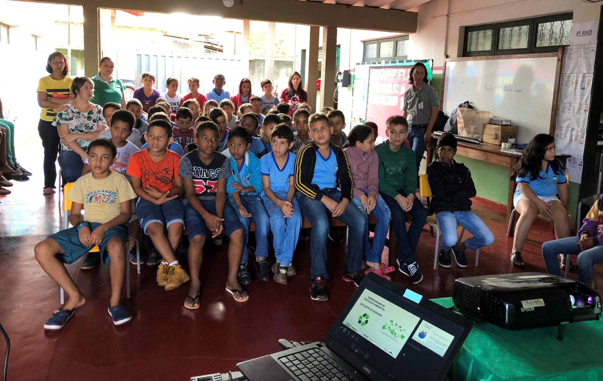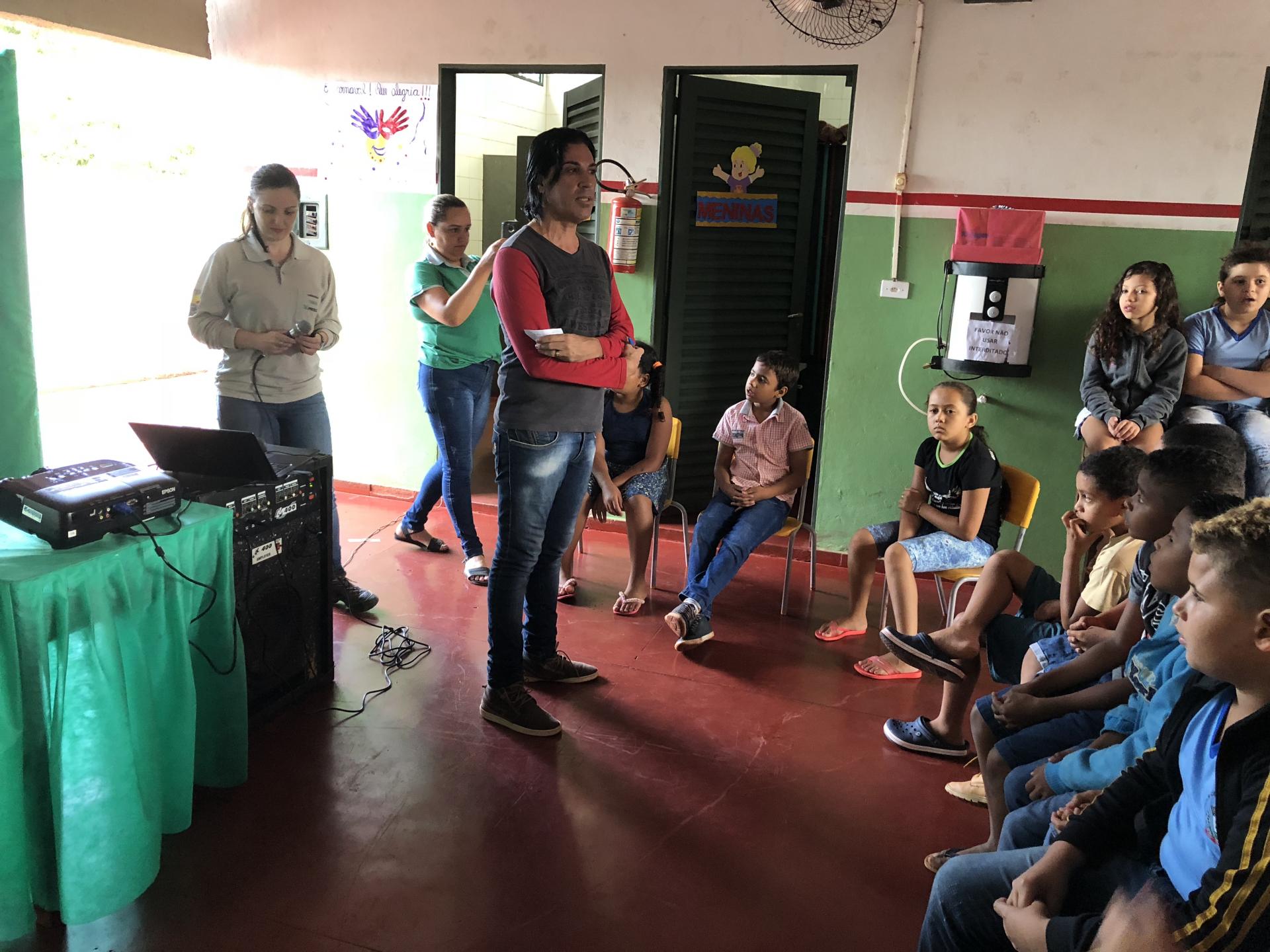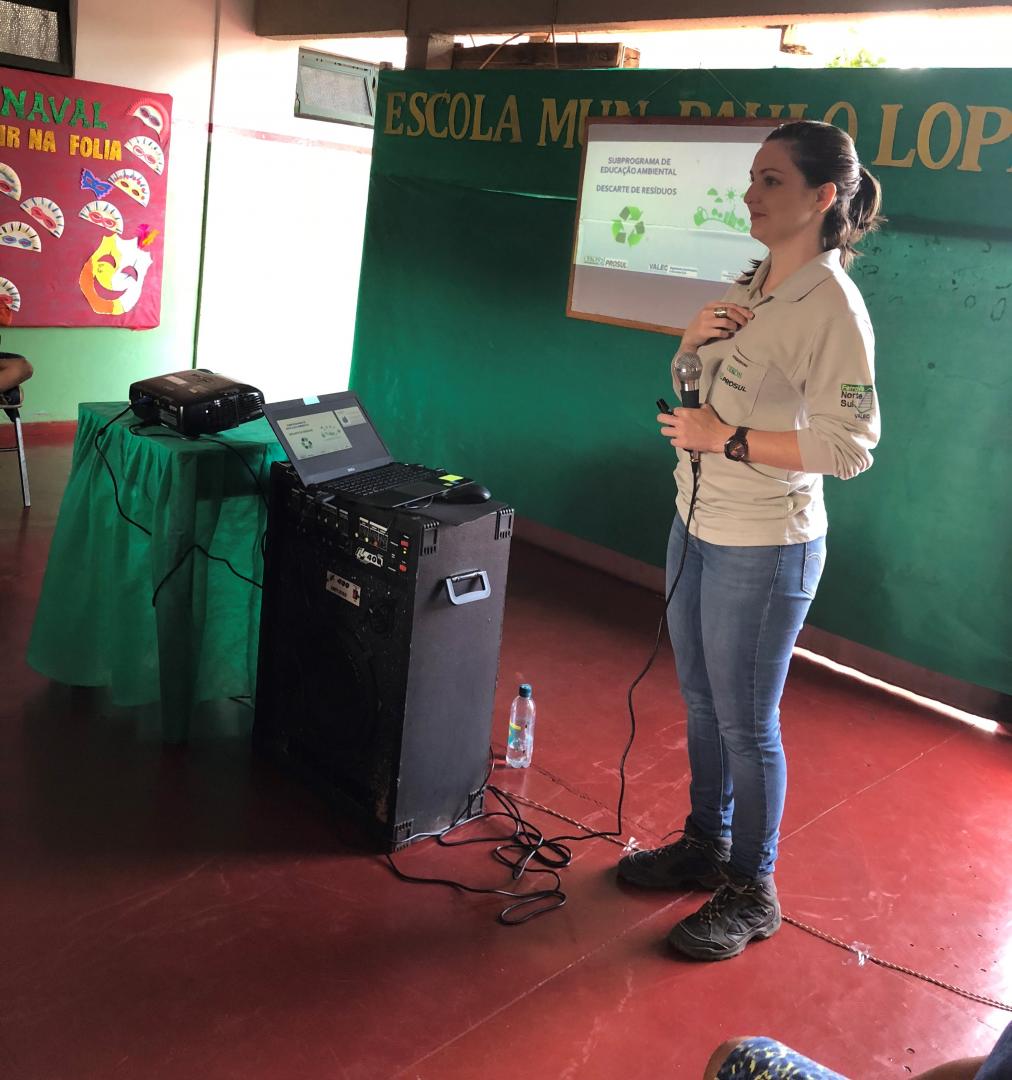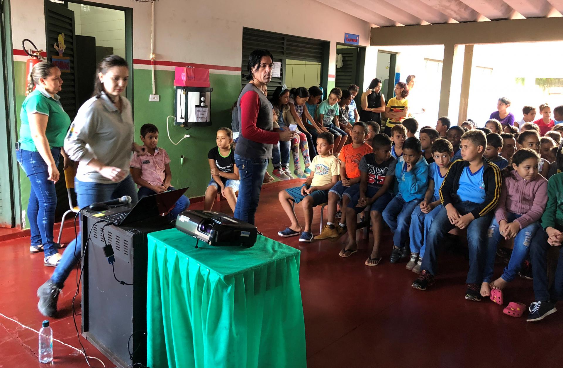 O Secretário do Meio Ambiente e Recursos Hídricos,Guilherme Ribeiro Lana, o agrônomo Fábio Teles e a bióloga Paula Carolina Borges da Valec participaram, na manhã de hoje (21), na Escola Municipal Paulo Lopes da palestra de conscientização sobre destinação de resíduos.