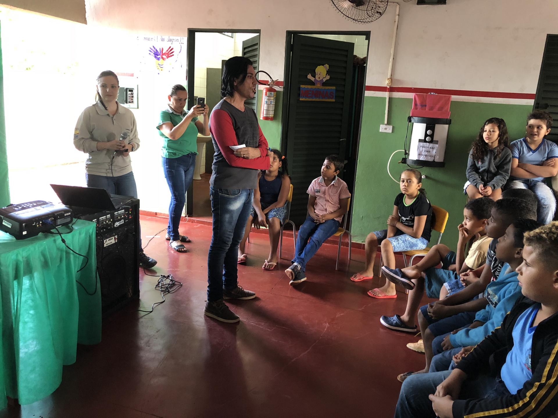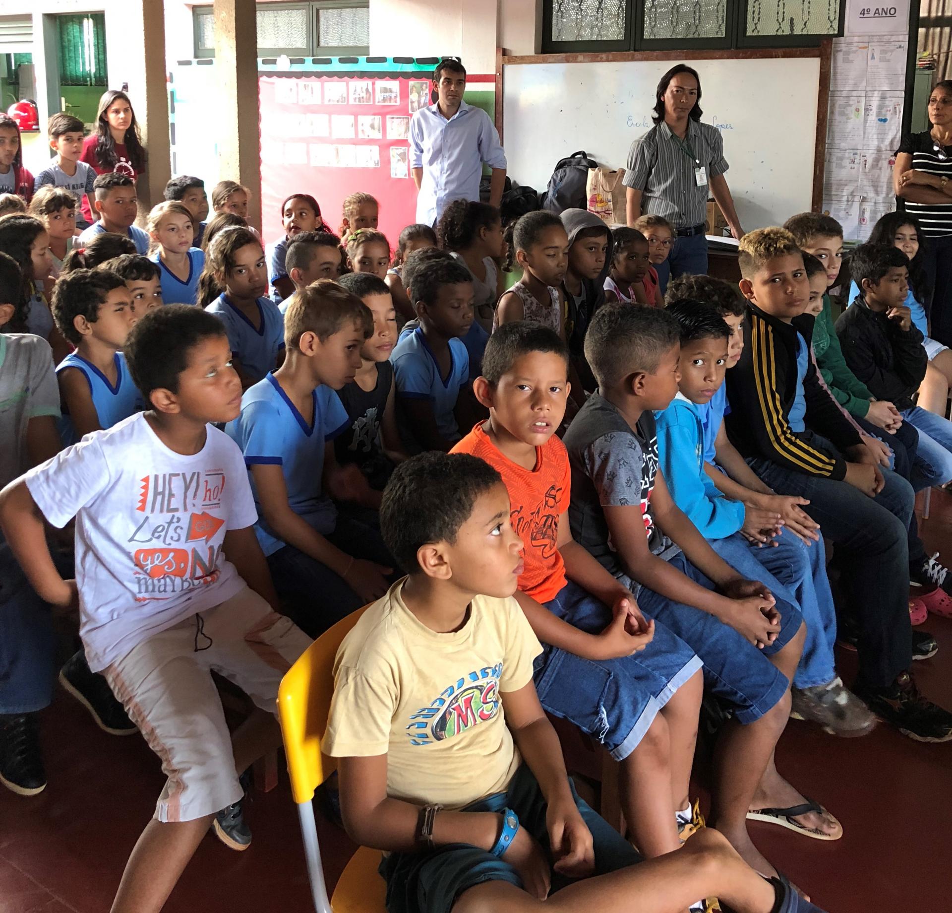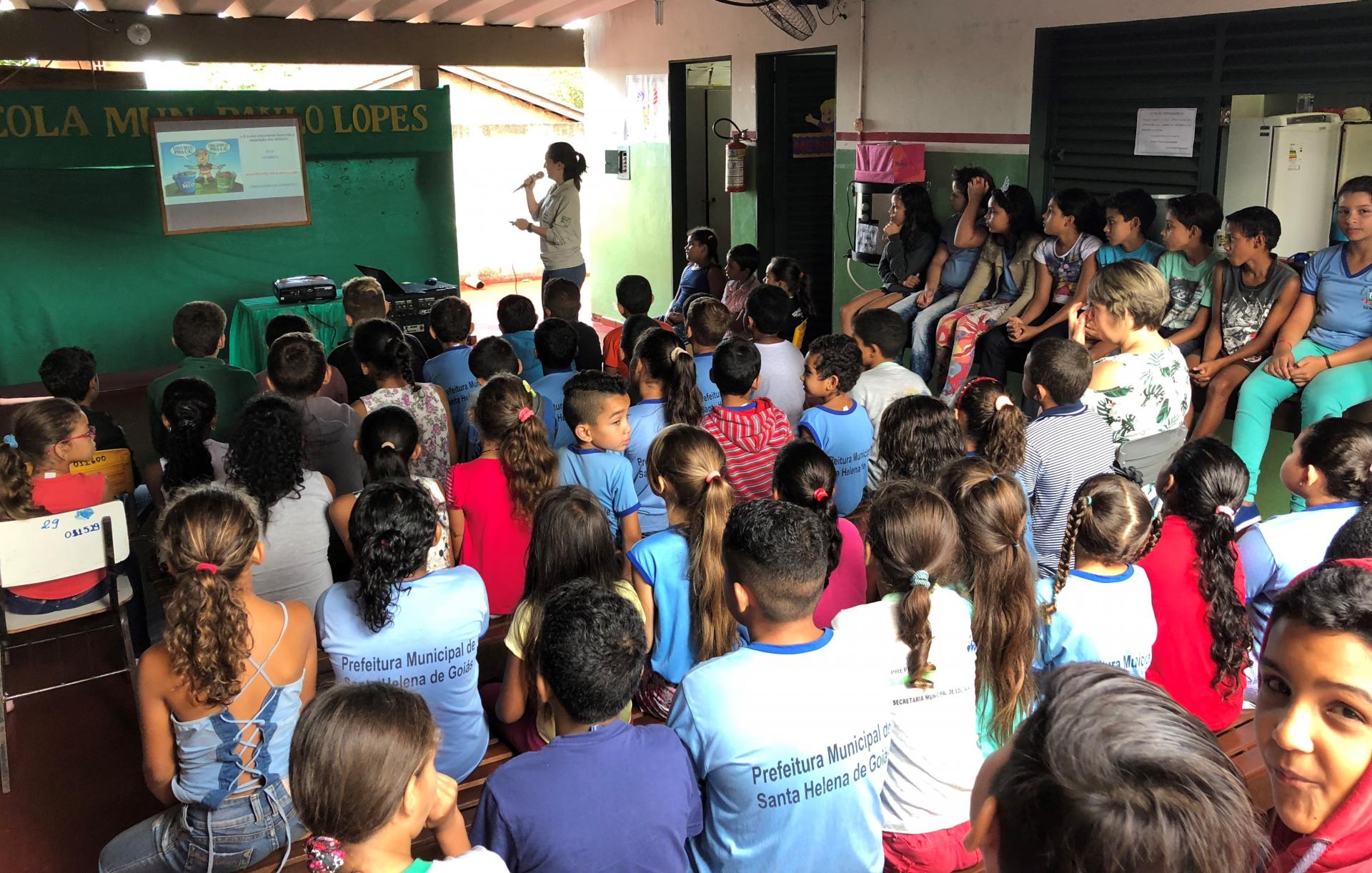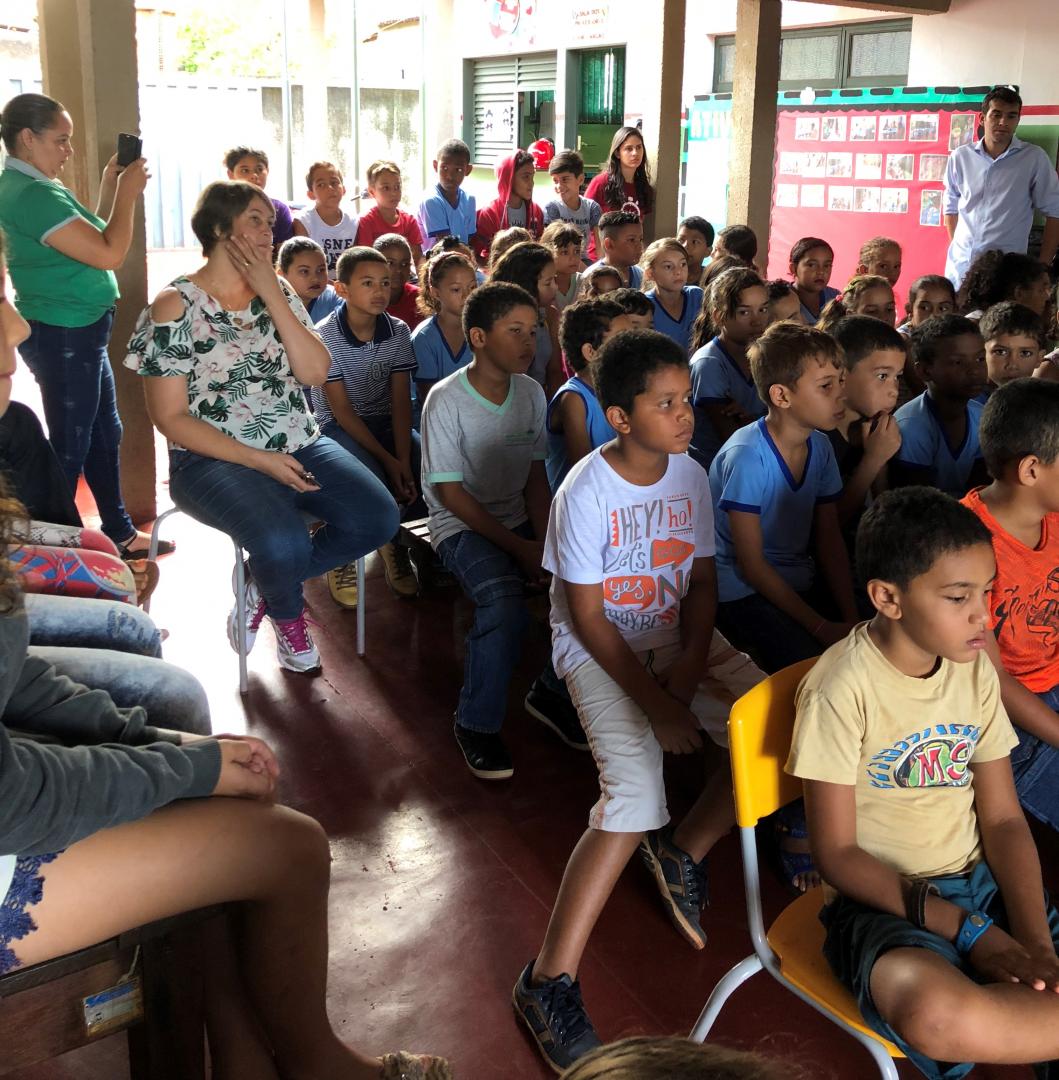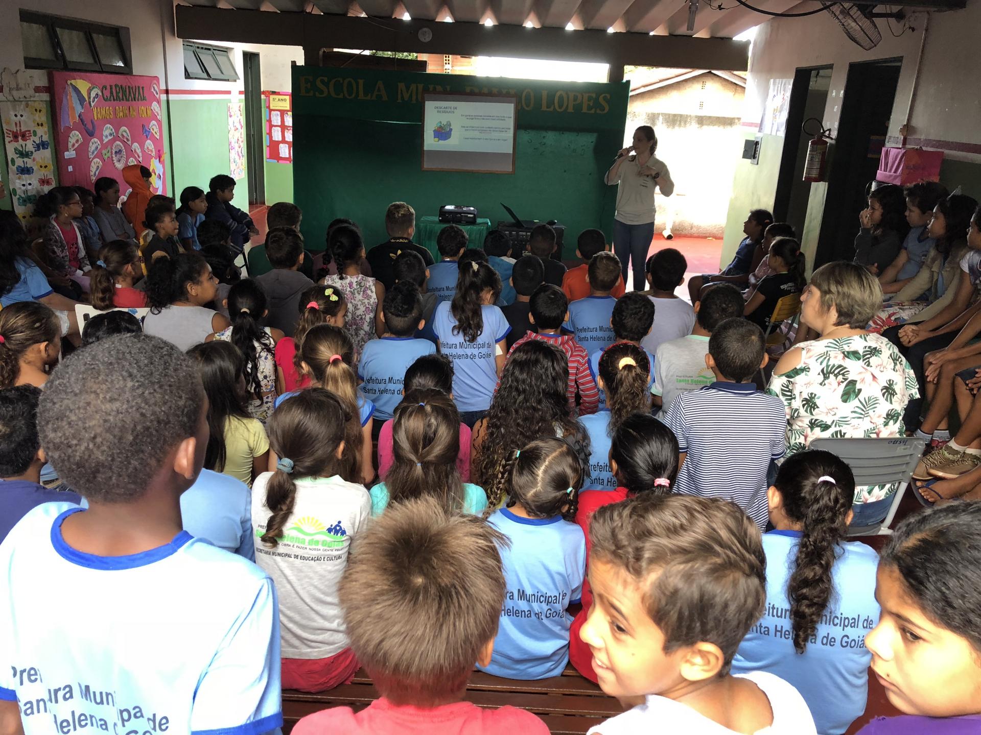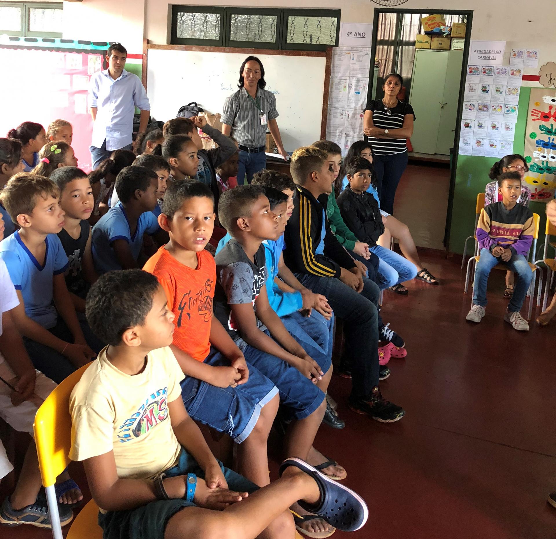 O Secretário do Meio Ambiente e Recursos Hídricos,Guilherme Ribeiro Lana, o agrônomo Fábio Teles e a bióloga Paula Carolina Borges da Valec participaram, na manhã de hoje (21), na Escola Municipal Paulo Lopes da palestra de conscientização sobre destinação de resíduos.