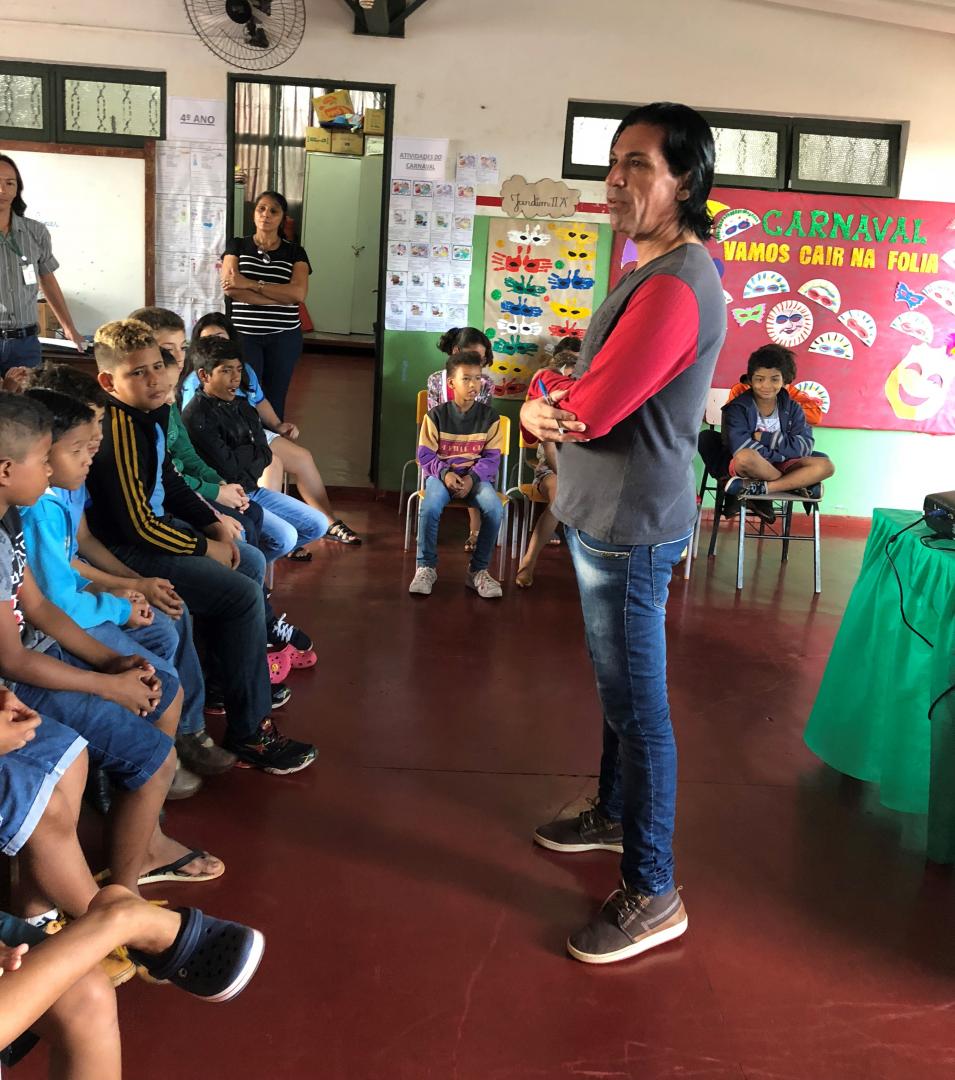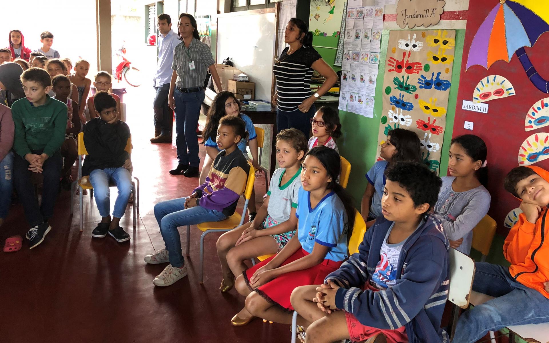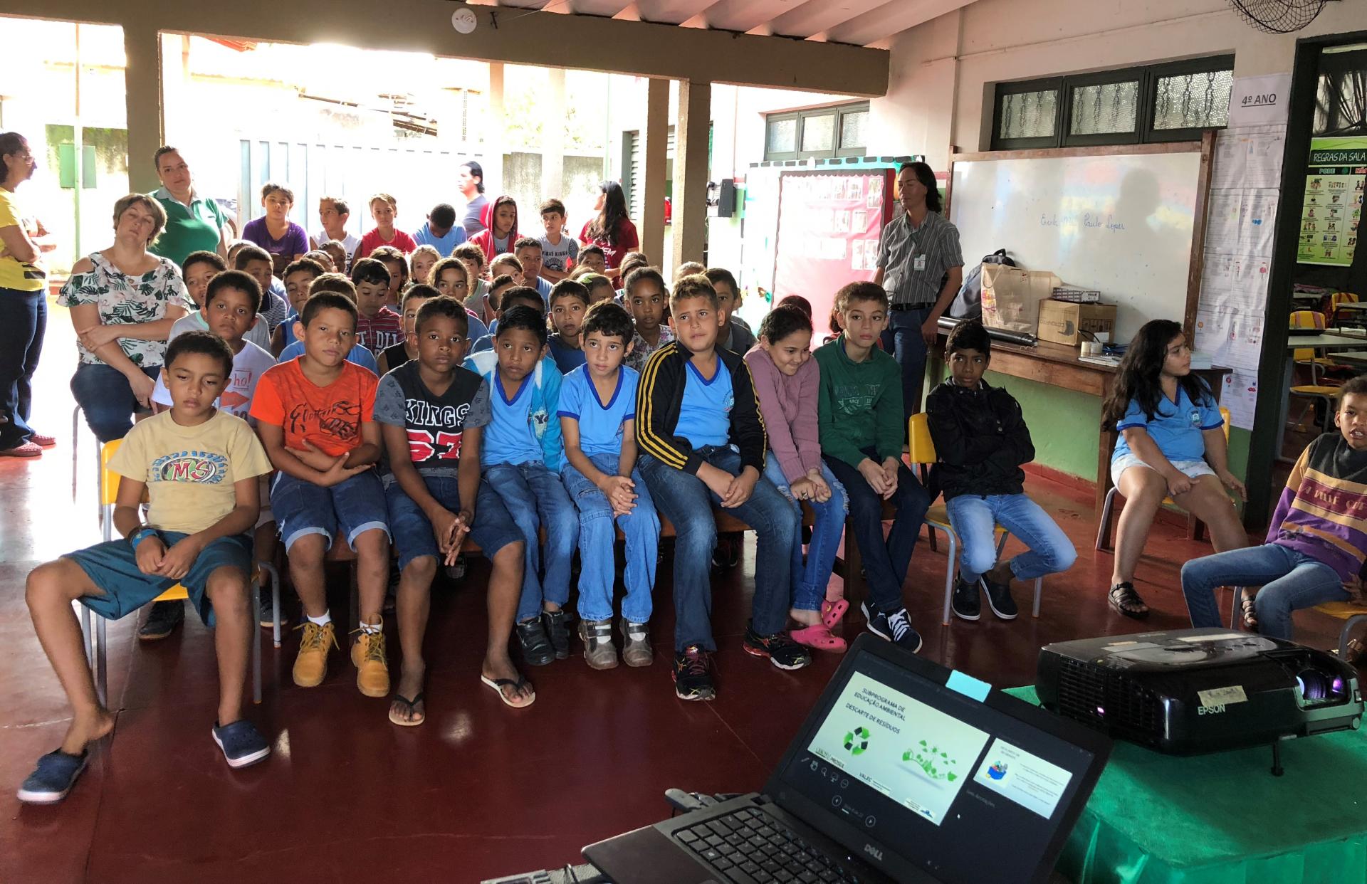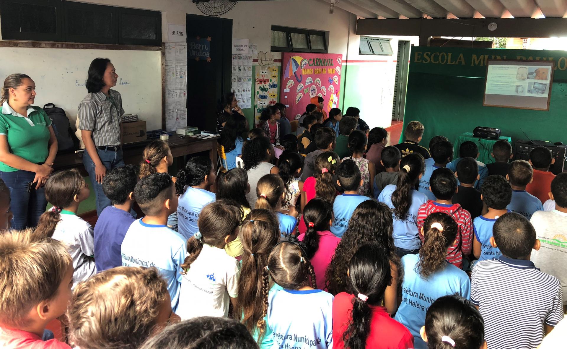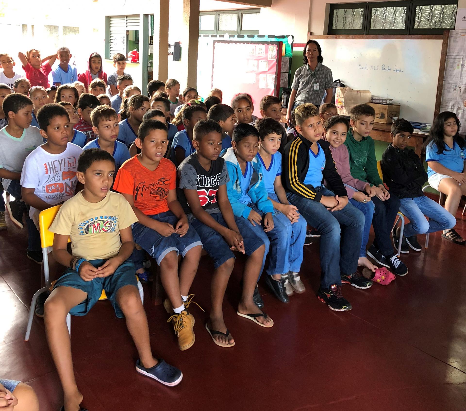 O Secretário do Meio Ambiente e Recursos Hídricos,Guilherme Ribeiro Lana, o agrônomo Fábio Teles e a bióloga Paula Carolina Borges da Valec participaram, na manhã de hoje (21), na Escola Municipal Paulo Lopes da palestra de conscientização sobre destinação de resíduos.