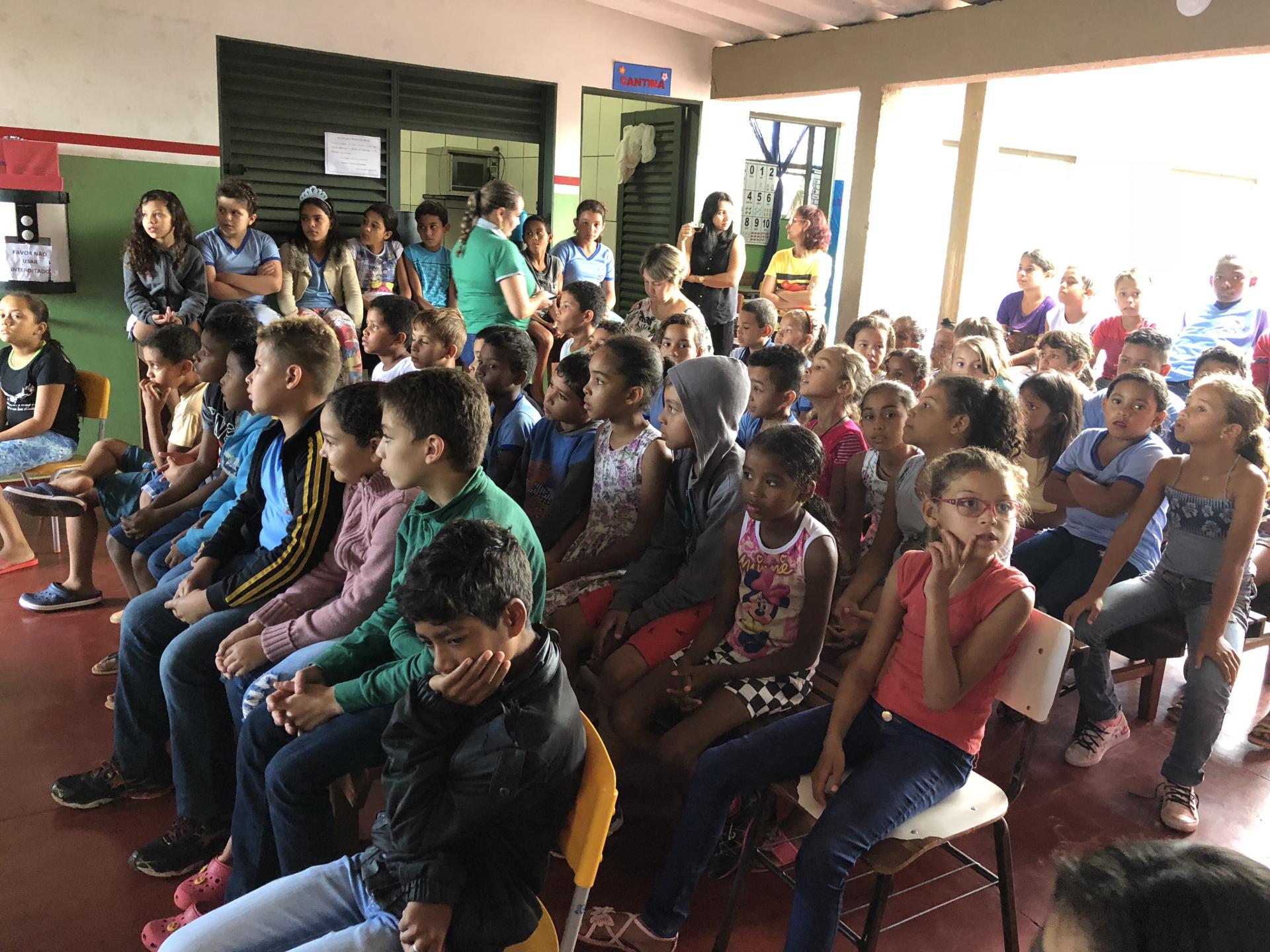 O Secretário do Meio Ambiente e Recursos Hídricos,Guilherme Ribeiro Lana, o agrônomo Fábio Teles e a bióloga Paula Carolina Borges da Valec participaram, na manhã de hoje (21), na Escola Municipal Paulo Lopes da palestra de conscientização sobre destinação de resíduos.