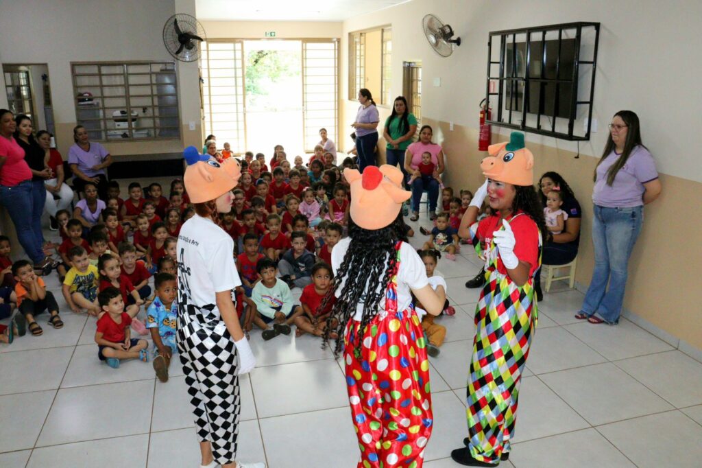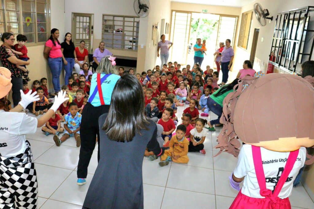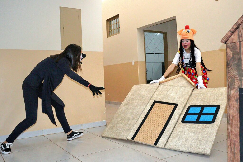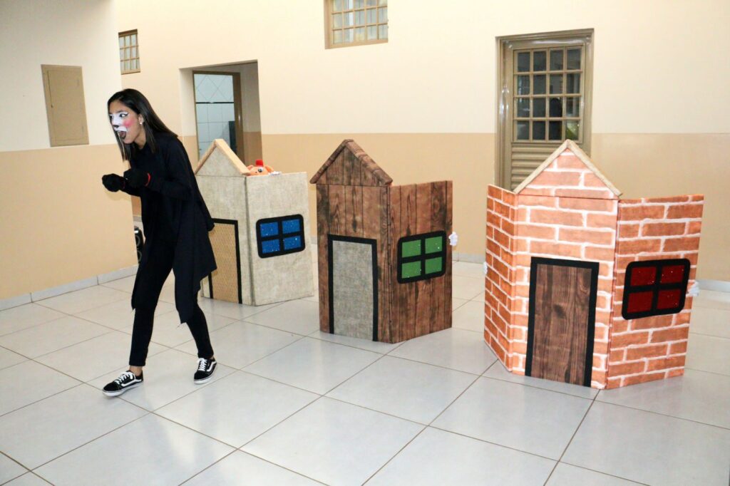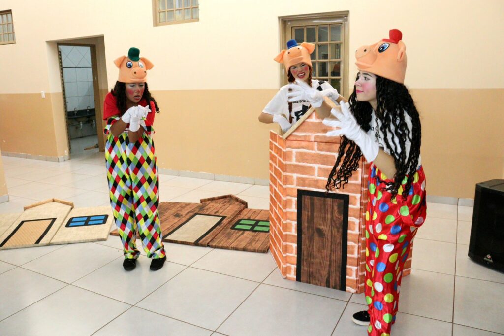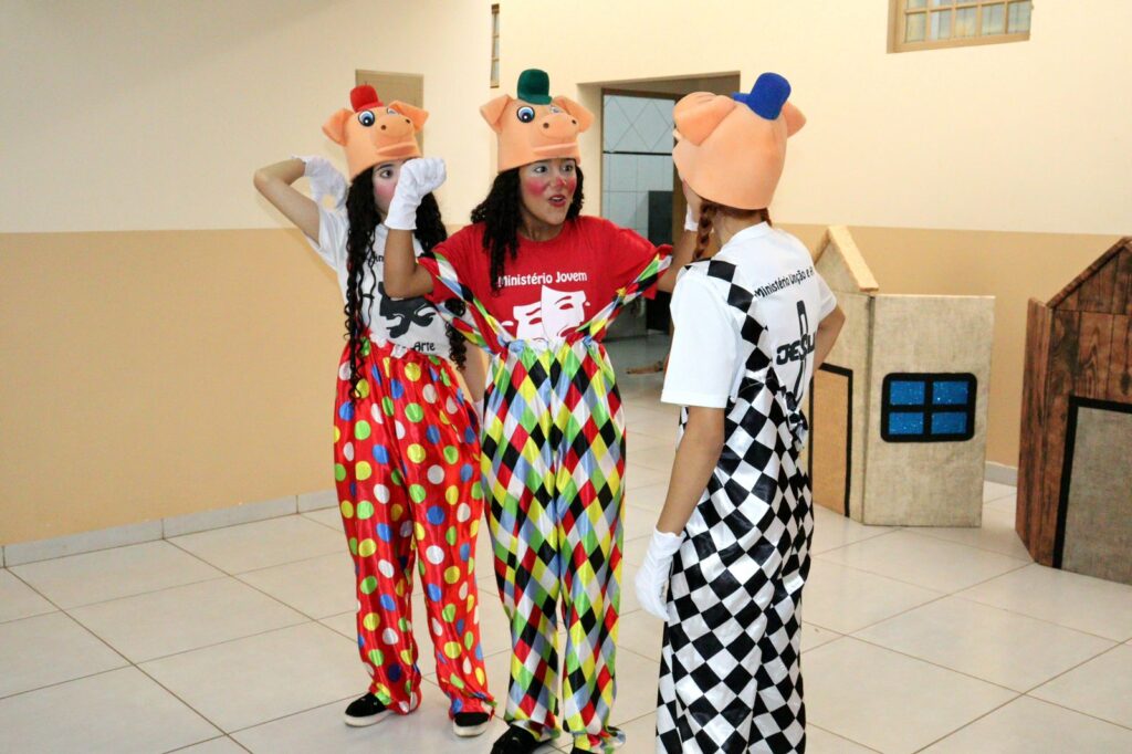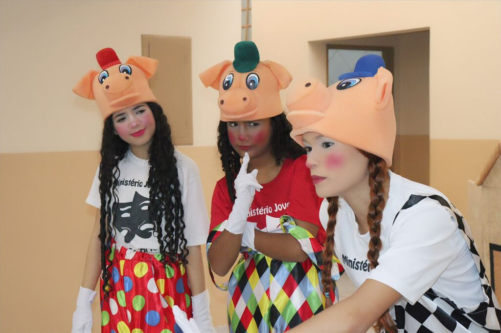 Em parceria com a Secretaria Municipal de Educação e Cultura, o Ministério Jovem Unção e Arte realizou nesta quarta-feira (31) a apresentação teatral "Os Três Porquinhos" para as crianças do Centro de Educação Infantil Santo Antônio de Pádua.
