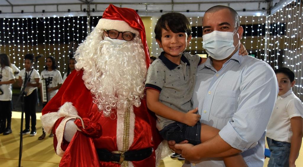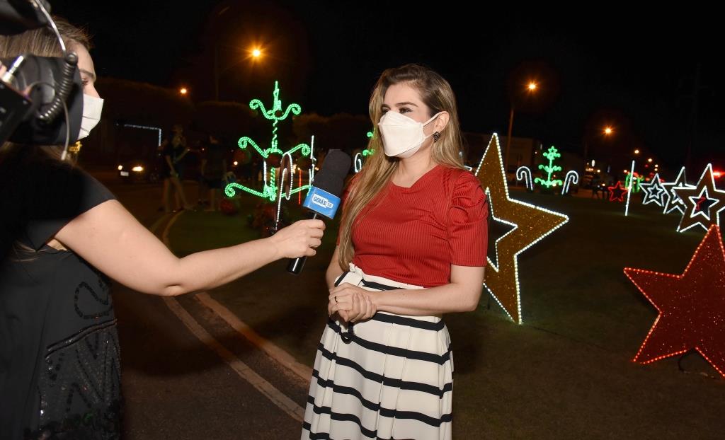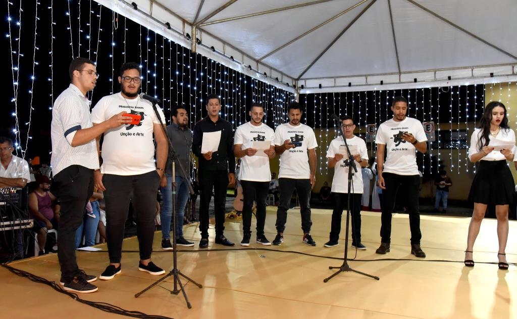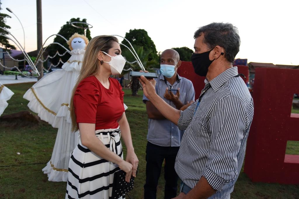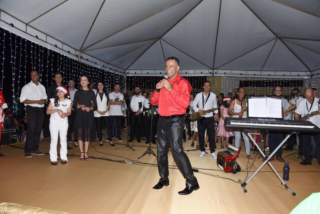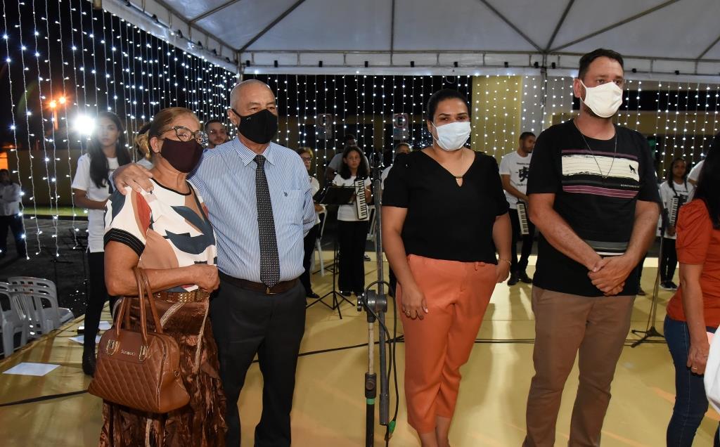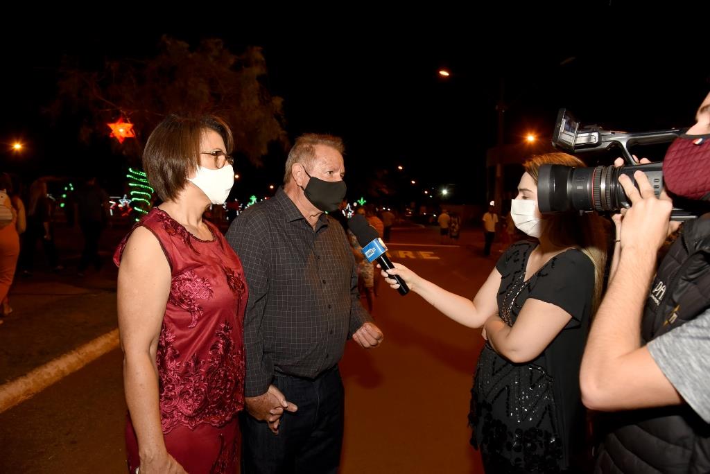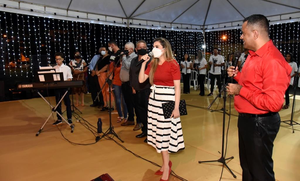 A ambientação de Natal de 2021 foi inaugurada, na Pista de Caminhada, na noite de hoje (03), com apresentações dos corais do Projeto Musical Municipal Harmonizando Vidas, que tem como maestro Divino Allancaster.