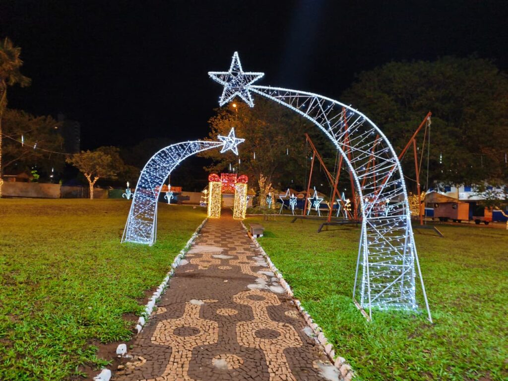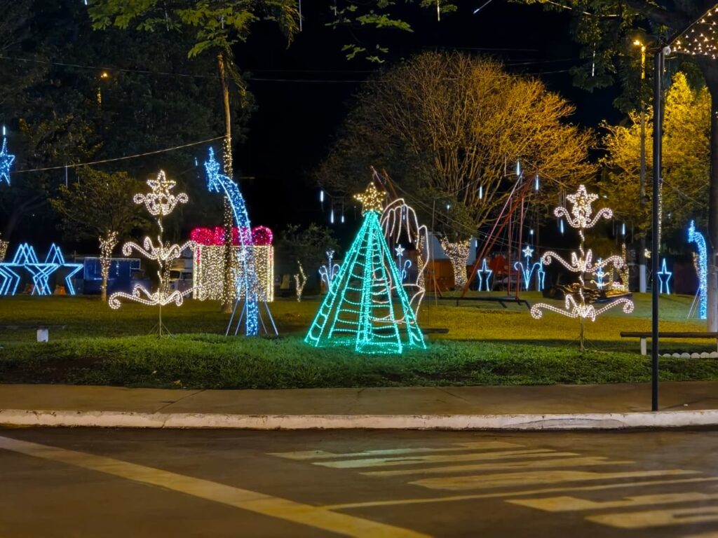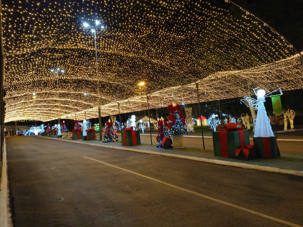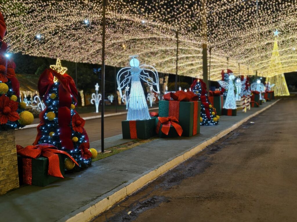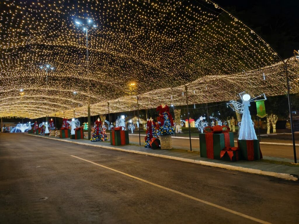 Neste ano, a praça recebeu a maior e mais bonita estrutura de Natal já realizada no município. O grande túnel de luzes, peça-chave da decoração, foi instalado em um ponto que permite visão completa do brilho natalino e segurança para as famílias que visitam o local. Esse espaço iluminado se tornou o principal atrativo para as crianças, que encontram ali um ambiente amplo, seguro e perfeito para brincar e viver a magia dessa época tão especial.