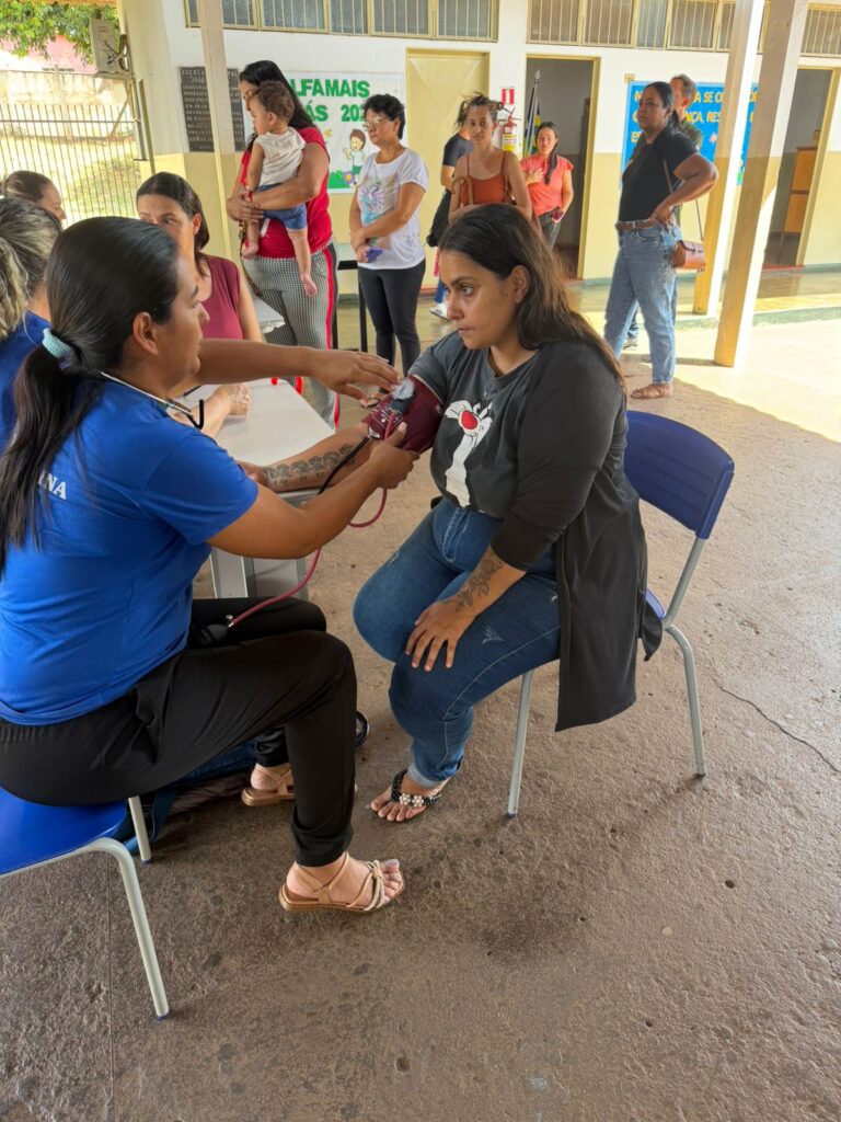Além das atividades educativas, o evento também contou com ações voltadas à saúde, como aferição de pressão arterial e testes de glicemia, proporcionando cuidado e atenção ao bem-estar das famílias presentes.