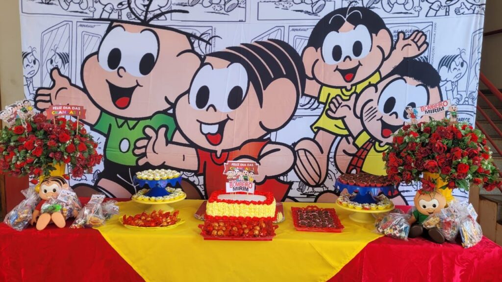 Uma manhã muito divertida com doces, cachorro quente bolo e presentes para celebrar a alegria de ser criança!